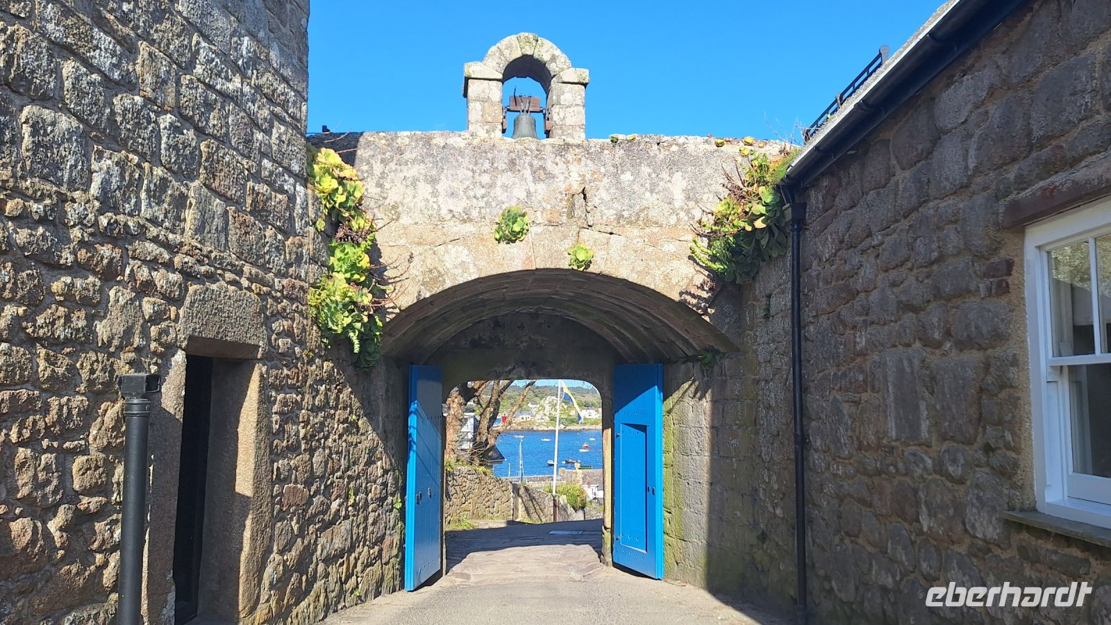 Am frühen Nachmittag erreichen wir die Penzance-Halbinsel: am Horizont sehen wir die Gezeiteninsel des Saint Michael's Mount. Bis ins 15. Jahrhundert gehörte das Kloster auf der kleinen Insel vor der kornischen Küste tatsächlich dem bekannteren Kloster auf dem Mont-Saint-Michel in der Normandie, denn Eduard der Bekenner hatte es im 11. Jahrhundert den Benediktinern als Geschenk übergeben. Mit der Enteignung aller Klöster durch die Reformation unter Heinrich VIII. verlor es jedoch an Bedeutung und wurde viele Jahrhunderte lang nur als Herrenhaus genutzt, bis es in den 1950er Jahren für die Öffentlichkeit zugänglich gemacht wurde.