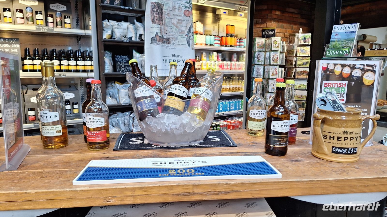 Wir verlassen jedoch nicht den Südwesten Englands, ohne an der Grenze zu Somerset noch einen kleinen Abstecher zu machen. Ganz in der Nähe von dem Dorf, in dem unsere liebgewonnene Busfahrerin lebt, gibt es nämlich eine kleine familiengeführte Farm, die hier seit über 200 Jahren Cider herstellt – das Produkt der Grafschaft Somerset schlechthin. Wir drehen also eine Runde mit dem Bus entlang der blühenden Apfelplantage und kehren dann im gemütlichen Hofcafé ein, wo wir auch die Gelegenheit bekommen, den leckeren Cider zu verkosten – und selbstverständlich auch als Souvenir mitzunehmen, wenn man das möchte.
