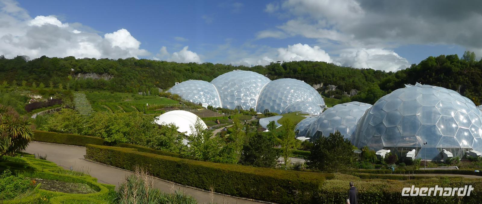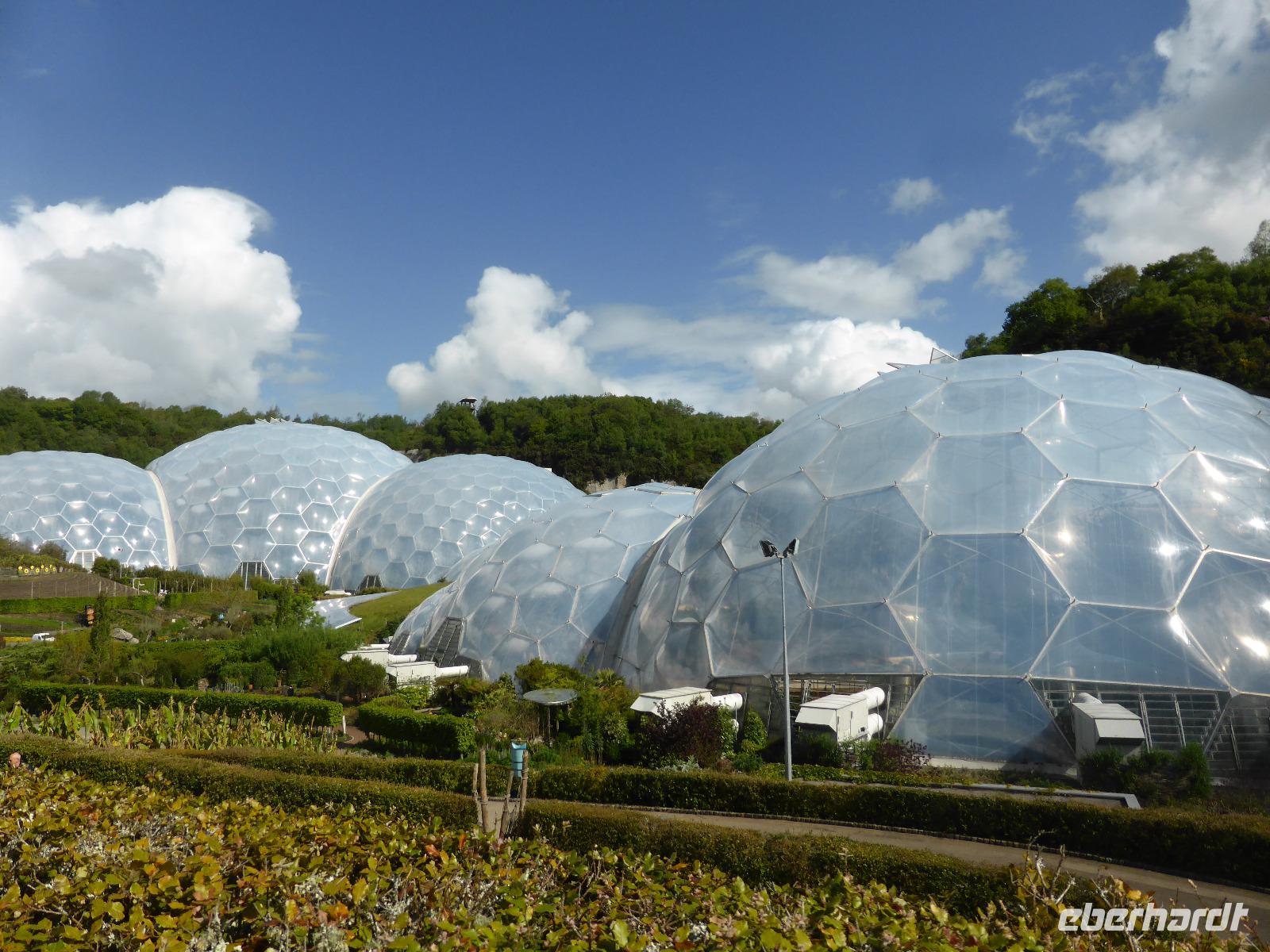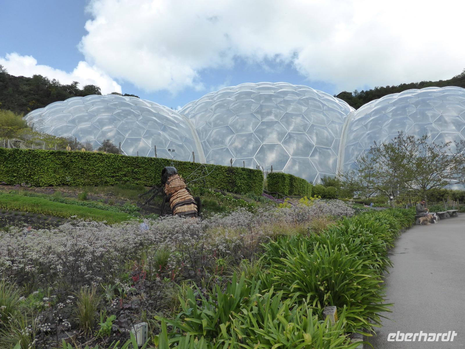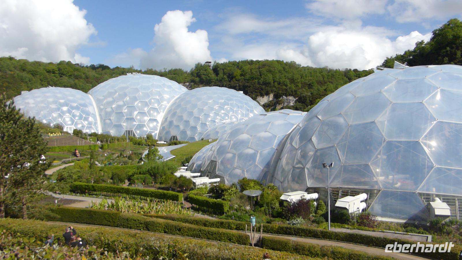 Heute verließen wir Cornwall. Auf das berühmte Eden Project bei St. Austell freuten sich viele Gäste. Tim Smit scheute keine Kosten und Mühen um in einer aufgelassen Kaolingrube einen Garten Eden zu schaffen. Er schuf zwei riesiege Biome mit jeweils 4 Gewächshäusern, sog. geodätische Kuppeln, um verschiedenen Klimazonen simulieren zu können. Im größten Gewächshaus wird ein subtropisch-feuchtes Klima wie im Regenwald generiert. Das kleine Gewächshaus bietet mediterranen Pflanzen Platz. Wir konnten Bananen, Ananas und zahlreiche subtropische Pflanzen bewundern. Eine besondere Australienausstellung erwartet uns in dem kleinen Gewächshaus. 2001 wurde dieses Projekt der Öffentlichkeit übergeben. Seitdem wird es immer wieder erweitert. In den Außenanlagen waren neben übergroßen Skulpturen auch Heilpflanzen zu bewundern.