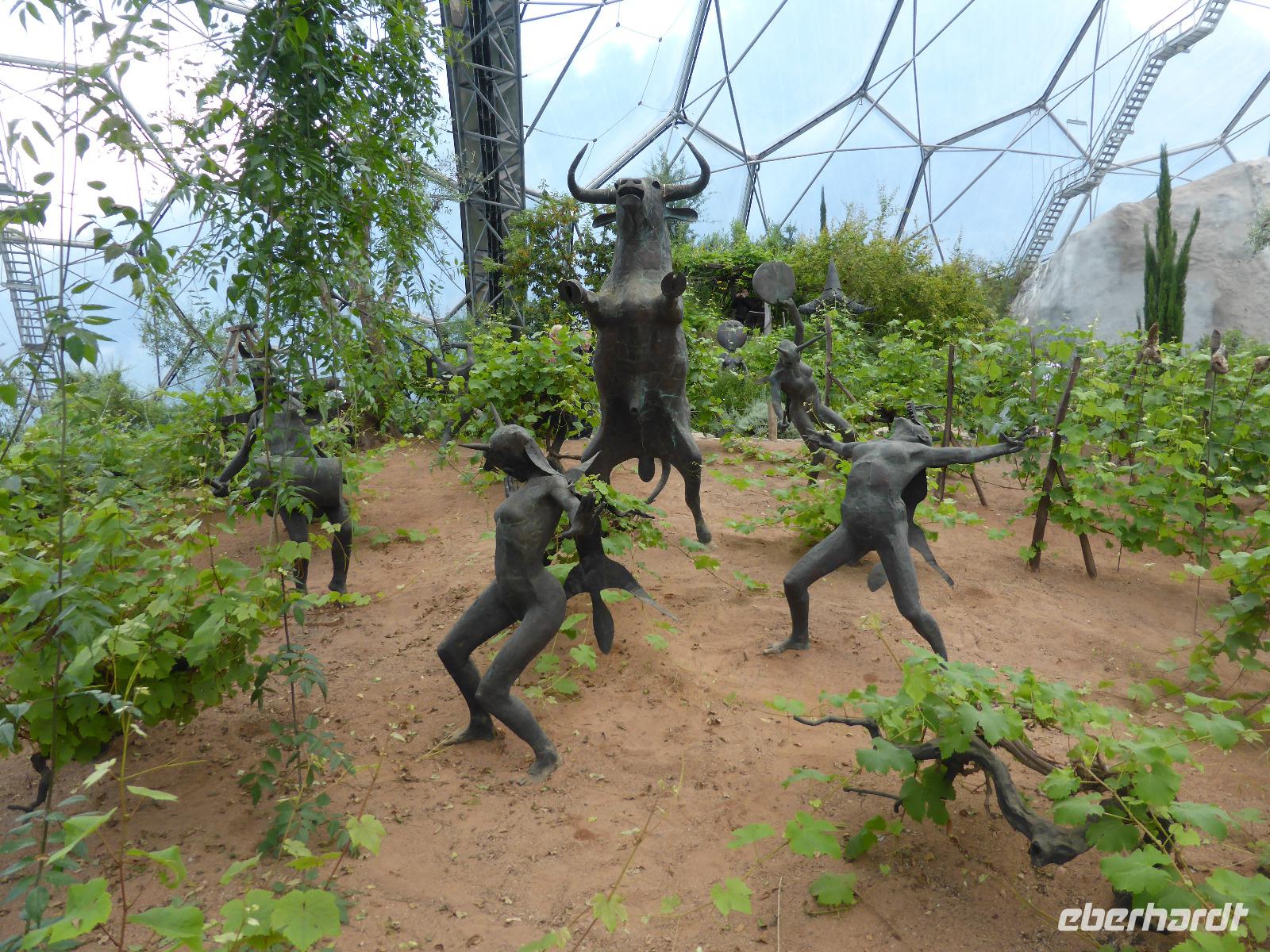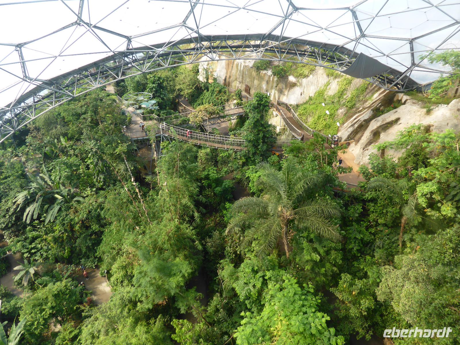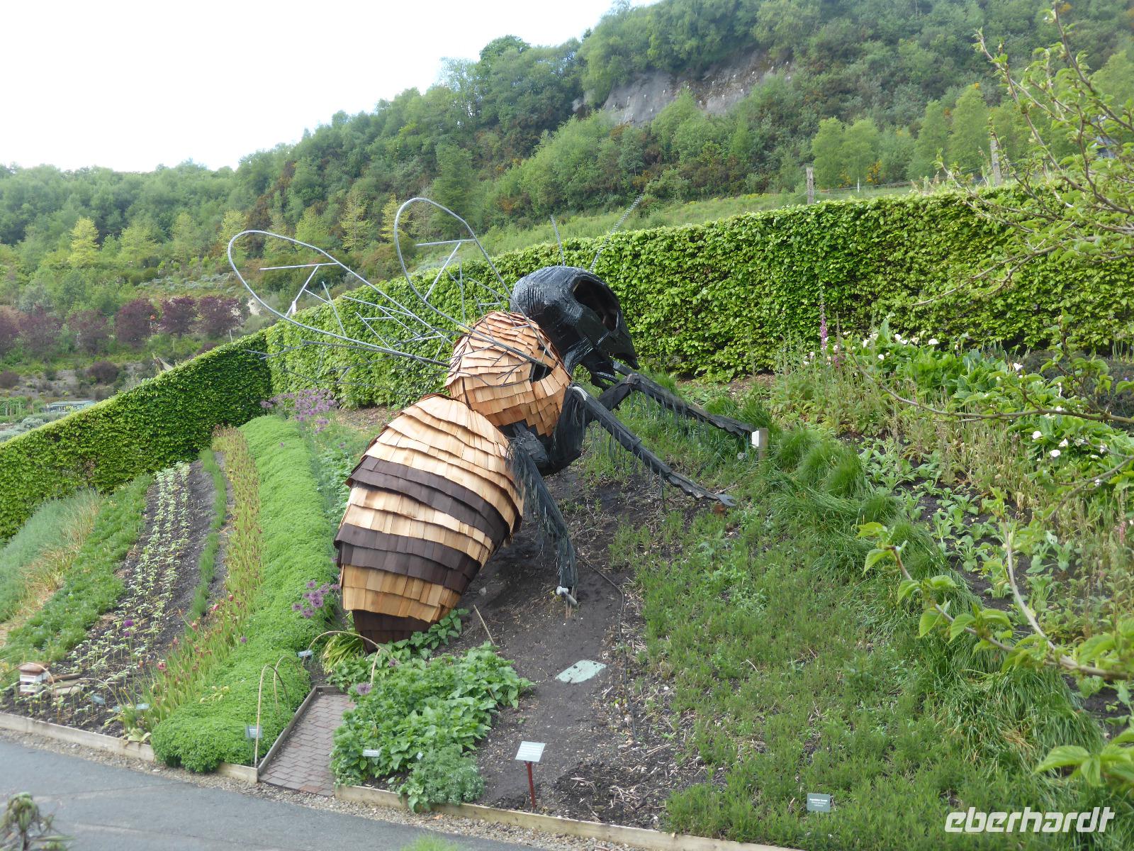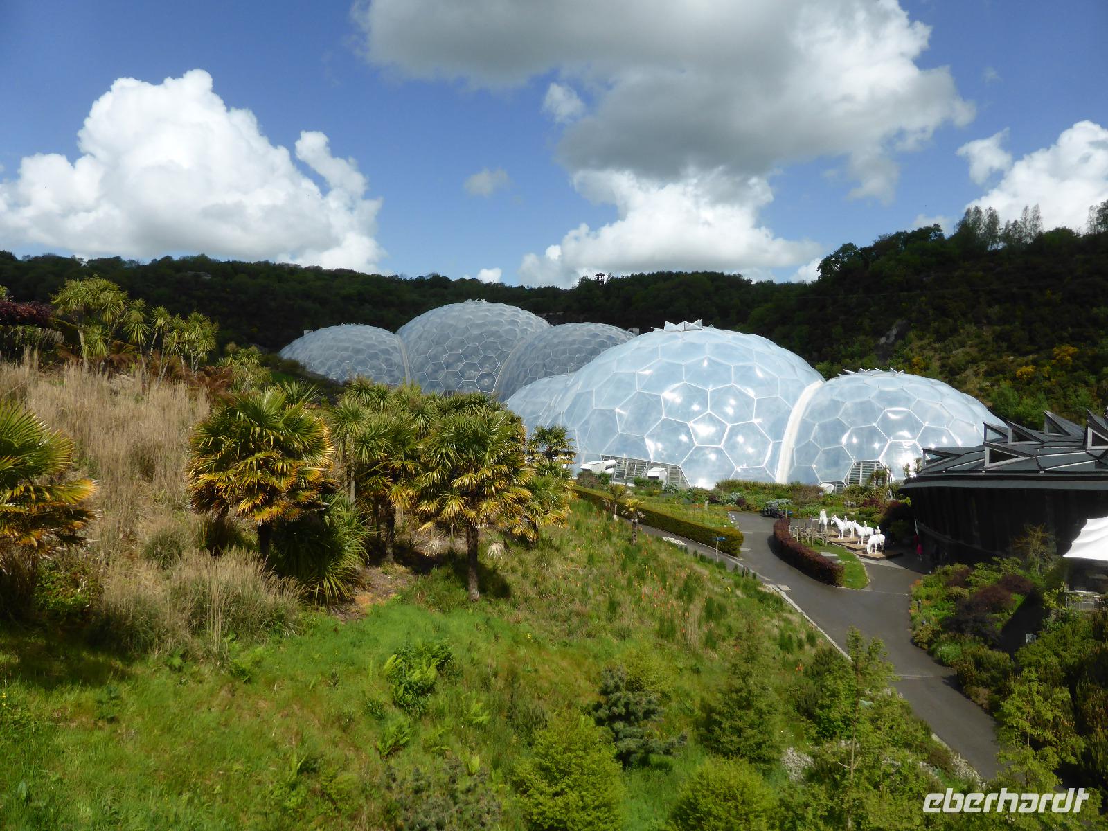 Heute verließen wir Cornwall. Auf das berühmte Eden Project bei St. Austell freuten sich viele Gäste. Tim Smit scheute keine Kosten und Mühen um in einer aufgelassen Kaolingrube einen Garten Eden zu schaffen. Er schuf zwei riesiege Biome mit jeweils 4 Gewächshäusern, sog. geodätische Kuppeln, um verschiedenen Klimazonen simulieren zu können. Im größten Gewächshaus wird ein subtropisch-feuchtes Klima wie im Regenwald generiert. Das kleine Gewächshaus bietet mediterranen Pflanzen Platz. Wir konnten Bananen, Ananas und zahlreiche subtropische Pflanzen bewundern. Eine besondere Australienausstellung erwartet uns in dem kleinen Gewächshaus. 2001 wurde dieses Projekt der Öffentlichkeit übergeben. Seitdem wird es immer wieder erweitert. In den Außenanlagen waren neben übergroßen Skulpturen auch Heilpflanzen zu bewundern.