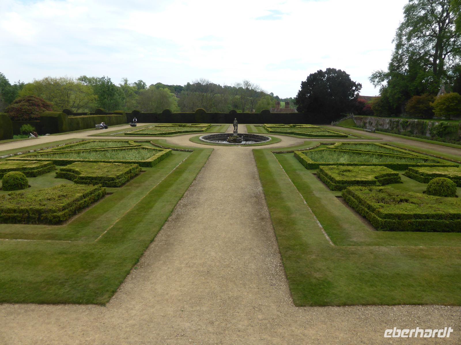 Zum Glück hatten wir in Sissinghurst wieder Sonnenschein und konnten die geometrischen angelegten Gärten mit der Kombination aus Wegen und Statuen genießen.