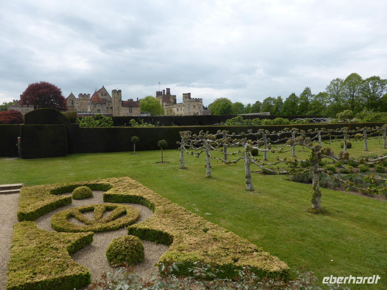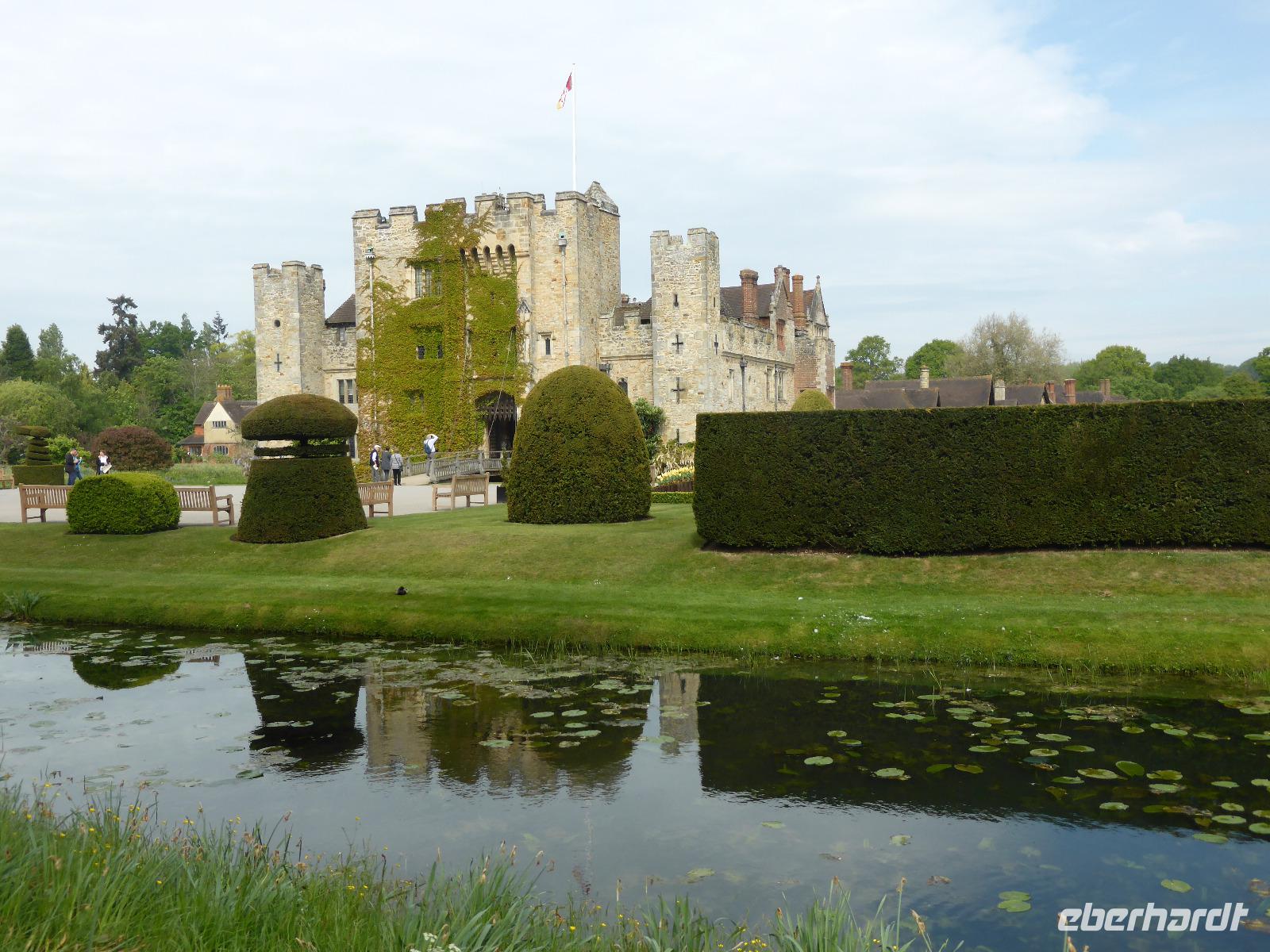 Trotz des allmorgendlichen Verkehrs kamen wir überpünktlich in Hever Castle an. In Hever Castle verbrachte die zweite Ehefrau von Heinrich VIII., Anne Boleyn, ihre Kindheit und Jugend. Ein Vorfahre von Anne kam als Bürgermeister von London zu Wohlstand und Ansehen und kaufte dieses Schlösschen. Im Laufe der Jahrzehnte wurde es zu einem imposanten Tudoranwesen umgebaut. Nach mehrmaligen Besitzerwechsel erwarb 1903 die amerikanische Familie Waldorf Astor das baufällige Anwesen und wandelte es in ein Märchenschloss um. Aus der Zeit der italienischen Renaissance erinnert die weitläufige Gartenanlage. Von der Loggia am See bestand die Möglichkeit einen Spaziergang um den See herum zu unternehmen oder sich am Hecken- und Wasserlabyrinth zu erfreuen.