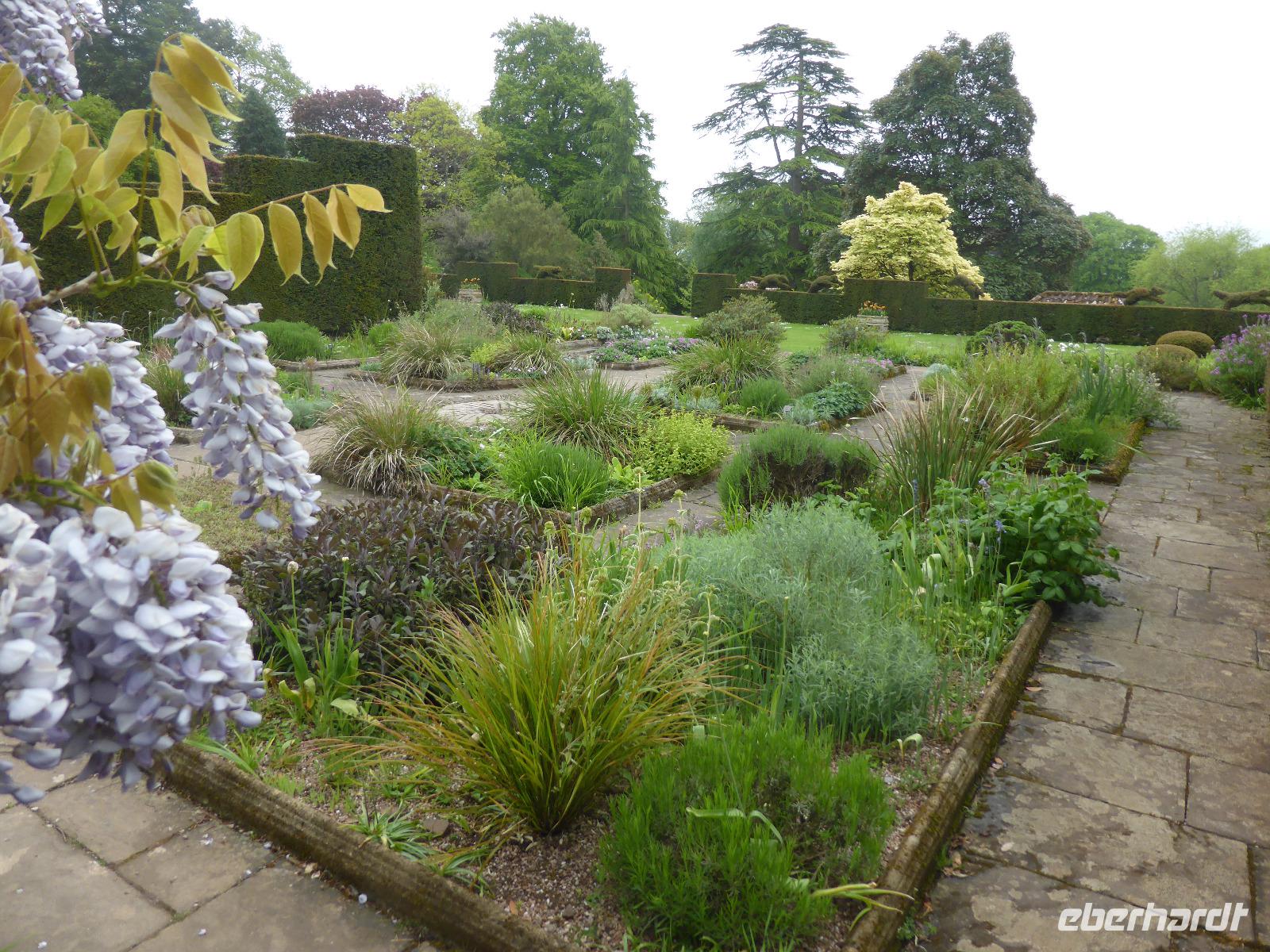 Nach diesem ersten wunderschönen Garten fuhren wir durch das landschaftlich reizvolle Kent nach Penshurst Place and Garden. In dieser Gartenanlage beeindruckte vor allem das original mittelalterliche Haus. Es spiegelt am besten die Wohnkultur des 14. Jahrhunderts wieder. In den ummauerten Gärten ist besonders der Flaggengarten bekannt. Leider blühte der „Union Jack" noch nicht.