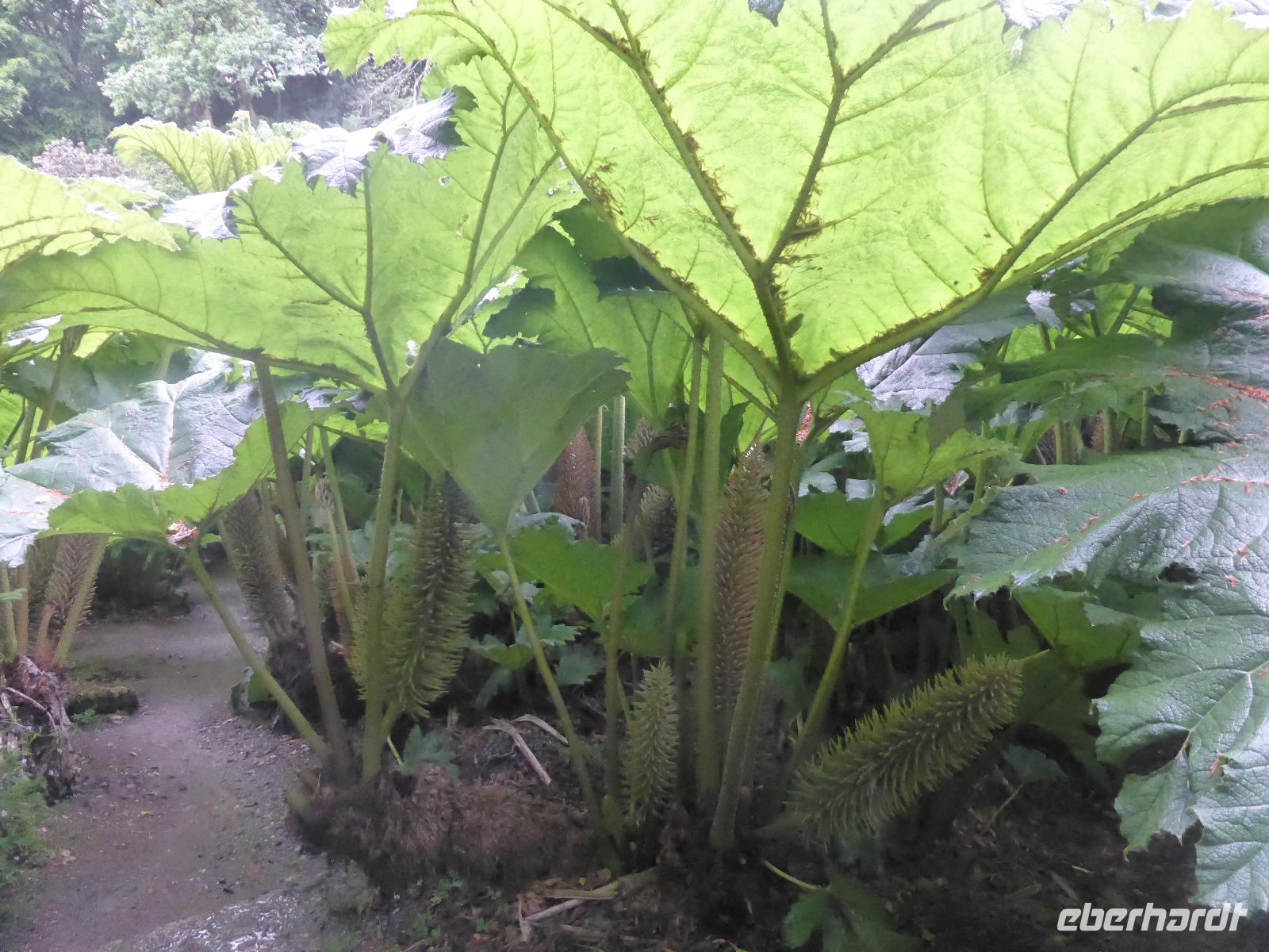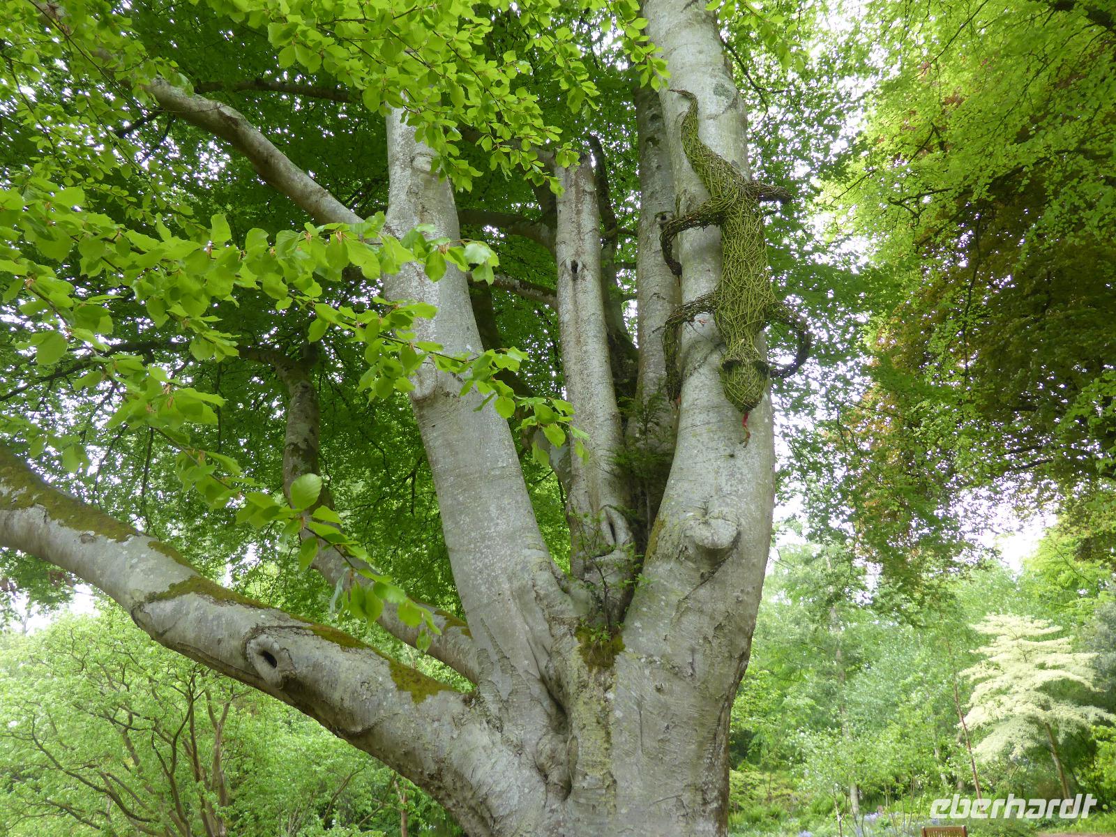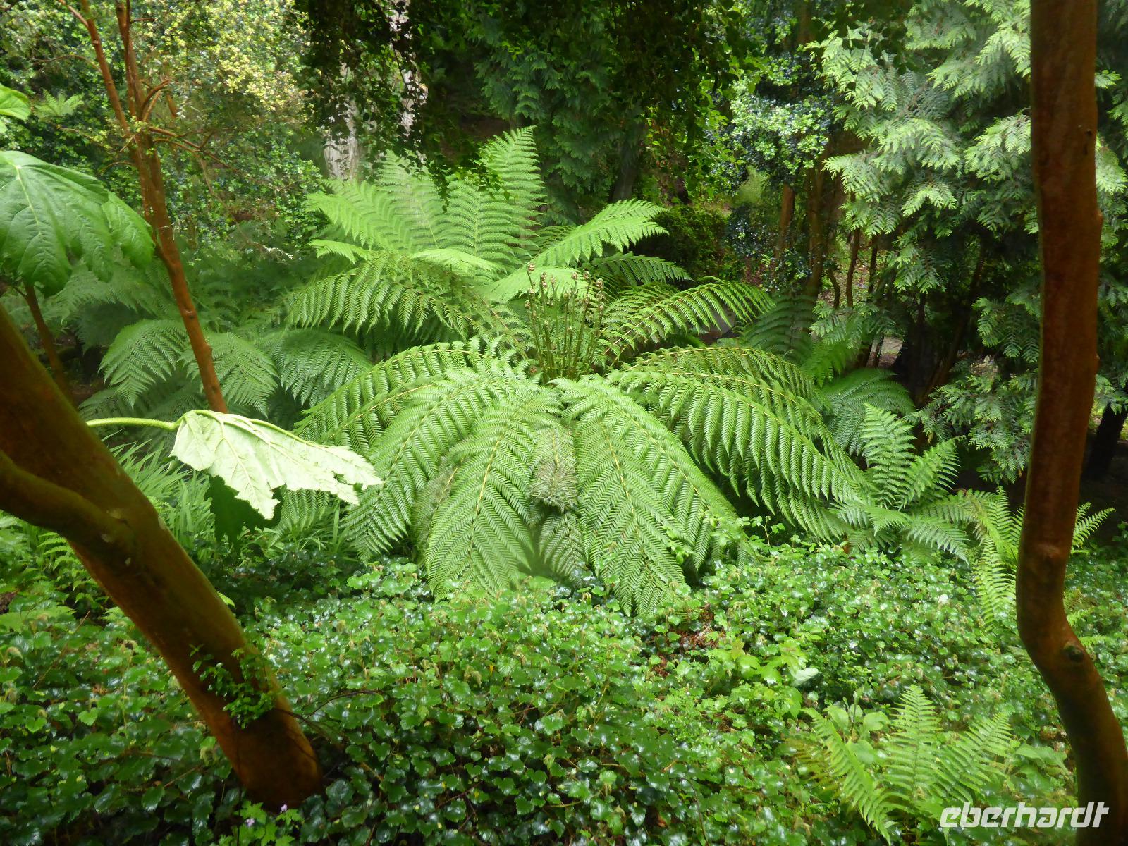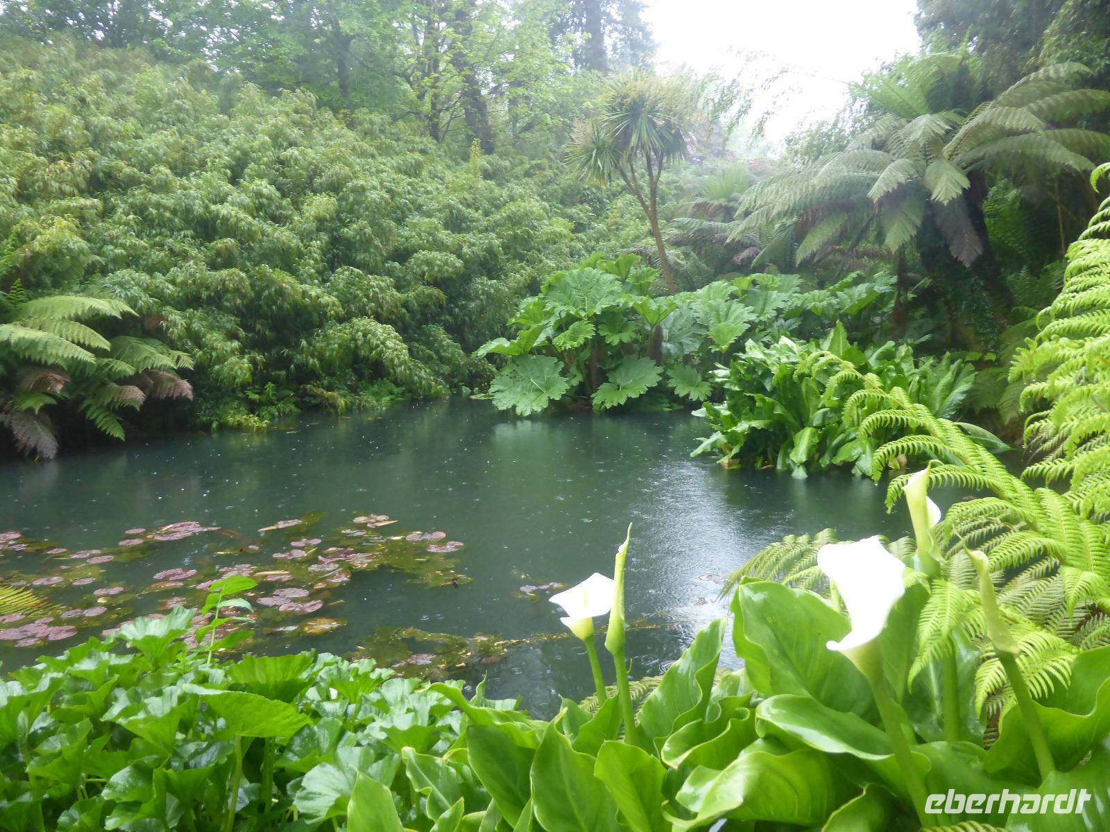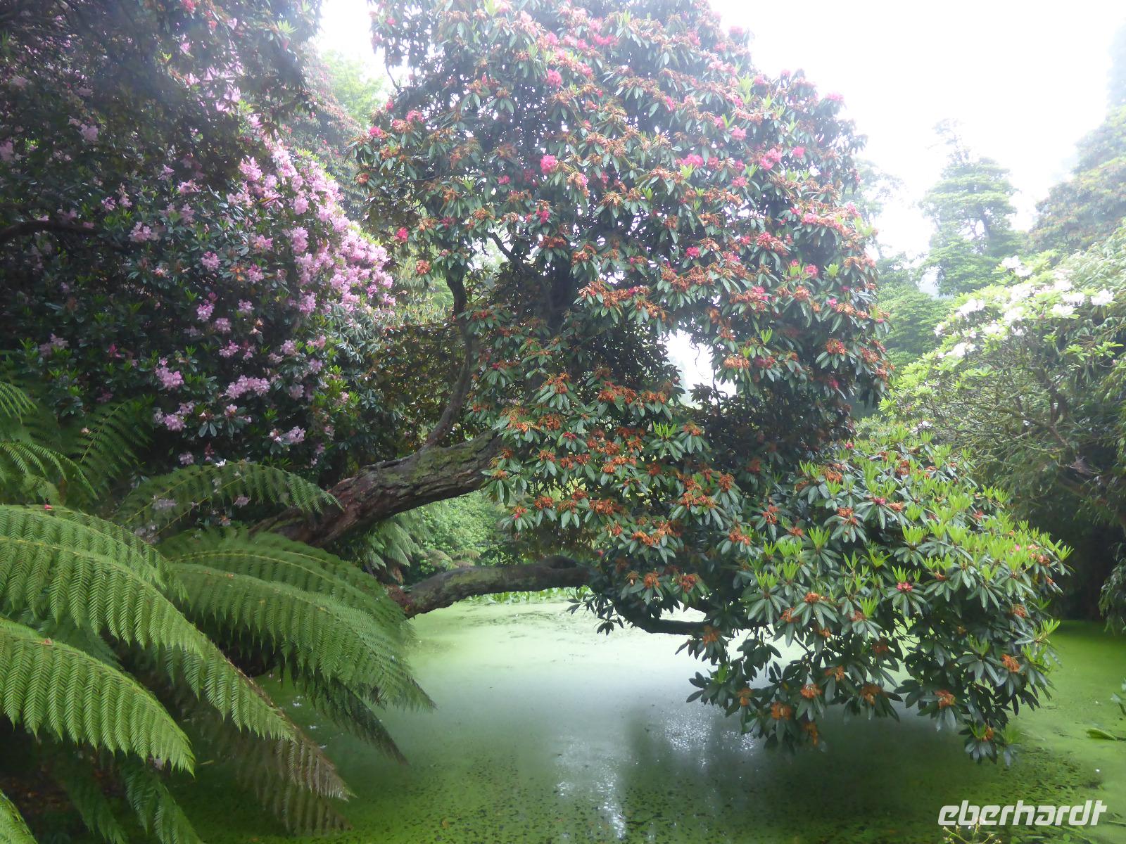 Am Nachmittag besuchten wir die Lost Gardens of Heligan bei St. Austell. Im 19. Jahrhundert gehörte dieser Garten der Familie Treymayne. Diese konnte sich den Luxus von mehr als 20 Gärtnern leisten. Nach dem Ersten Weltkrieg verstarb der letzte männliche Erbe und ein Großteil dieser Parkanlage verwilderte. 1990 nahm sich Tim Smit, ein Holländer aus Kent diesem „verlorenen Garten" an, nachdem er auf ein völlig überwuchertes Cottage aufmerksam wurde. Anhand alter Aufzeichnungen und Gartenhistorikern verhalf er Heiligan zu einer grandiosen Widergeburt. Bemerkenswert ist der neun Hektar große subtropische „Dschungel" mit den Palmen, Bambumwäldern und Gunneras (Mammutblättern). Zur Gestaltung des Gartens tragen auch Baum- und Landschaftsskulpturen bei, wie die schlafende Schönheit Mud Maid oder der Kopf des Riesen. Ein Spaziergang durch die Blumen- und Gemüsegärten mit mehr als 12 Kartoffelsorten und ca. 50 Apfelbaumsorten versäumten wir nicht. Eine Augenweide waren die riesigen Rhododendren.