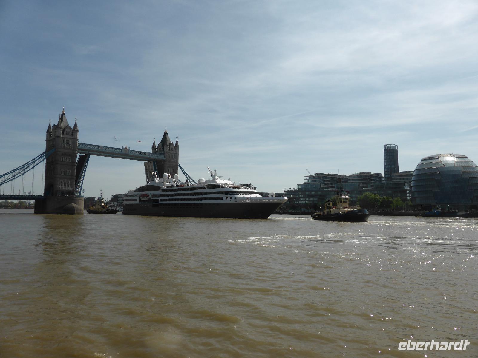 Im Anschluss reisten wir weiter nach London. Am Tower legten wir einen Stopp ein und besuchten das St. Catherine´s Dock. Während unseres Aufenthaltes konnten wir das Schauspiel des Öffnens der Tower Bridge mit der Ausfahrt eines Kreuzfahrtschiffes mitverfolgen. Nach dem unsere Fluggäste die Gruppe erreicht hatten, startete Teresa Hunt mit der Stadtrundfahrt durch die britische Metropole. Mit viel Charme und Witz zeigte sie uns die Hauptsehenswürdigkeiten Londons. An der St. Paul´s Kathedrale, in Westminster sowie am Buckingham Palast legte sie kurze Stopps zum Staunen und Fotografieren ein.