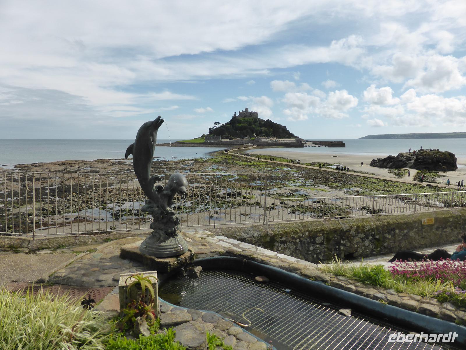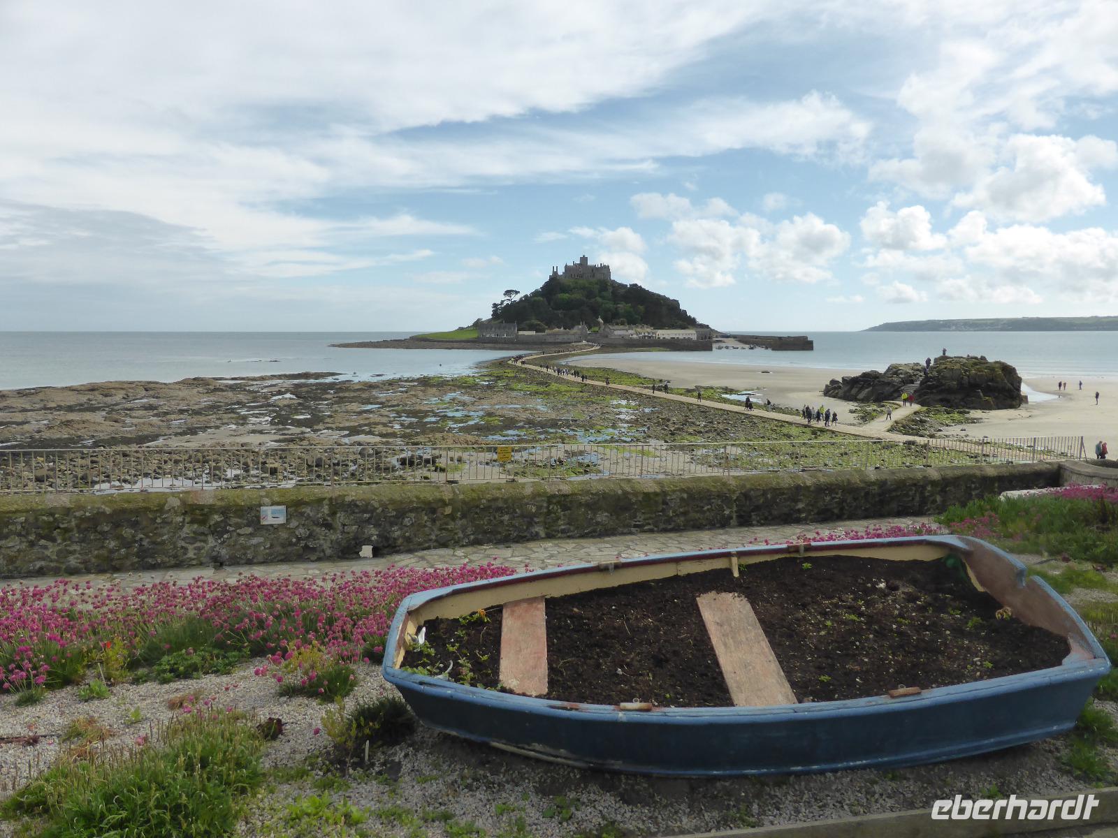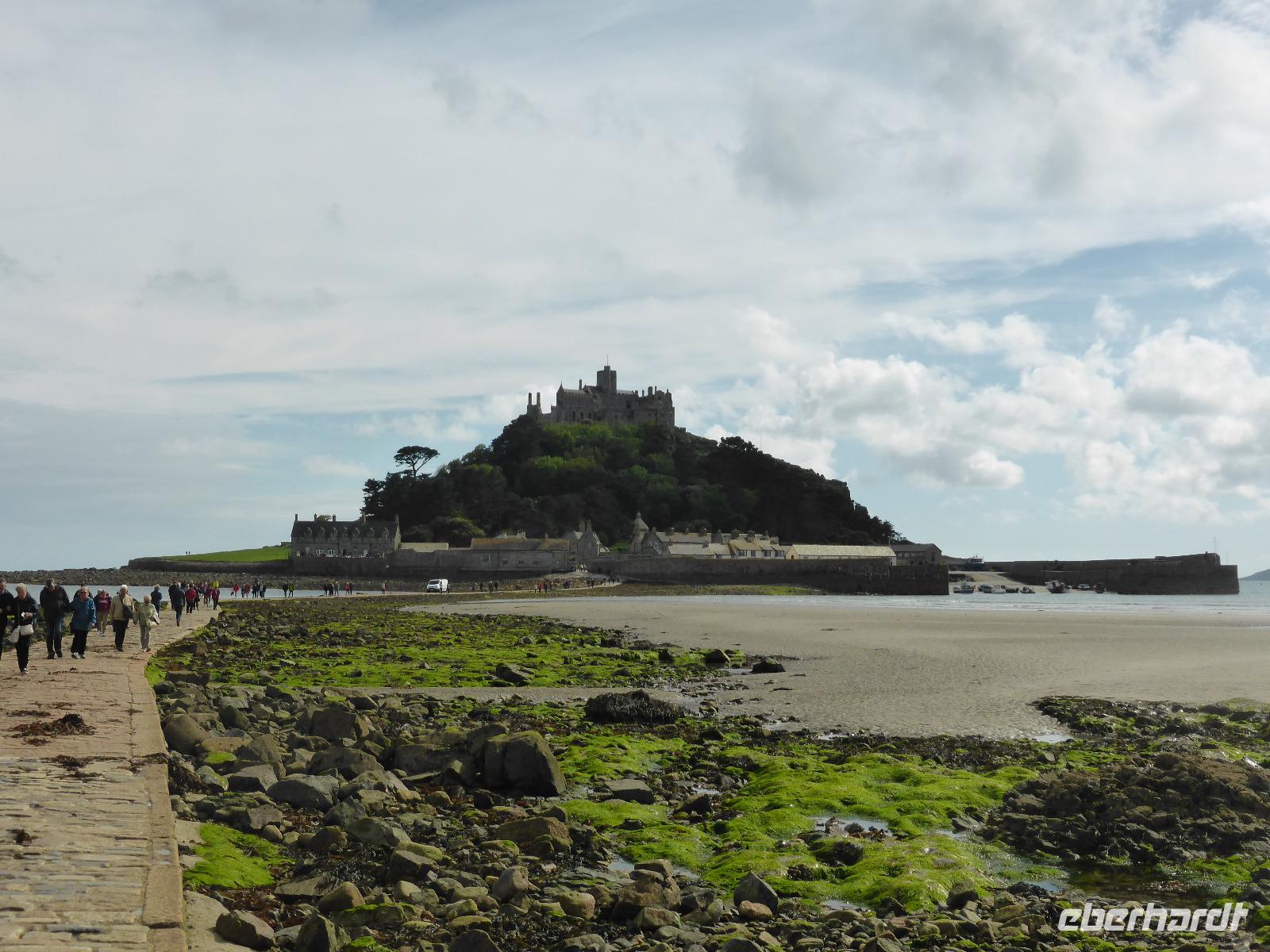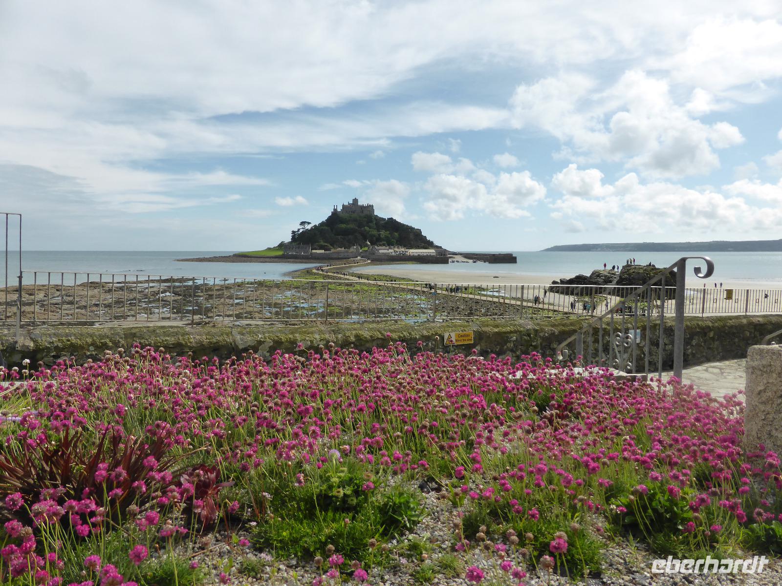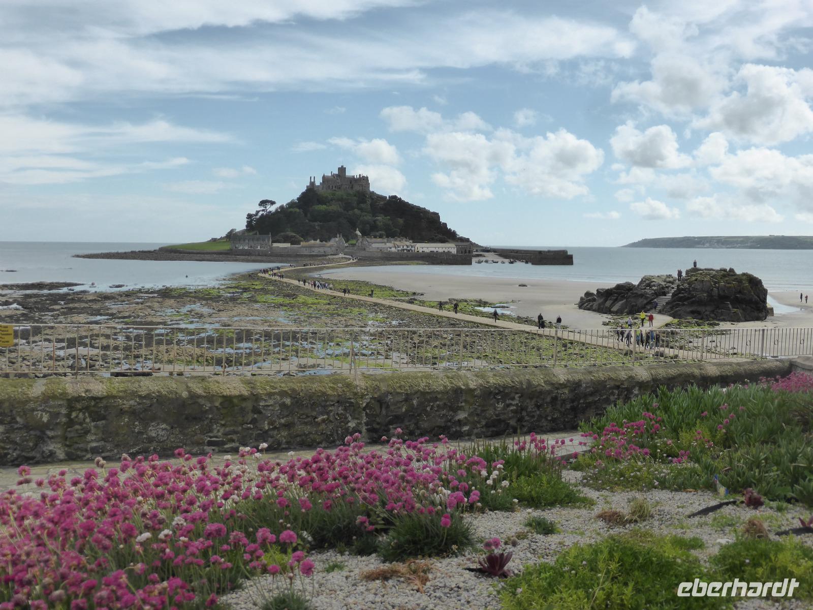 Am Nachmittag besuchten wir St. Michael´s Mount, die Insel vor Marazion. Nach einem kleinen Spaziergang über den Damm gelangten wir zur bewohnten Insel. Dies ist nur bei Ebbe möglich. In der Chronik der Felseninsel heißt es, dass 495 der Hl. Michael den Fischern erschienen sein soll. So wurde der Platz zum heiligen Ort, an dem das Christentum bis zur Reformation gepflegt wurde. Wilhelm der Eroberer überließ es bretonischen Benediktinermönchen des Mont St. Michel.