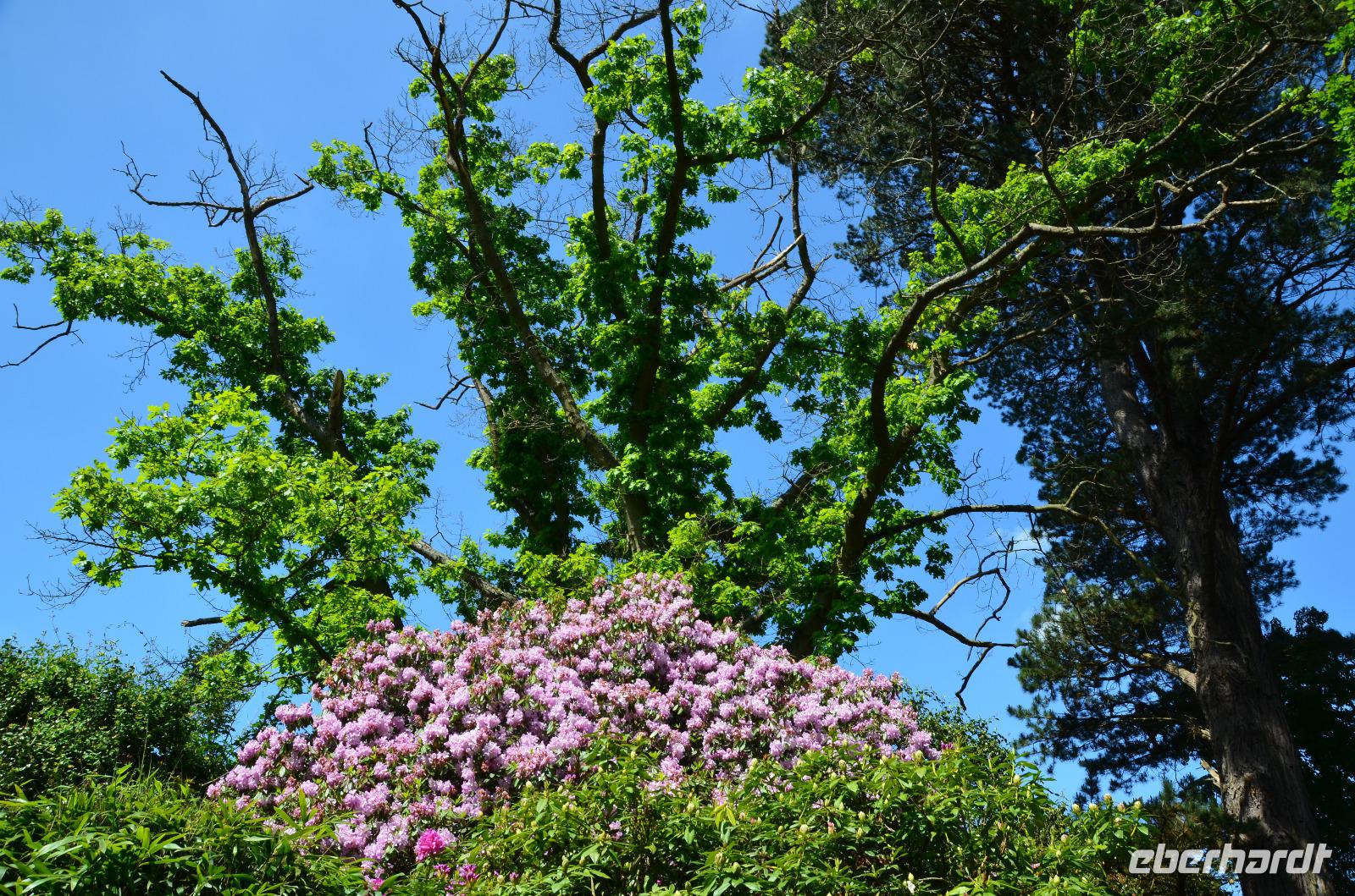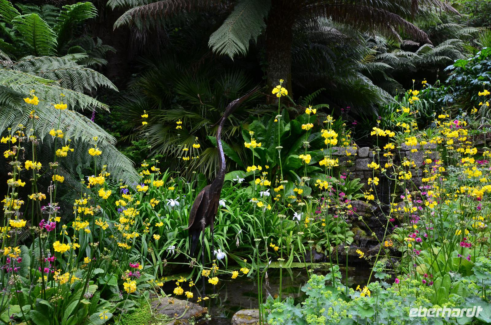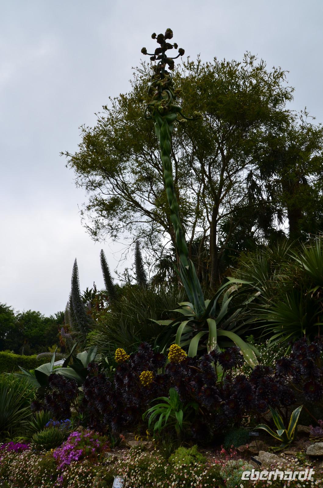 Gleich am Morgen machten wir uns auf, fuhren in die Nähe von Falmouth und besuchten Trebah Garden, einen Schluchtengarten mit unzähligen verschiedenfarbig blühenden Blumen und Sträuchern, mit Palmen, mit blühenden Agaven und mit Baumfarnen. Durchflossen von einem idyllischen Bächlein und einem See in dem Nessy völlig neu erblüht.