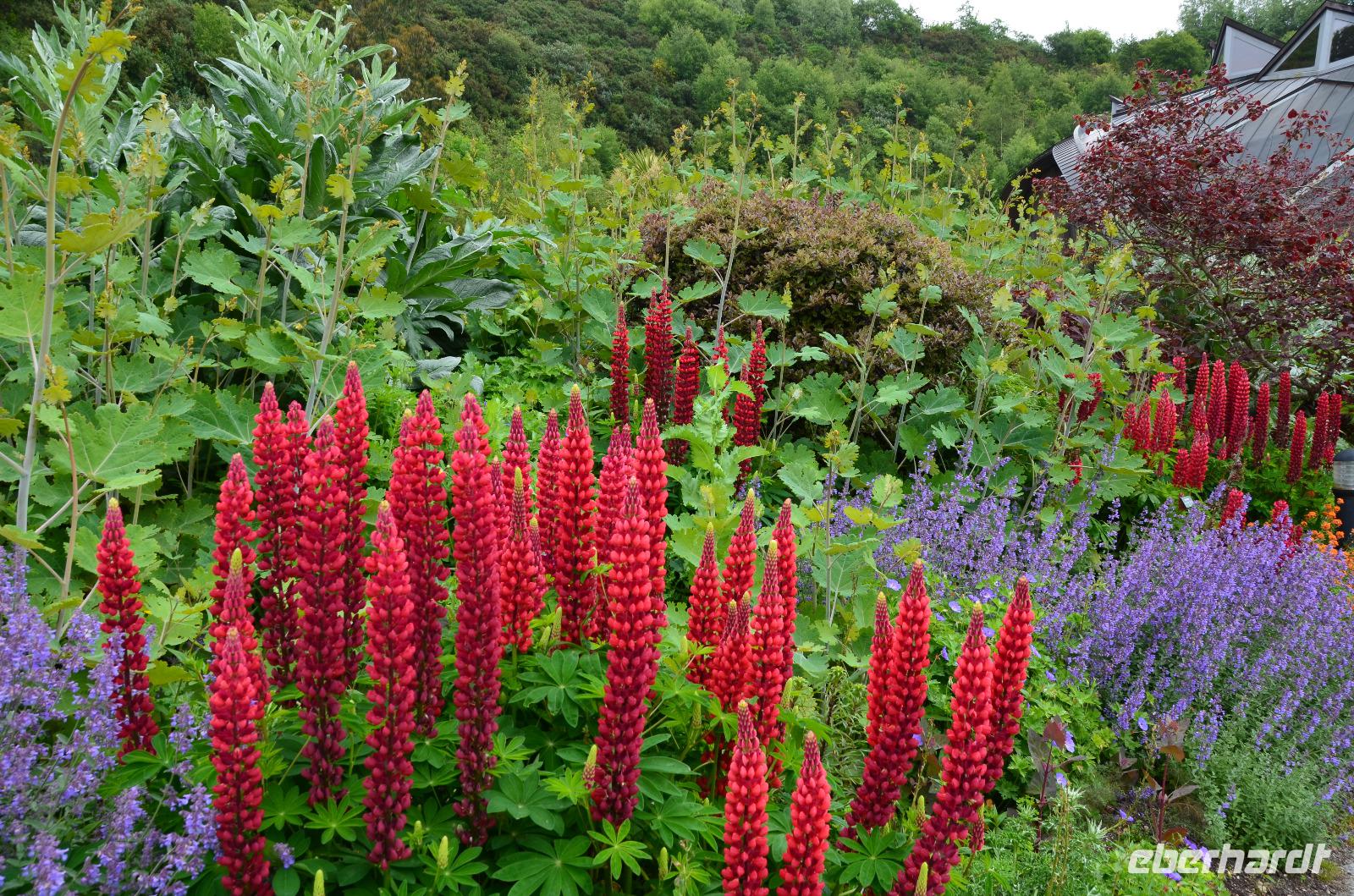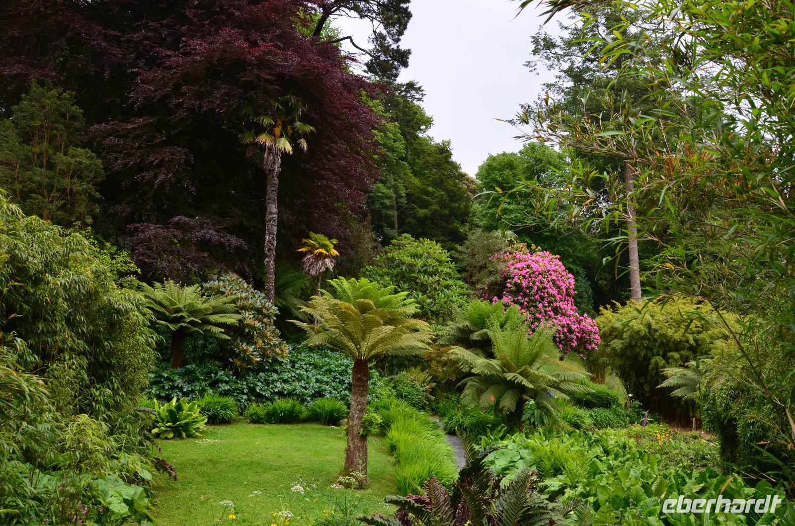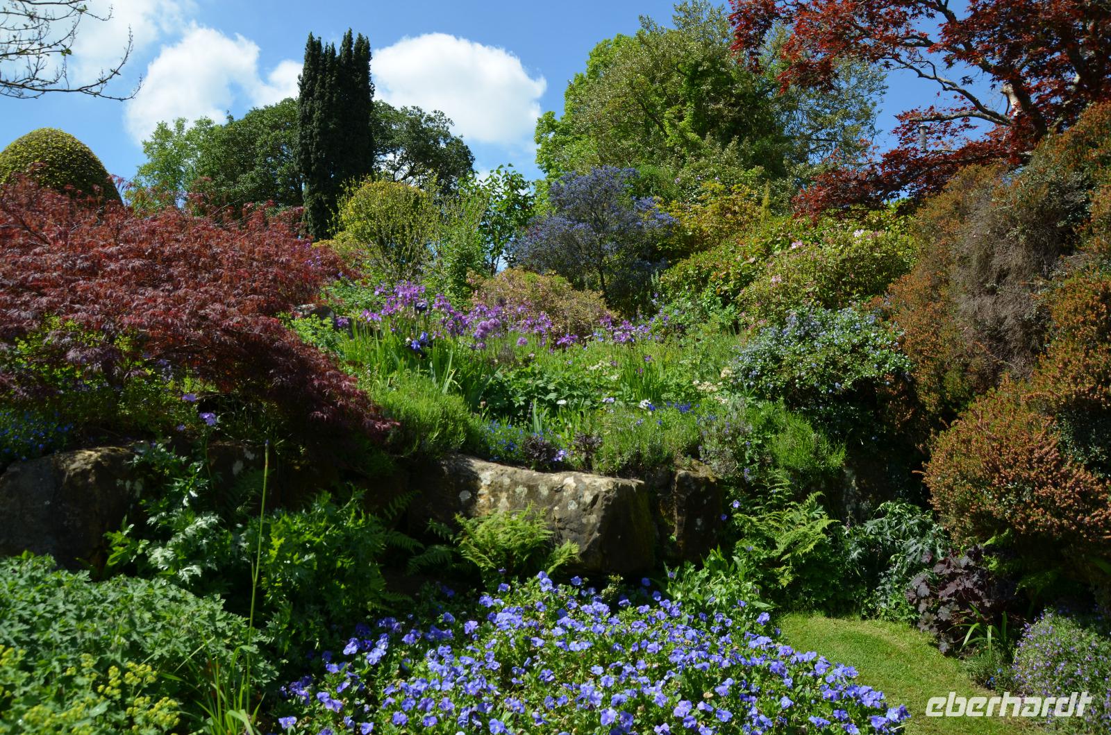 Gleich am Morgen machten wir uns auf, fuhren in die Nähe von Falmouth und besuchten Trebah Garden, einen Schluchtengarten mit unzähligen verschiedenfarbig blühenden Blumen und Sträuchern, mit Palmen, mit blühenden Agaven und mit Baumfarnen. Durchflossen von einem idyllischen Bächlein und einem See in dem Nessy völlig neu erblüht.