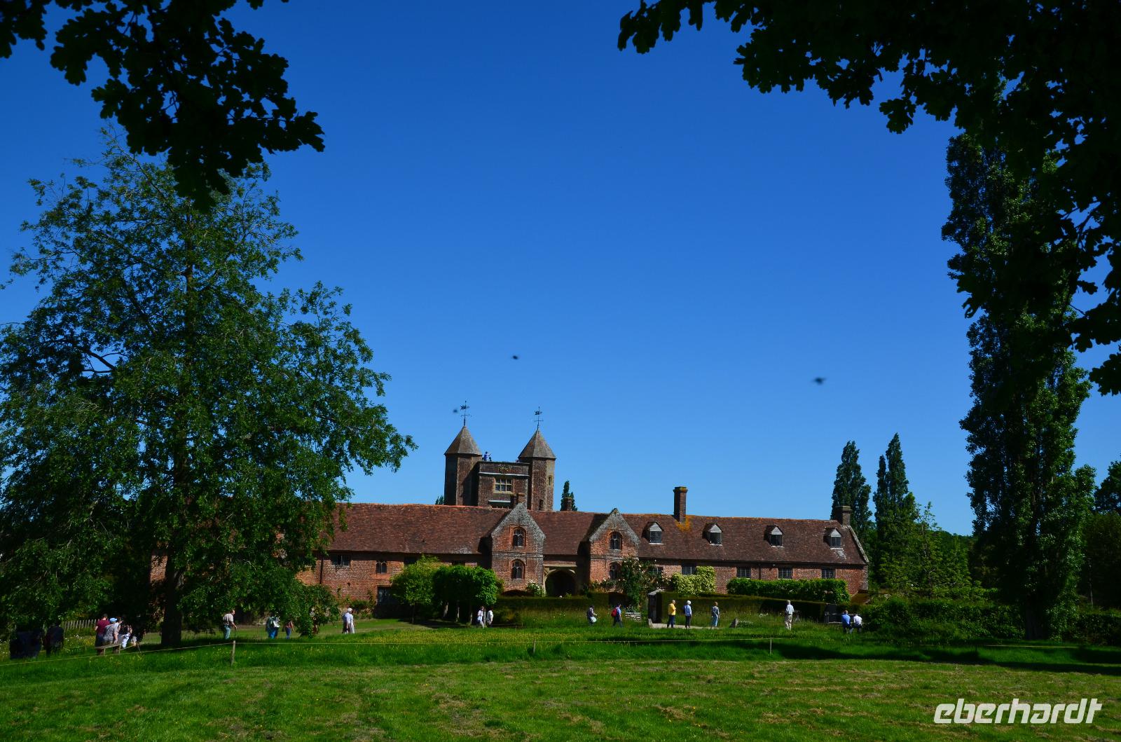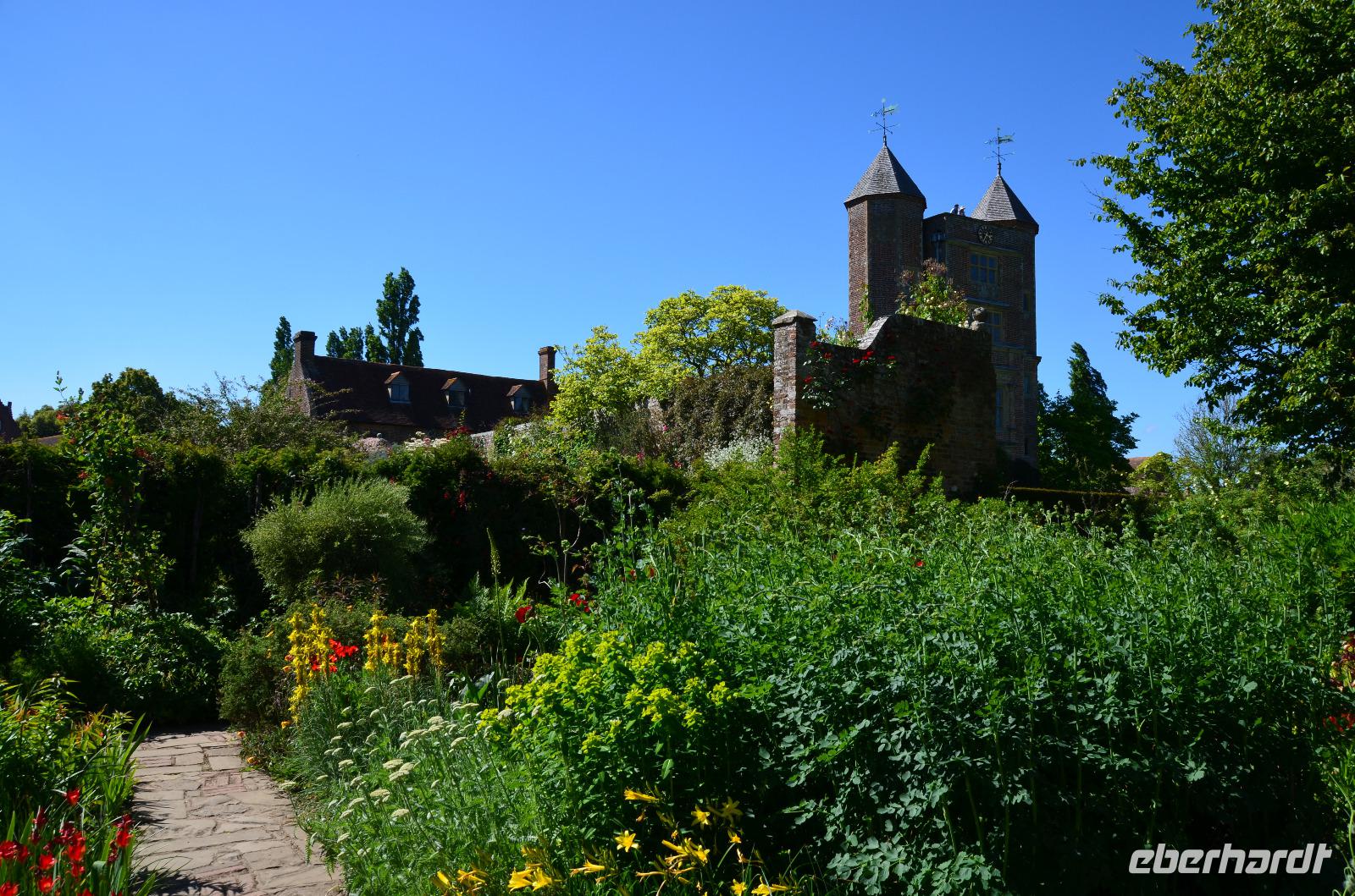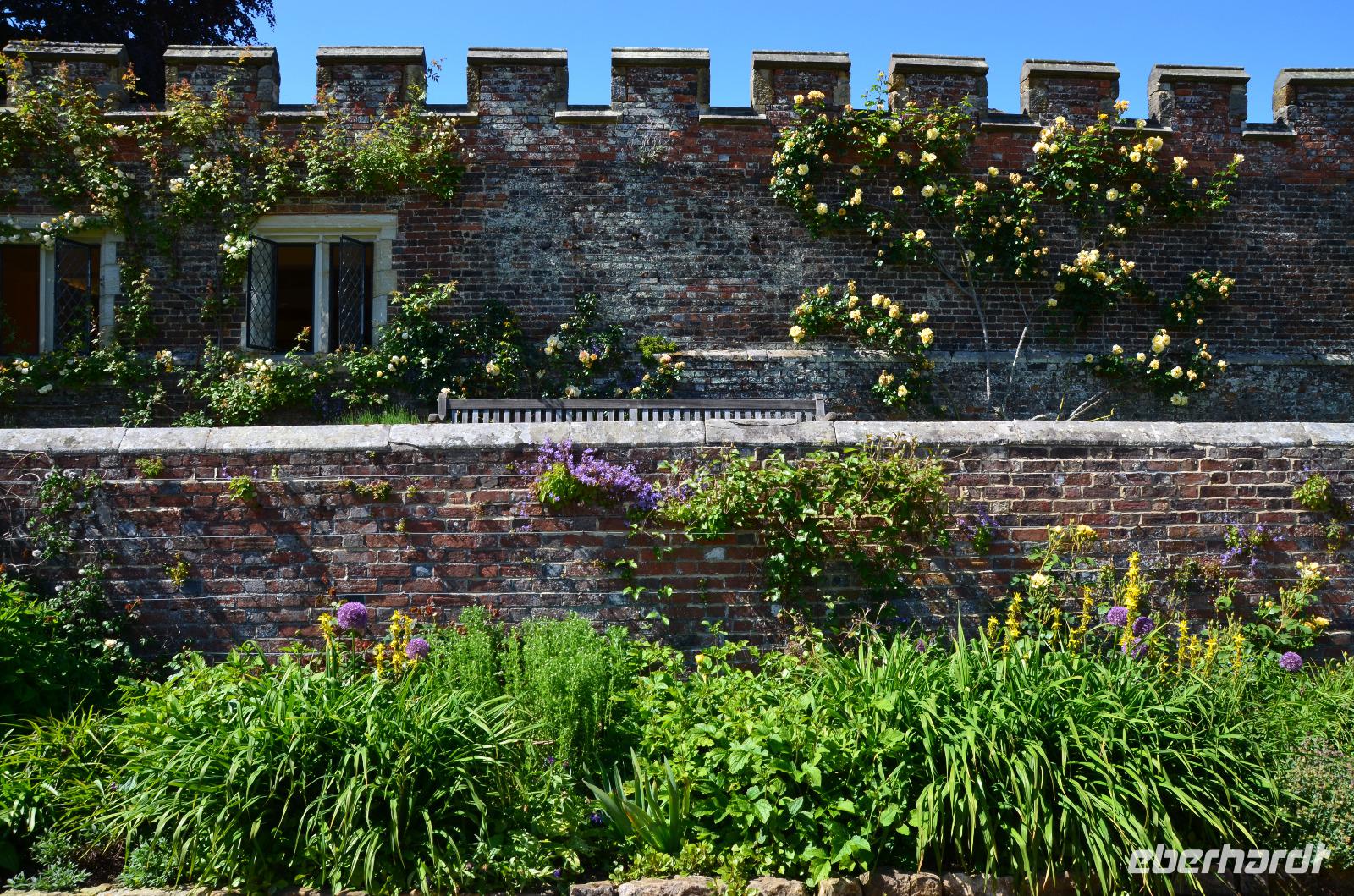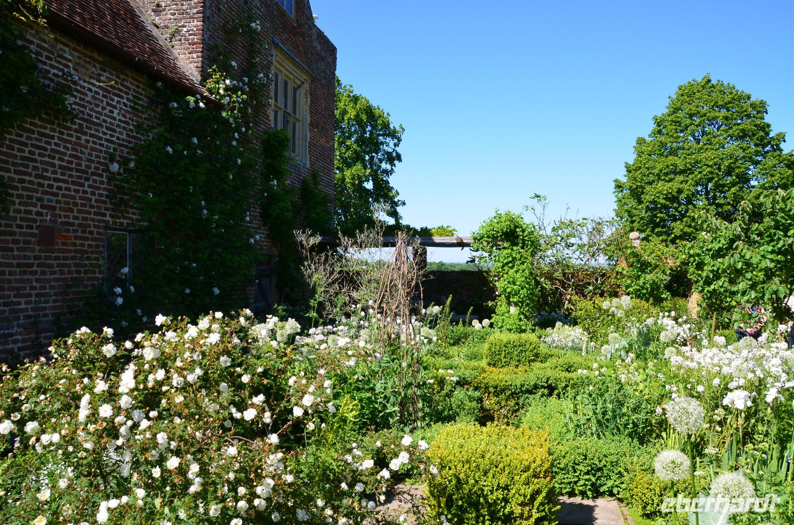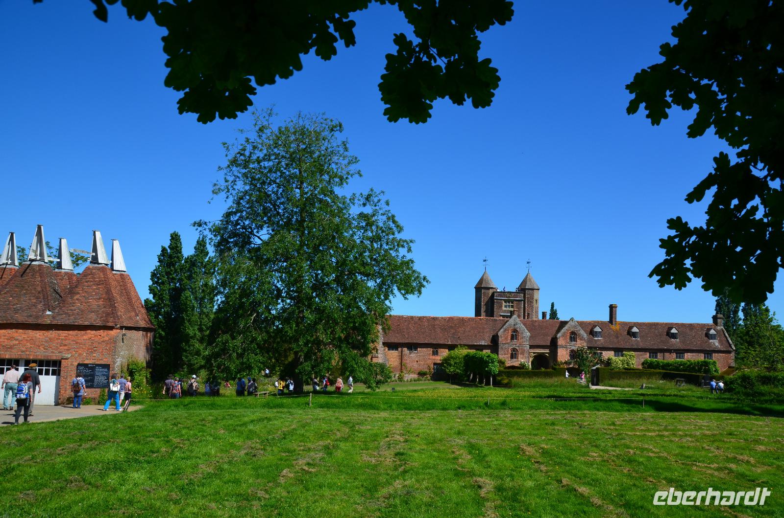 Am Platz der alten Schweinefarm in Sissinghurst erhebt sich ein Doppelturm in Ziegelbauweise über verschiedenen Themengärten, die vor vielen Jahrzehnten von der Autorin Vita Sackville-West und ihrem Ehemann angelegt worden waren. Wir genossen den sonnigen Nachmittag zwischen duftenden Rosen und bunt blühenden Beeten oder verschafften uns einen Überblick über die Anlage vom Aussichtspunkt des Doppelturms aus.