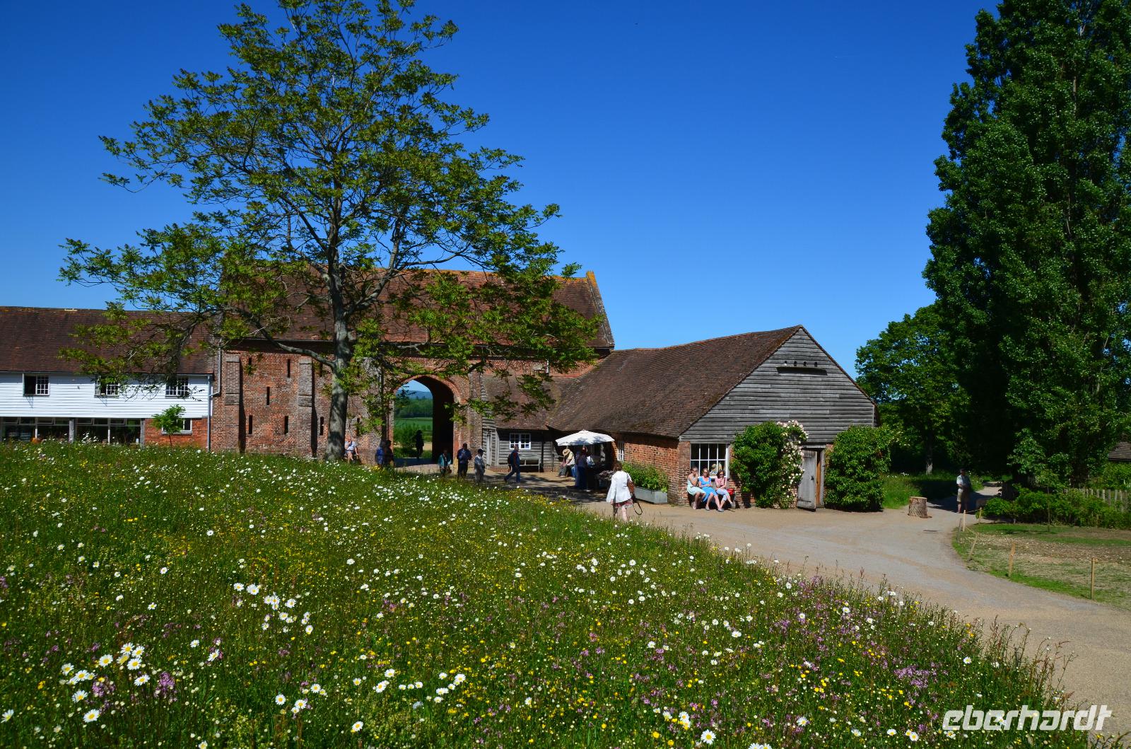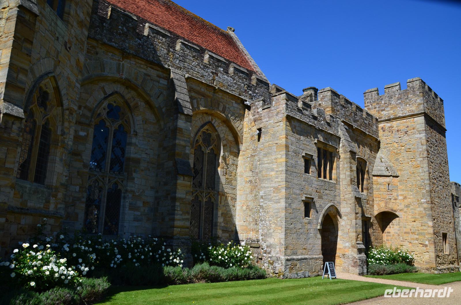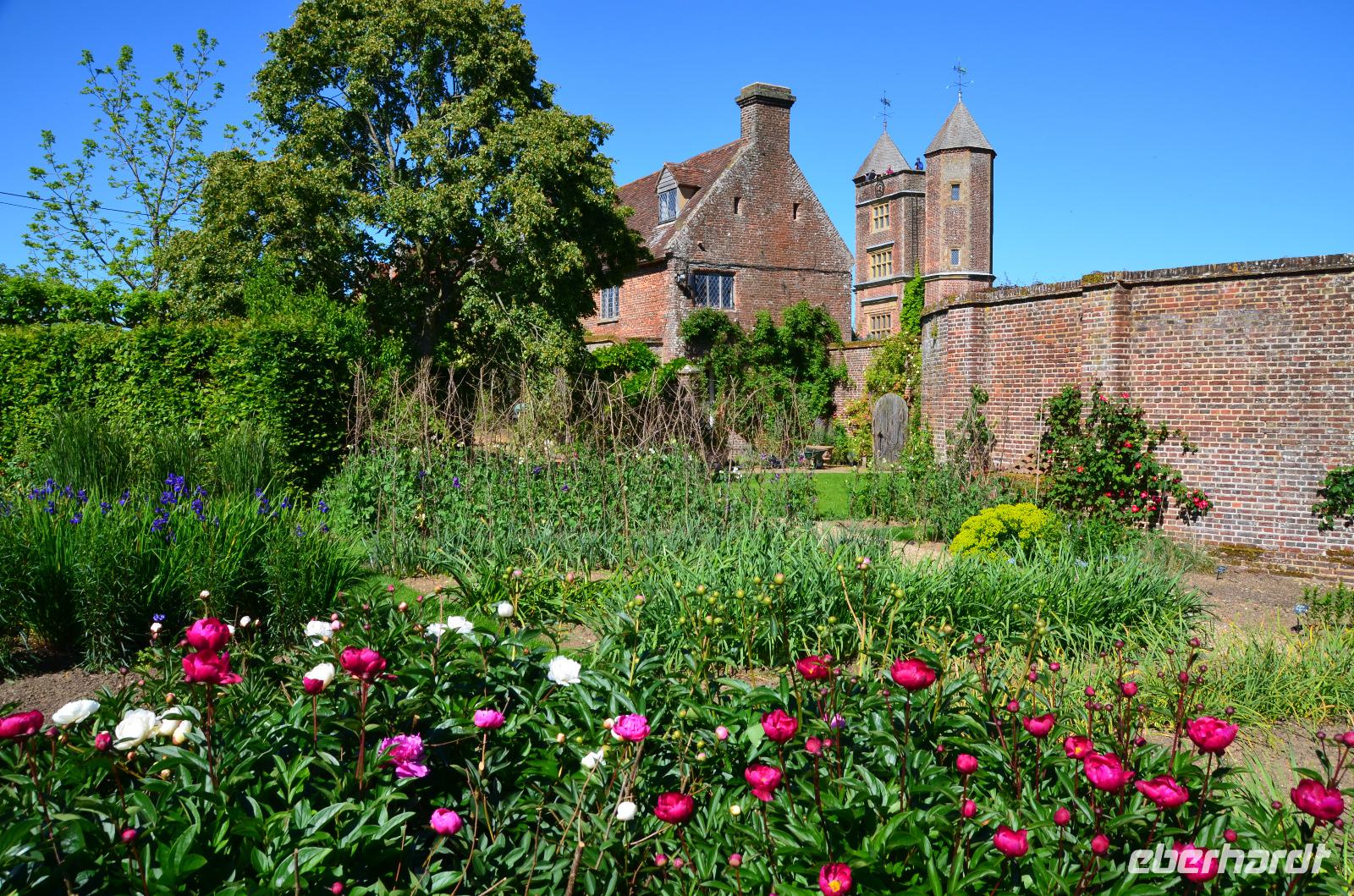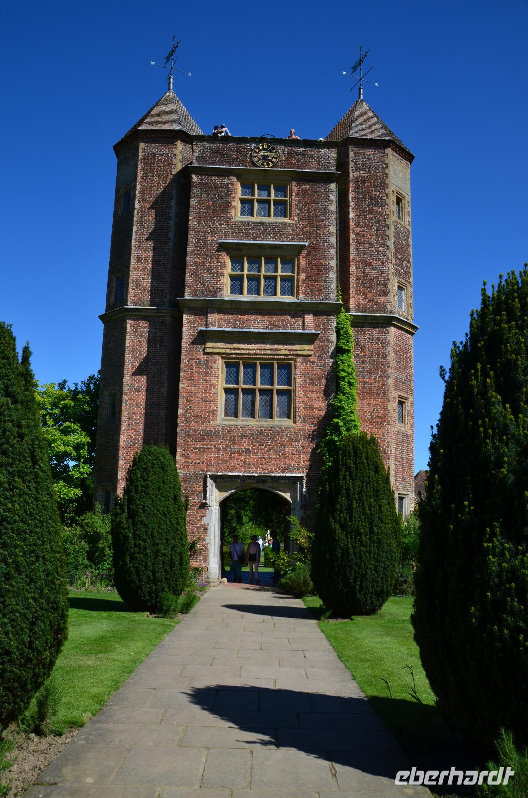 Am Platz der alten Schweinefarm in Sissinghurst erhebt sich ein Doppelturm in Ziegelbauweise über verschiedenen Themengärten, die vor vielen Jahrzehnten von der Autorin Vita Sackville-West und ihrem Ehemann angelegt worden waren. Wir genossen den sonnigen Nachmittag zwischen duftenden Rosen und bunt blühenden Beeten oder verschafften uns einen Überblick über die Anlage vom Aussichtspunkt des Doppelturms aus.
