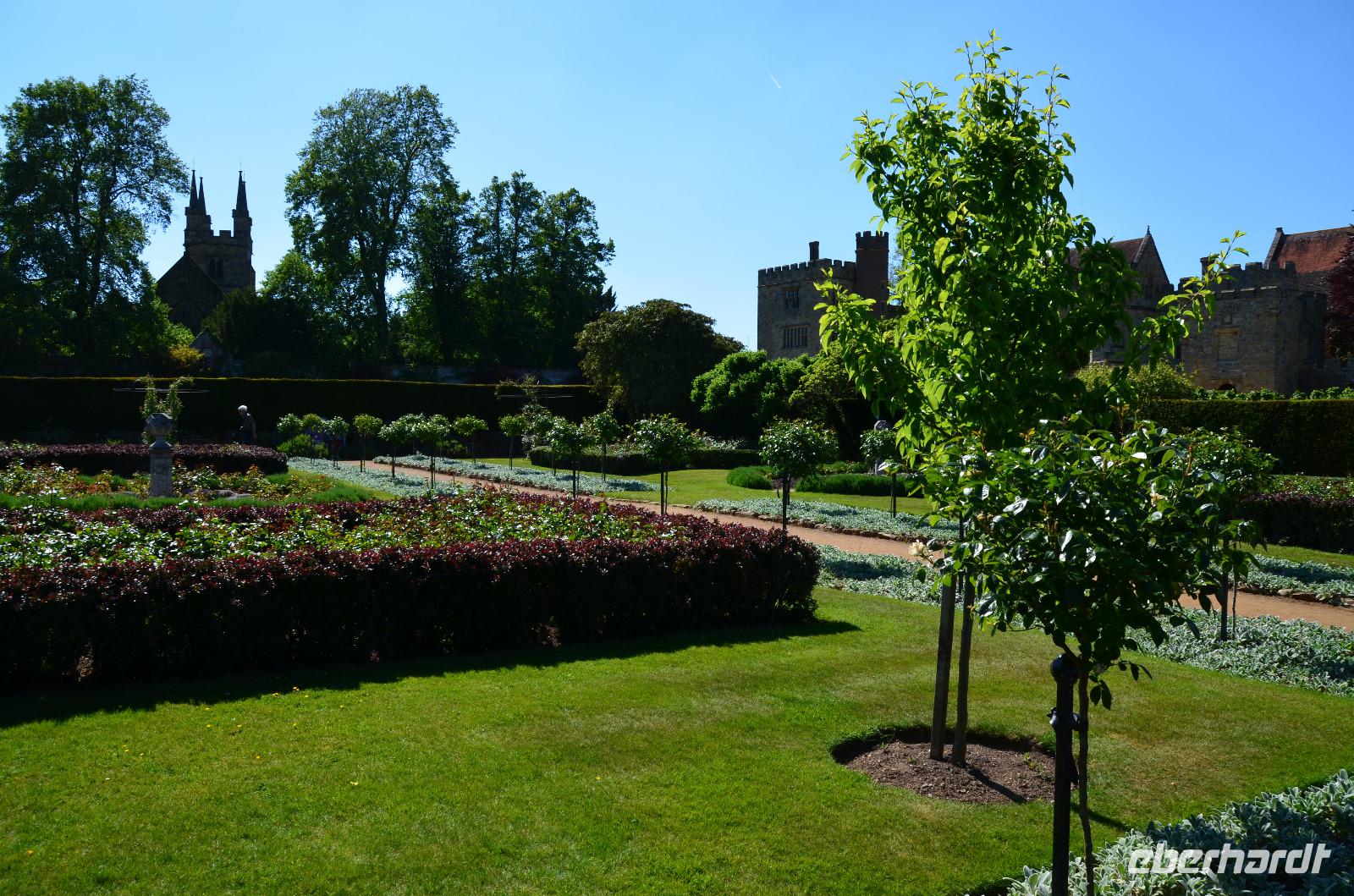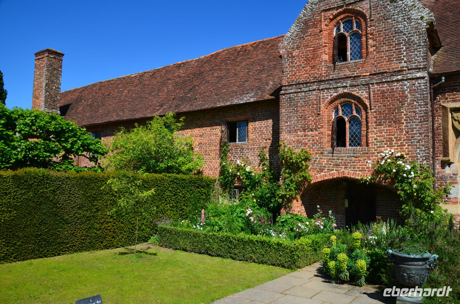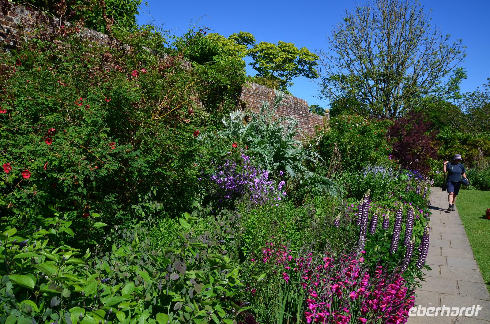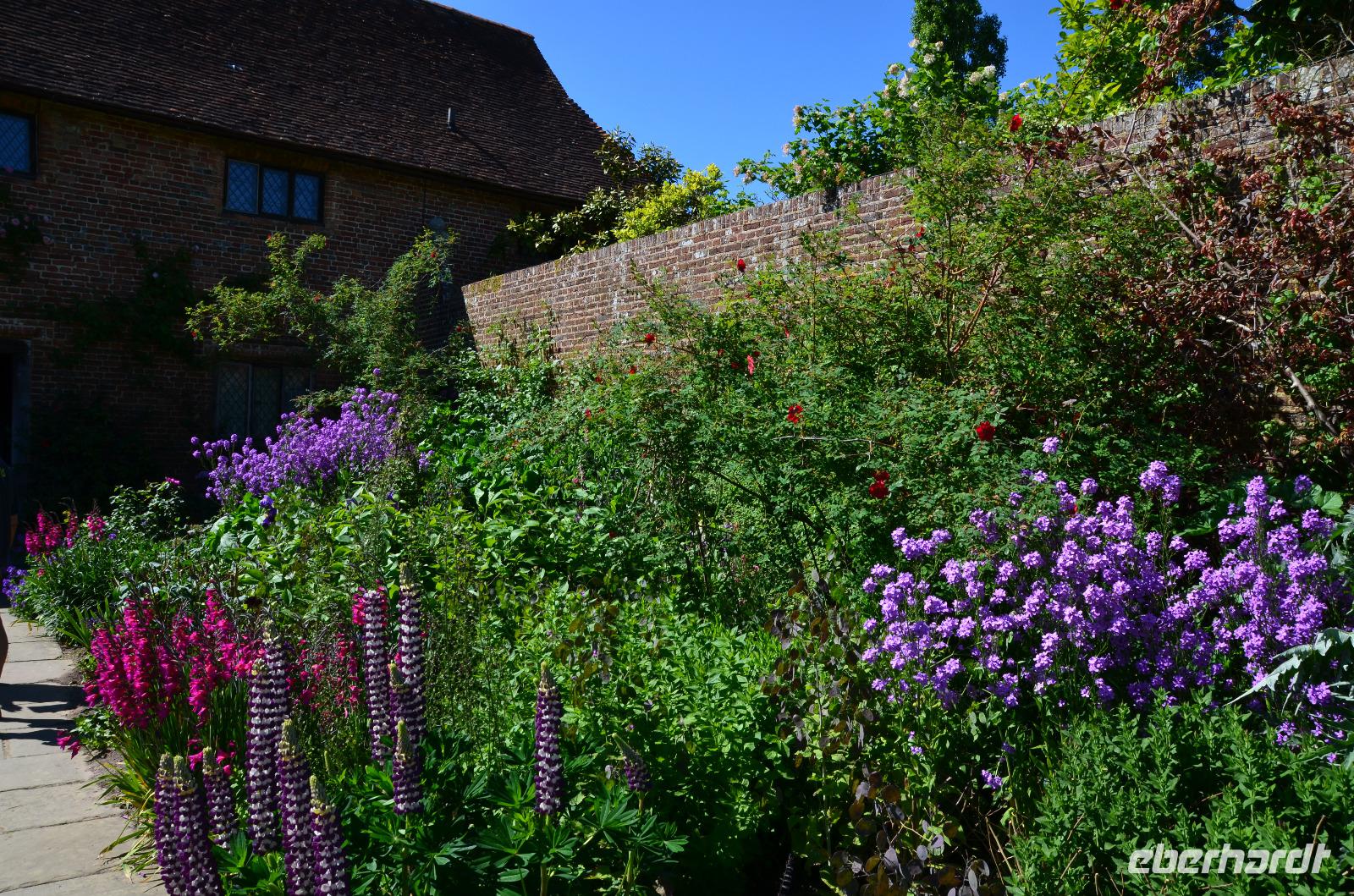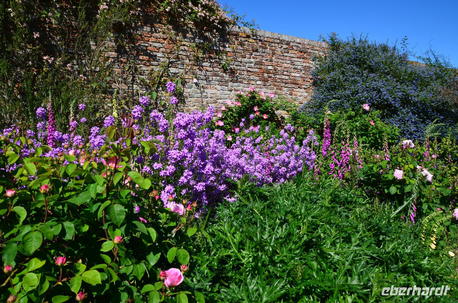 Am Platz der alten Schweinefarm in Sissinghurst erhebt sich ein Doppelturm in Ziegelbauweise über verschiedenen Themengärten, die vor vielen Jahrzehnten von der Autorin Vita Sackville-West und ihrem Ehemann angelegt worden waren. Wir genossen den sonnigen Nachmittag zwischen duftenden Rosen und bunt blühenden Beeten oder verschafften uns einen Überblick über die Anlage vom Aussichtspunkt des Doppelturms aus.