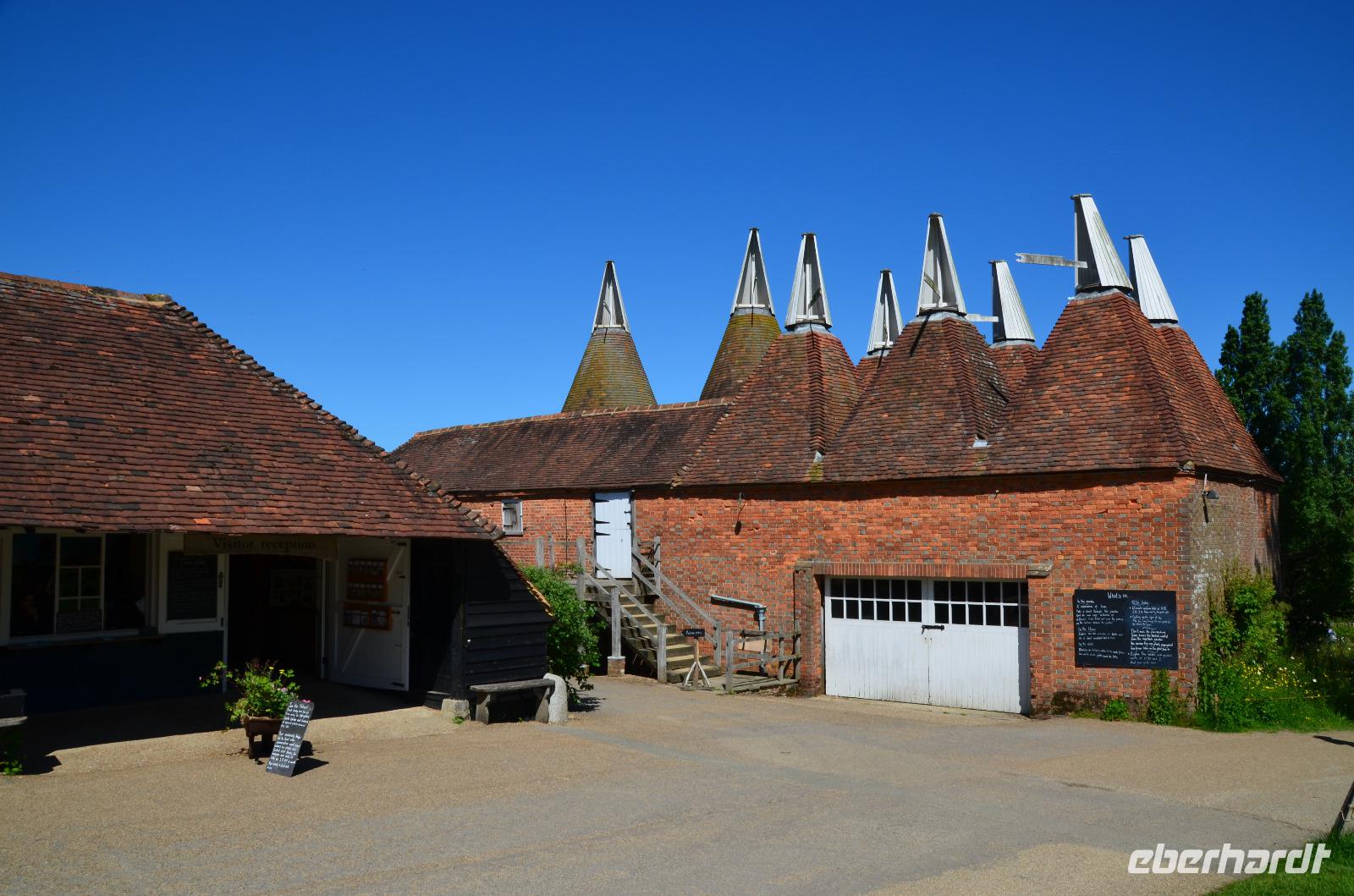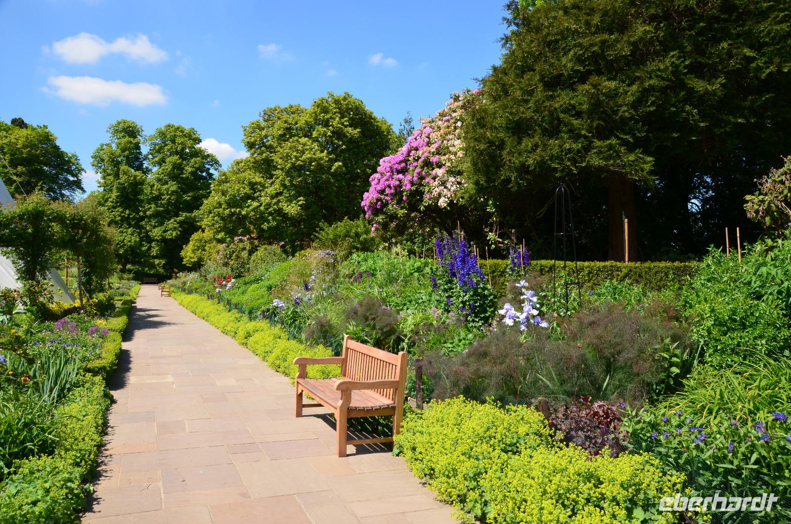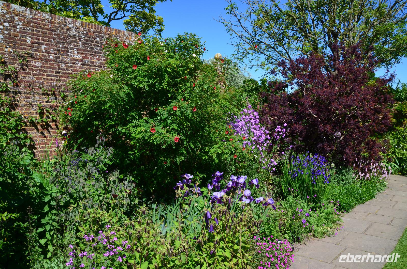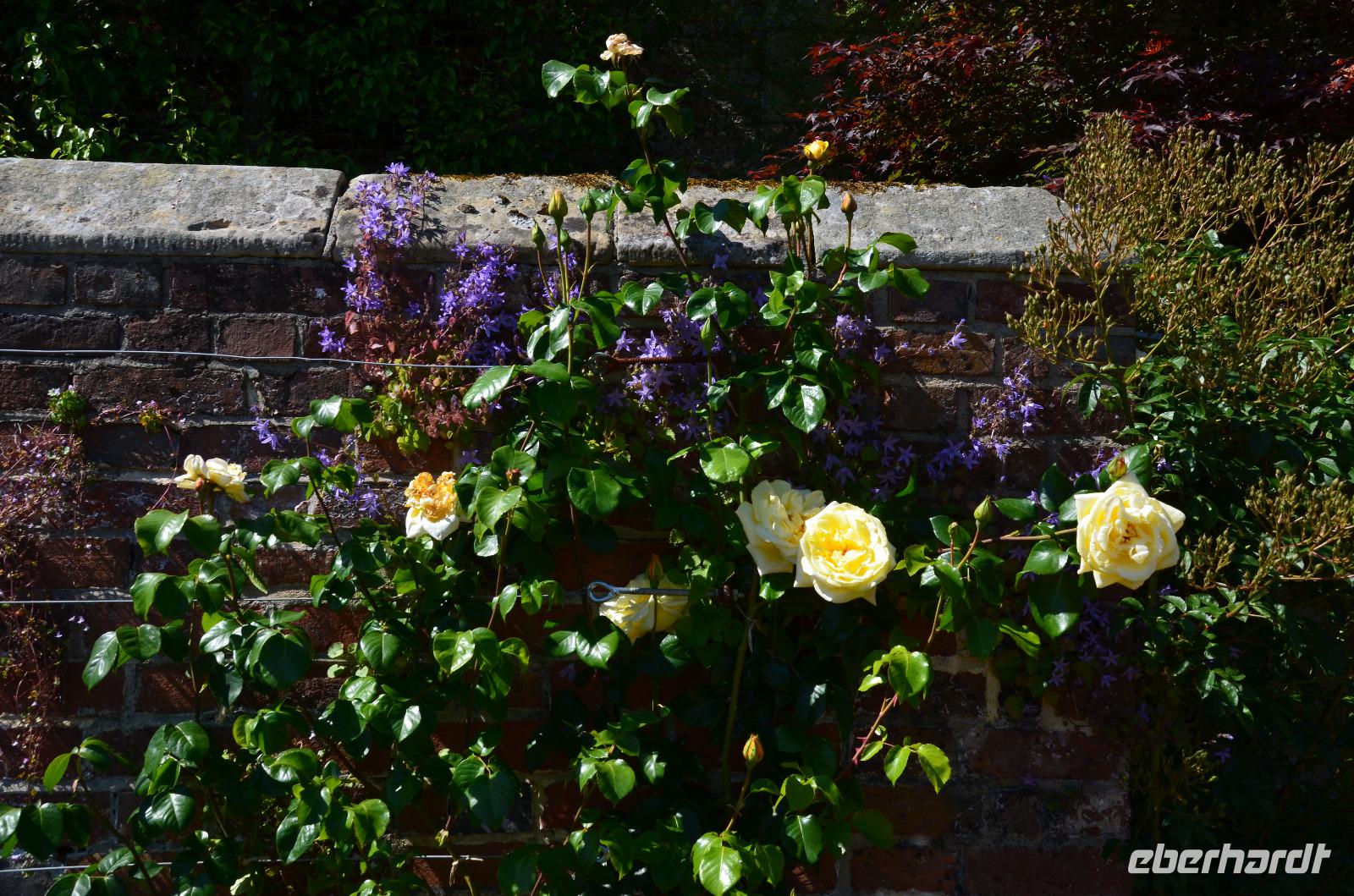 Am Platz der alten Schweinefarm in Sissinghurst erhebt sich ein Doppelturm in Ziegelbauweise über verschiedenen Themengärten, die vor vielen Jahrzehnten von der Autorin Vita Sackville-West und ihrem Ehemann angelegt worden waren. Wir genossen den sonnigen Nachmittag zwischen duftenden Rosen und bunt blühenden Beeten oder verschafften uns einen Überblick über die Anlage vom Aussichtspunkt des Doppelturms aus.