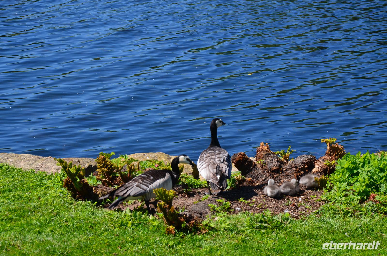 Leeds Castle war unser erster Höhepunkt des Tages. Ein Schloss wie im Märchen, dass sich malerisch aus dem Wasser zu erheben scheint und darin spiegelt. Um die Gebäude herum hat man wunderschöne Garten- und Parkanlagen angelegt. Schwarze Schwäne, Gänse und Blesshühner posierten für uns an den Ufern der Seen in der Anlage. Eiderenten brühteten rings um das Schlossgebäude. Wir genossen dieses wunderschöne Gesamtkunstwerk, um dann am frühen Nachmittag nach Penshurst House und Garden zu fahren.