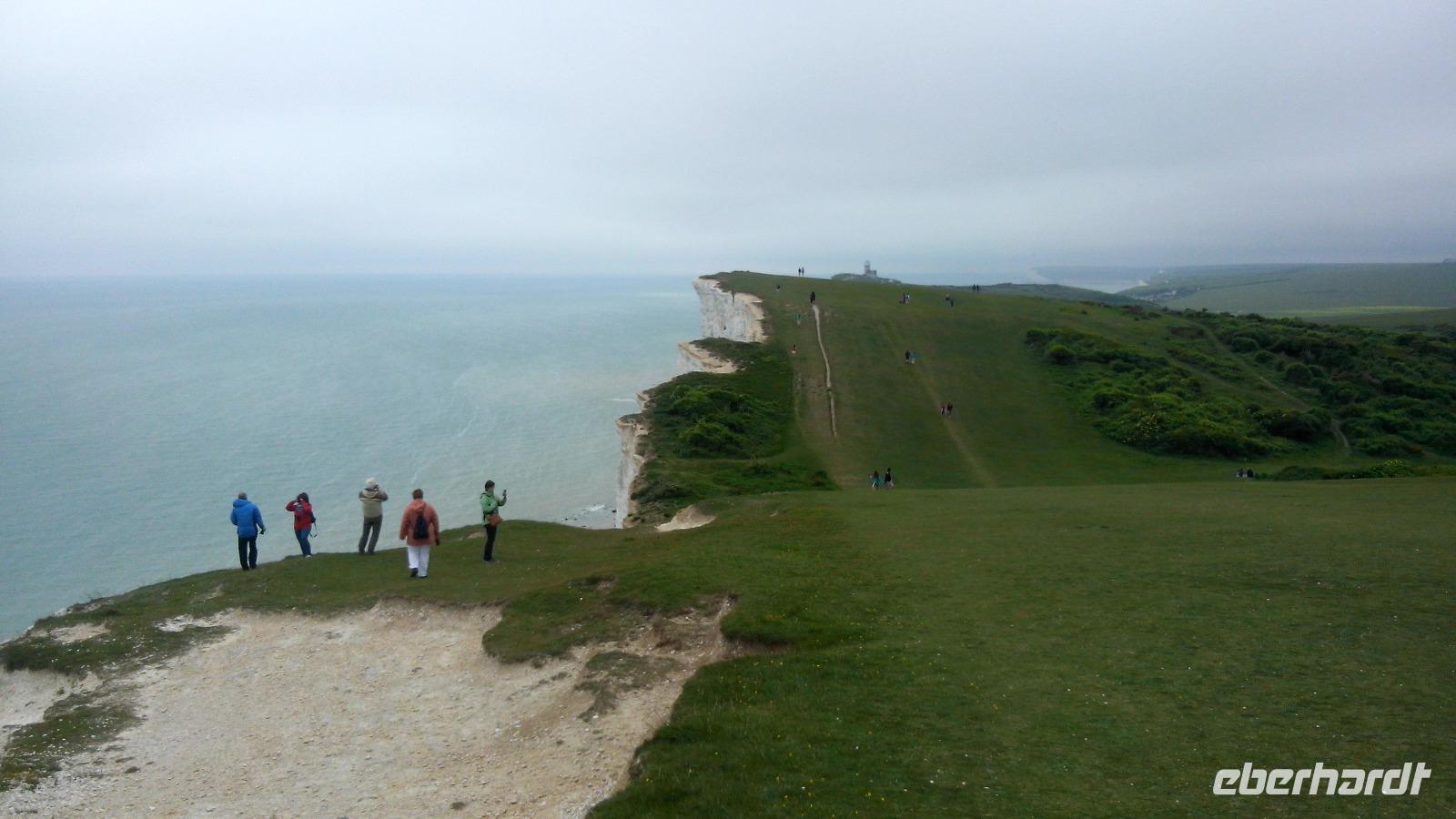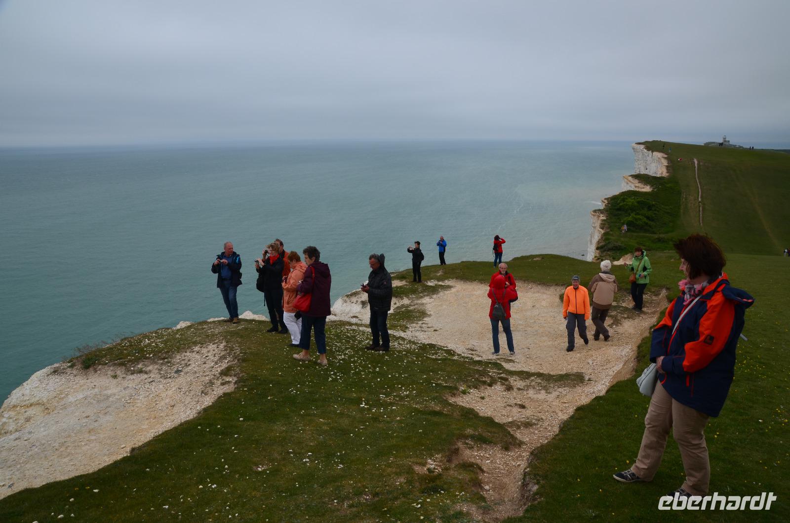 Am frühen Nachmittag trafen wir uns wieder im Bus, um über die Kreidefelsen von Beachy Head zurück zu unserem Hotel in Eastbourn zu fahren. An Birling Gape bestaunten wir die „Seven Sisters" und oben auf der berühmten Landmarke genossen wir die tollen Ausblicke auf die Küste und die Leuchttürme.