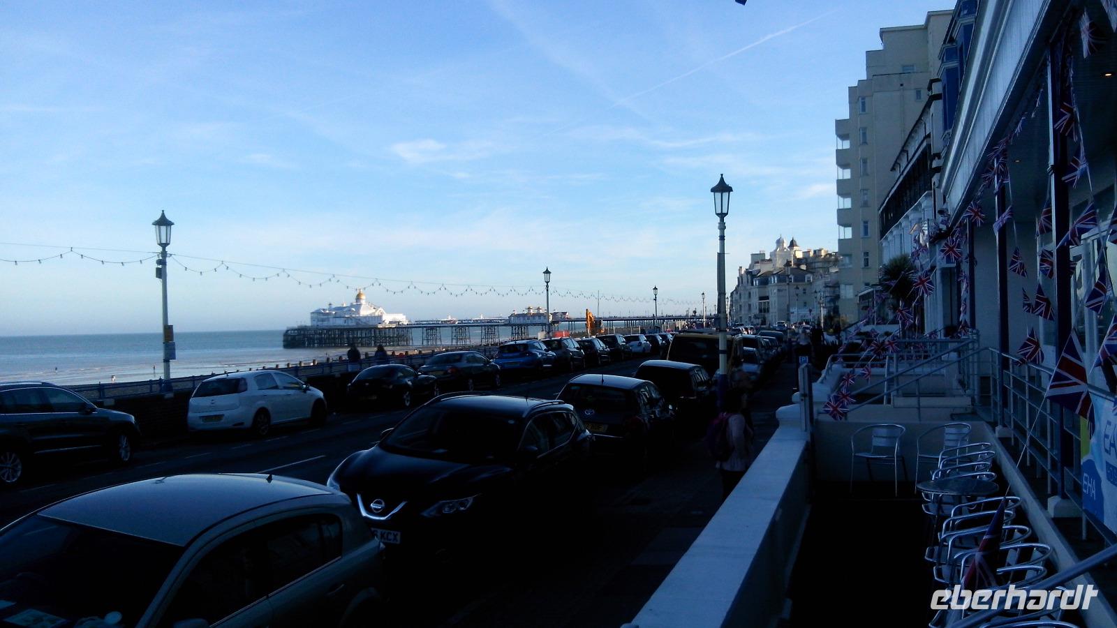 Nach der Tour blieb noch genügend Zeit für einen Spaziergang auf der See-promenade oder durch die lebhaften Gassen und Straßen des abendlichen Eastbourn, das William Cavendish, 7. Duke of Devonshire, im 19. Jahrhundert zum Seebad für Gentleman ausbauen lies.