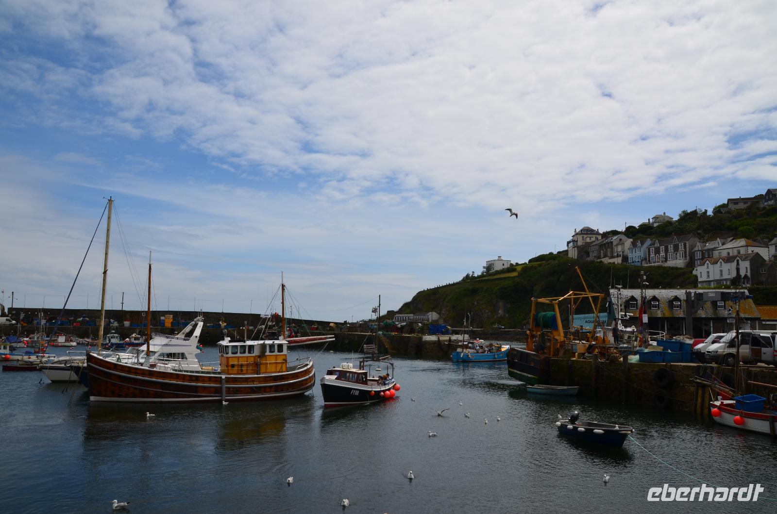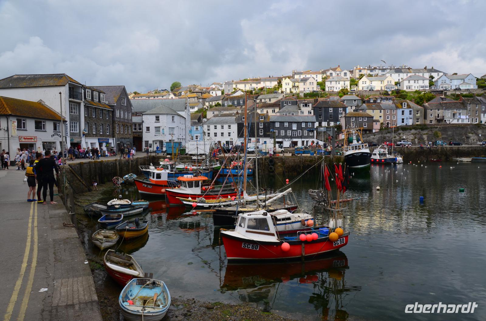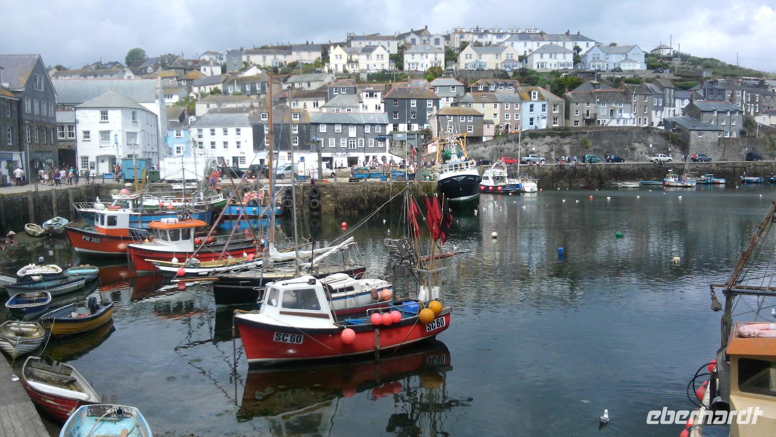 Den Mittag verbringen wir im belebten Fischerörtchen Mevagissey, genießen fast fangfrische Fish & Chips und ein bisschen Rosamunde Pilcher Flair.