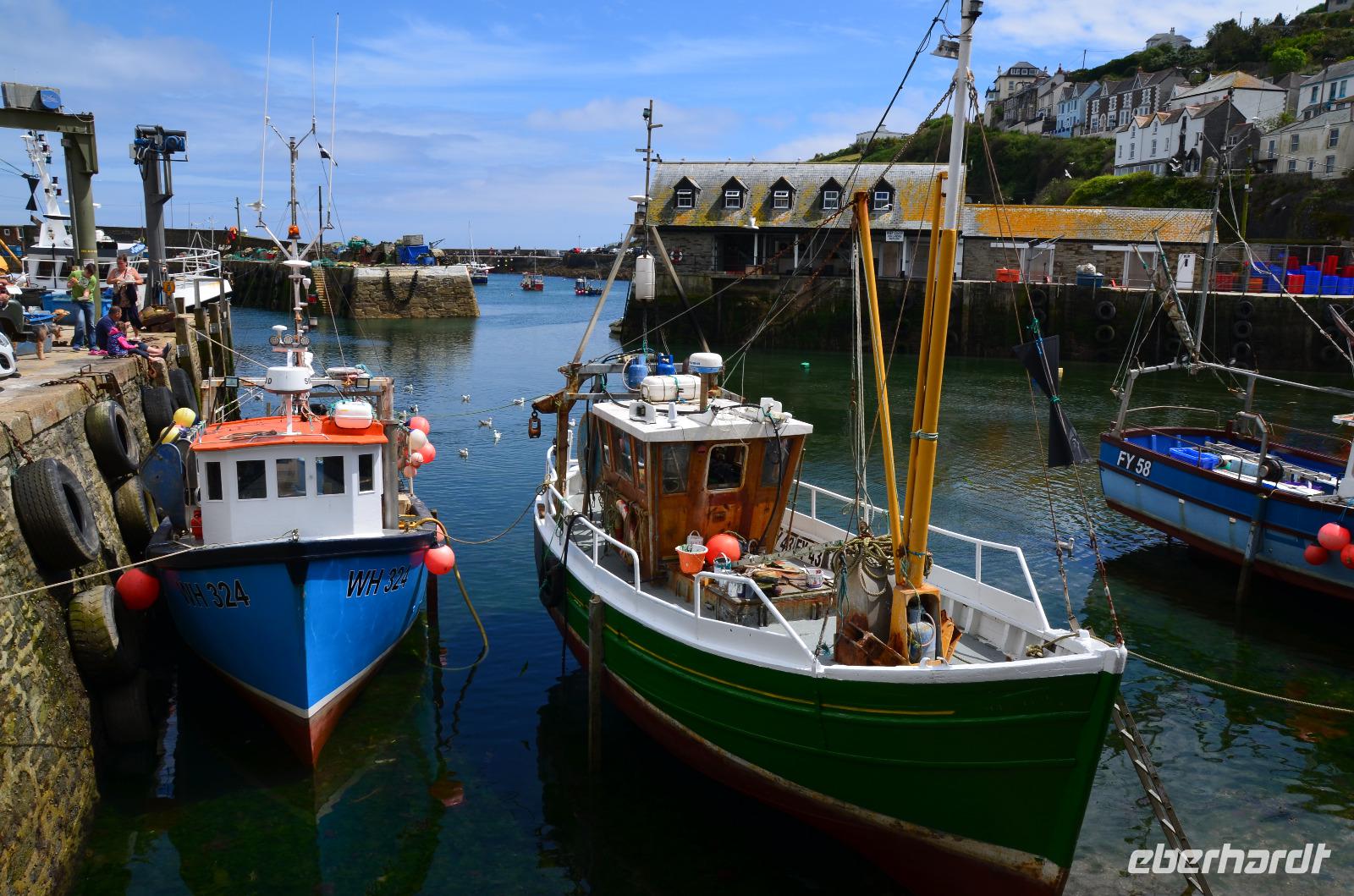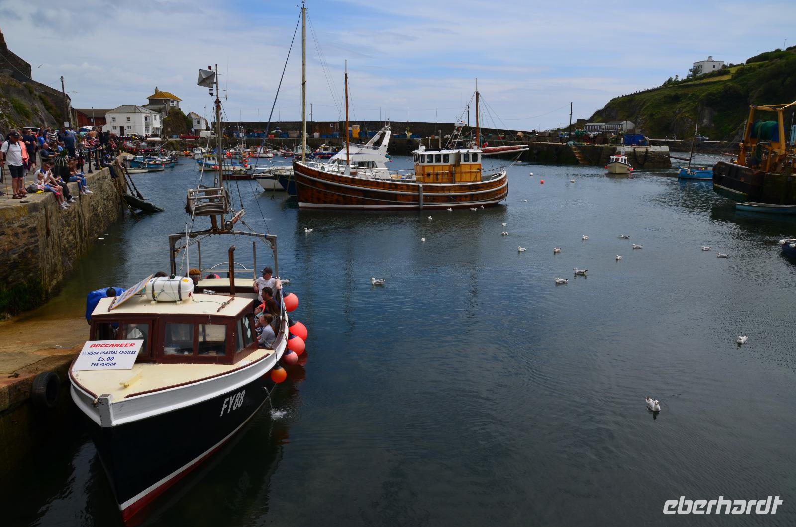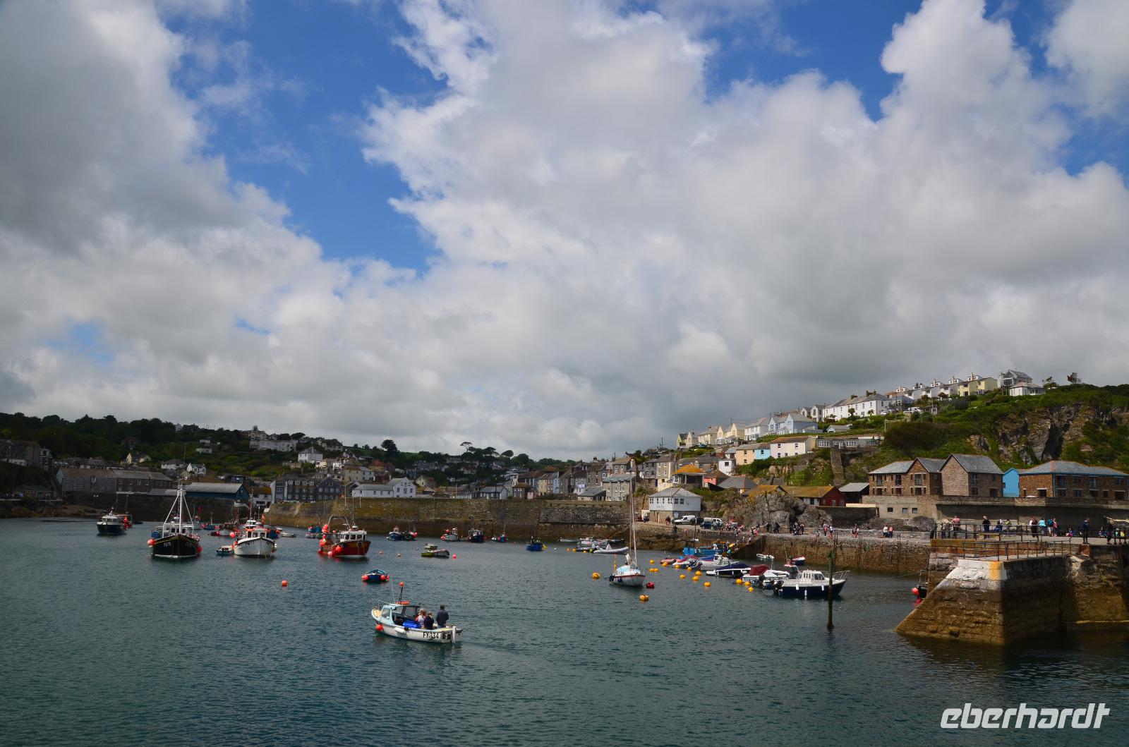 Den Mittag verbringen wir im belebten Fischerörtchen Mevagissey, genießen fast fangfrische Fish & Chips und ein bisschen Rosamunde Pilcher Flair.