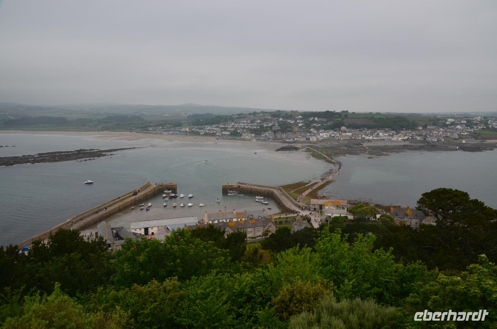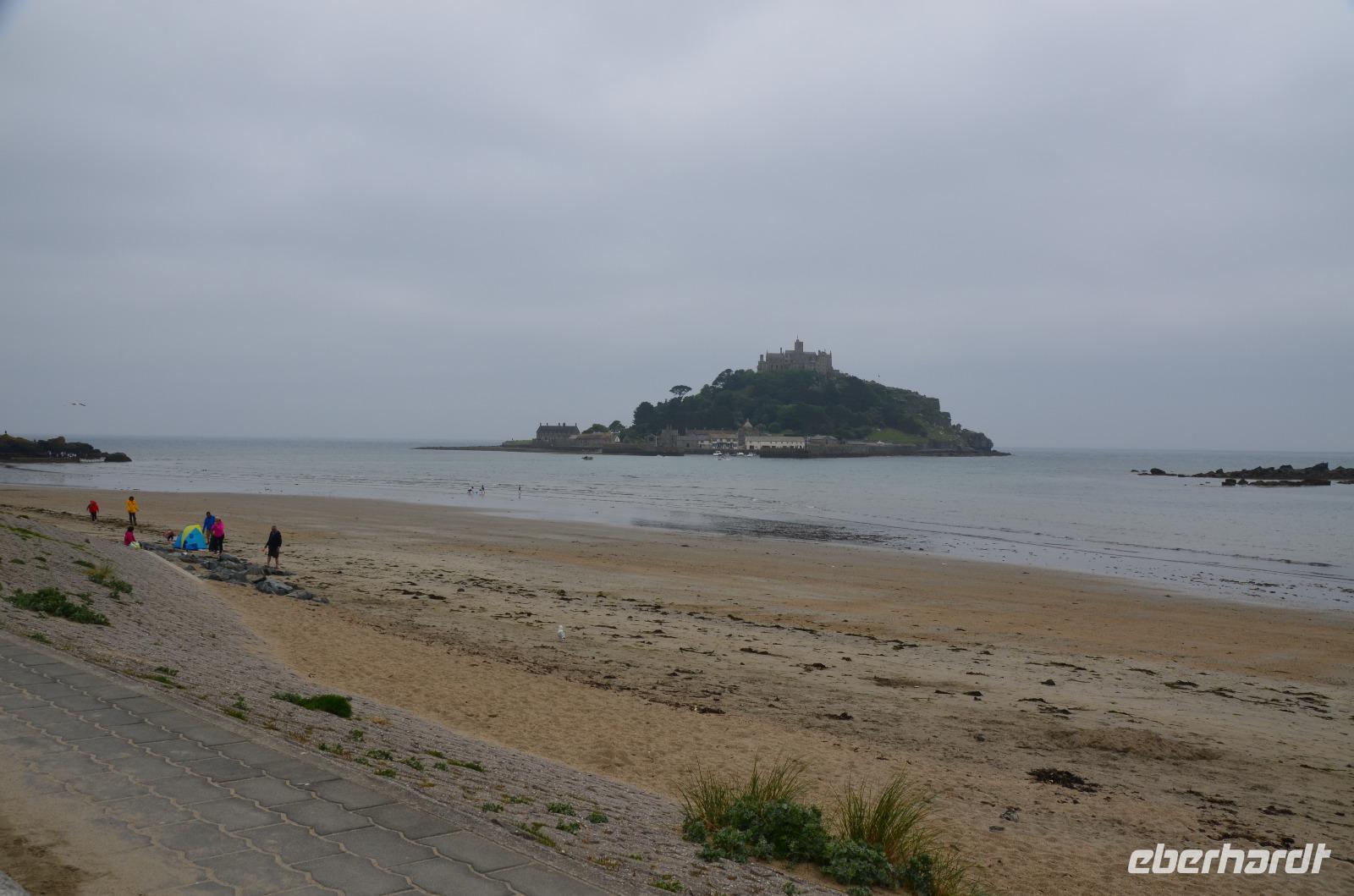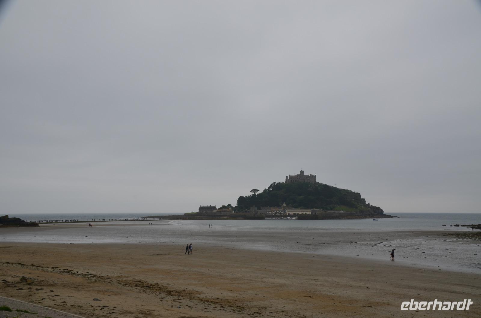 In Marazion, unserem nächsten Halt an der Küste, können wir schon von Weitem den St. Michael's Mount, eine Gezeiteninsel, sehen.
