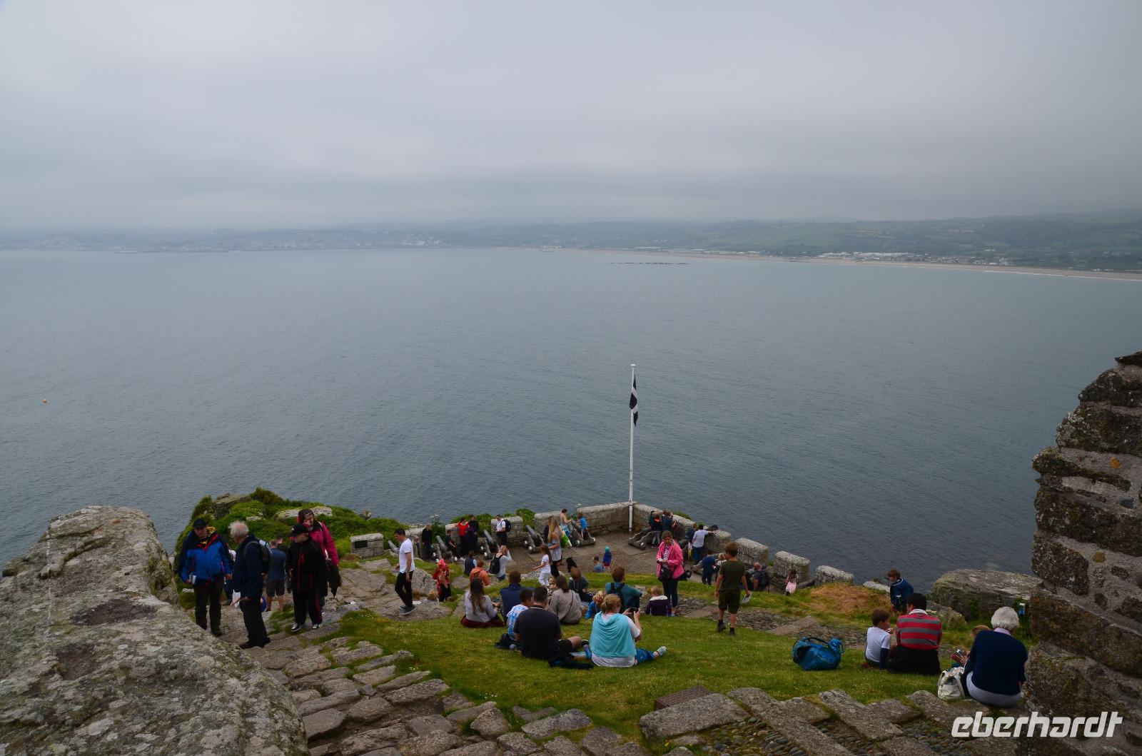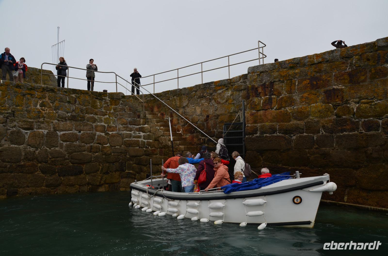 Wir haben es so abgepasst, das zuerst Flut ist und fahren mit Booten hinüber, um das Castle auf dem Hügel zu besichtigen. Zurück konnten wir auf dem Causeway zu Fuß spazieren, denn inzwischen ist Ebbe und das zurückfließende Wasser hat den Weg zum Festland wieder für die nächsten fast 7 Stunden freigegeben.