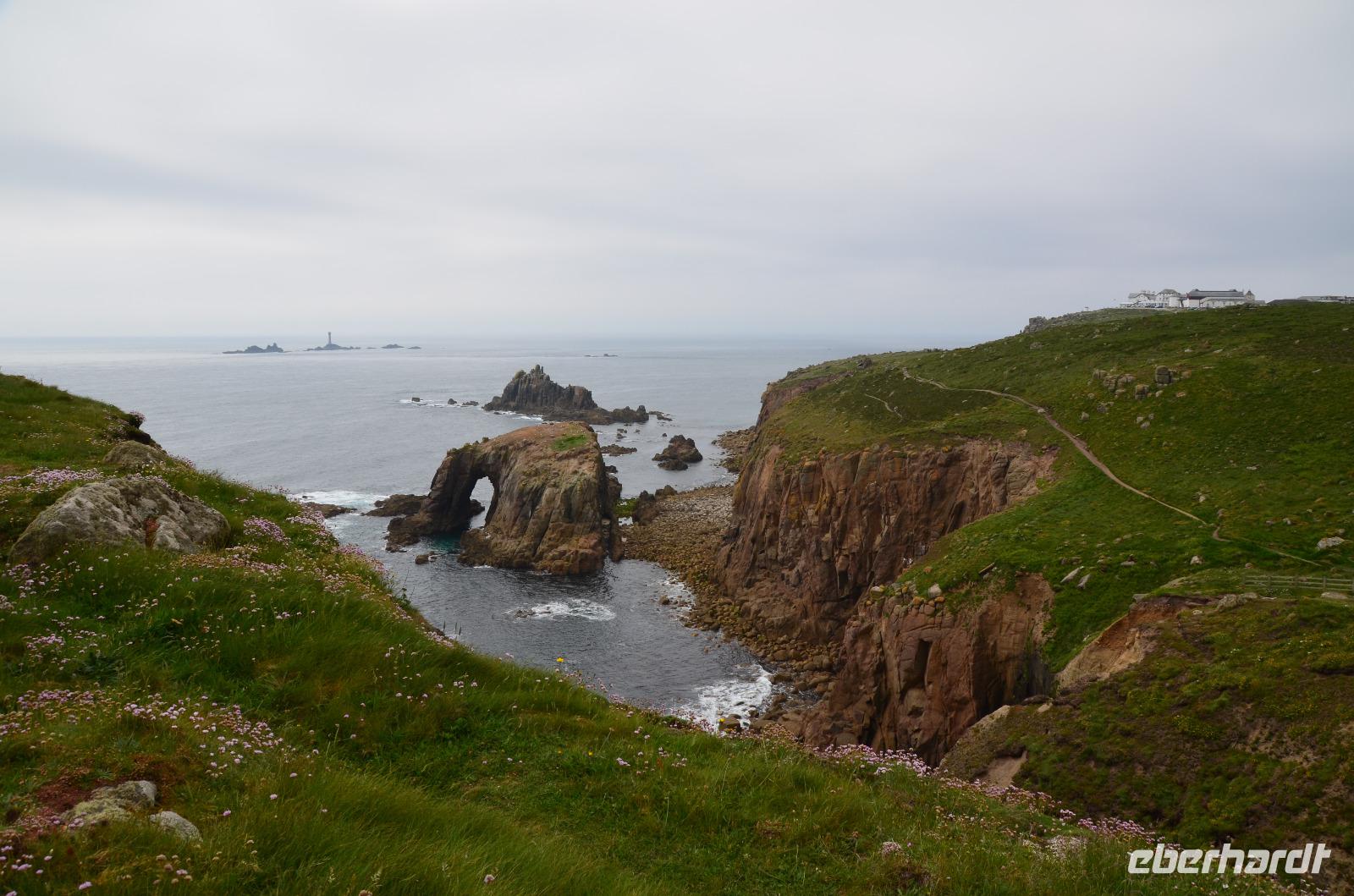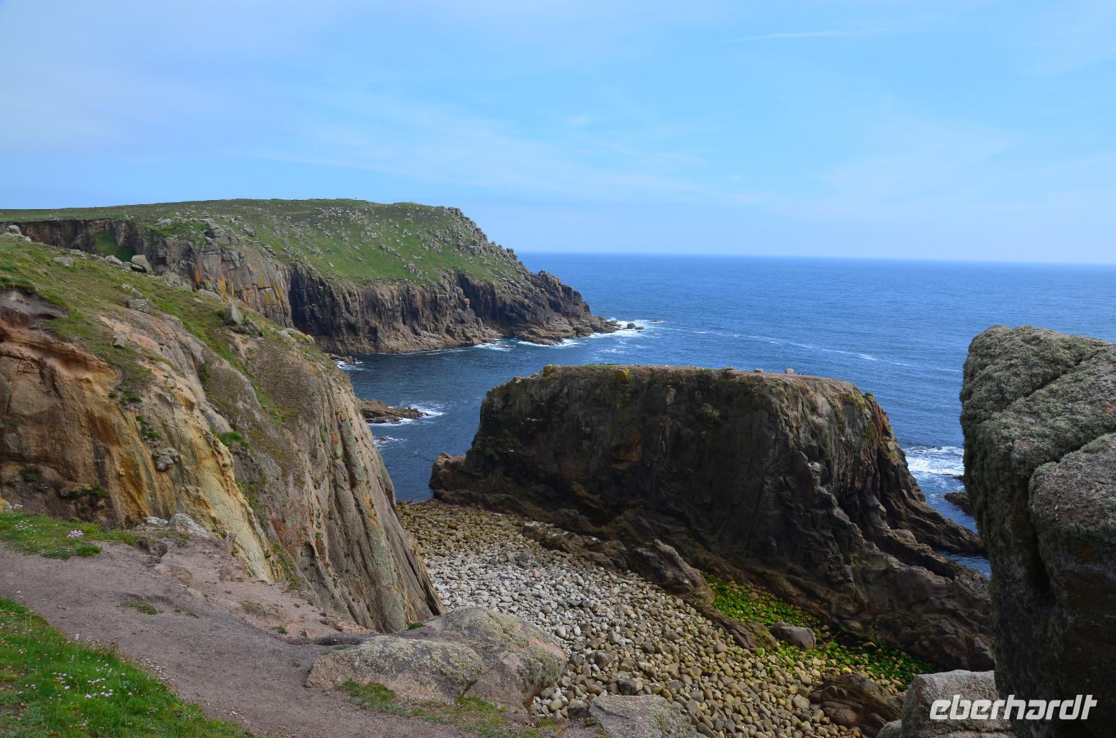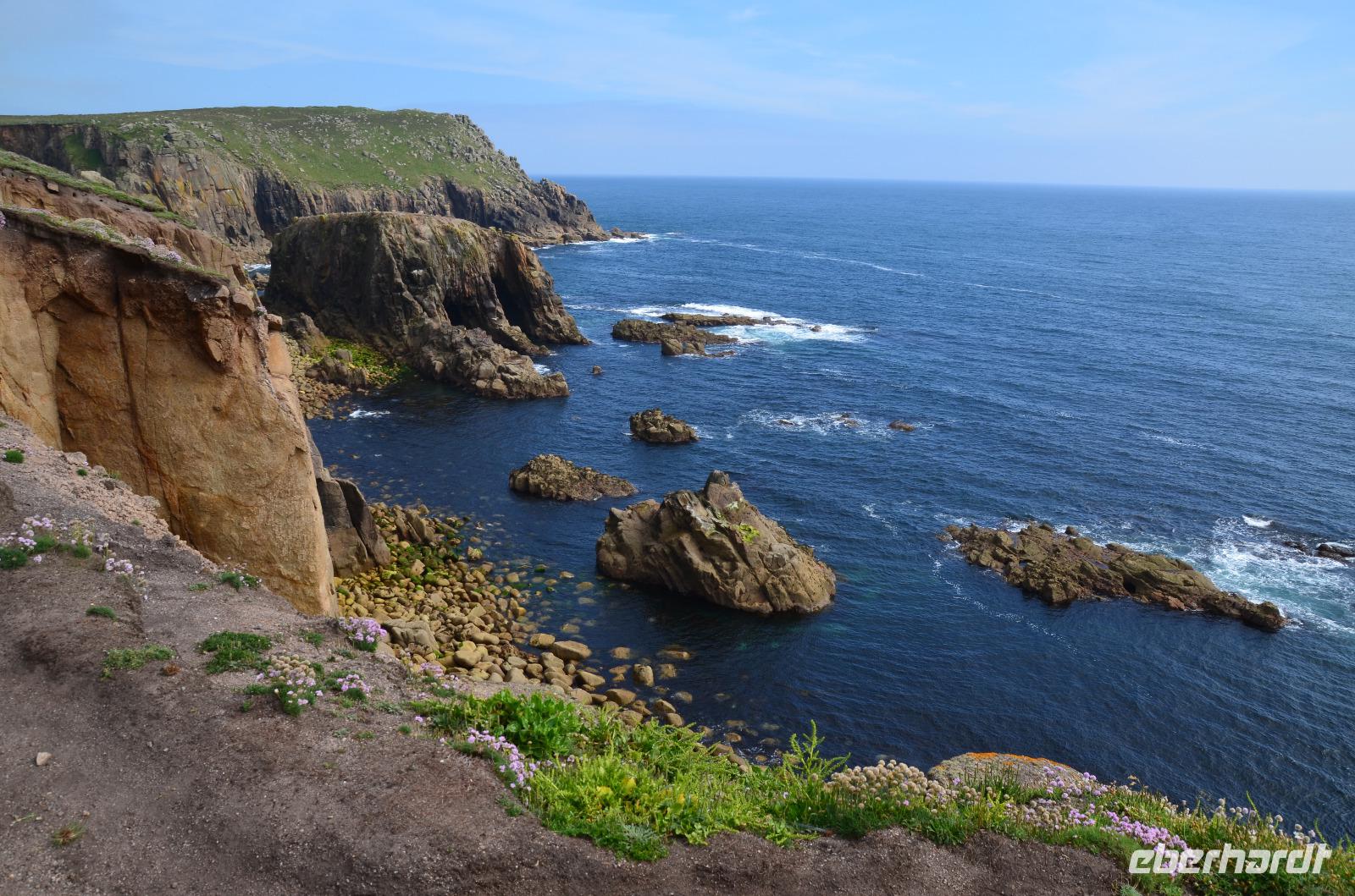 Im Anschluss erreichten wir das westliche Ende der Welt Cornwalls und Englands. Lands End erwartete uns mit wunderschönem Wetter. Wir spazieren zu Aussichtspunkten über den schroffen Klippen, machen zahlreiche Fotos und versuchen im Meer Wale oder Delphine zu entdecken.