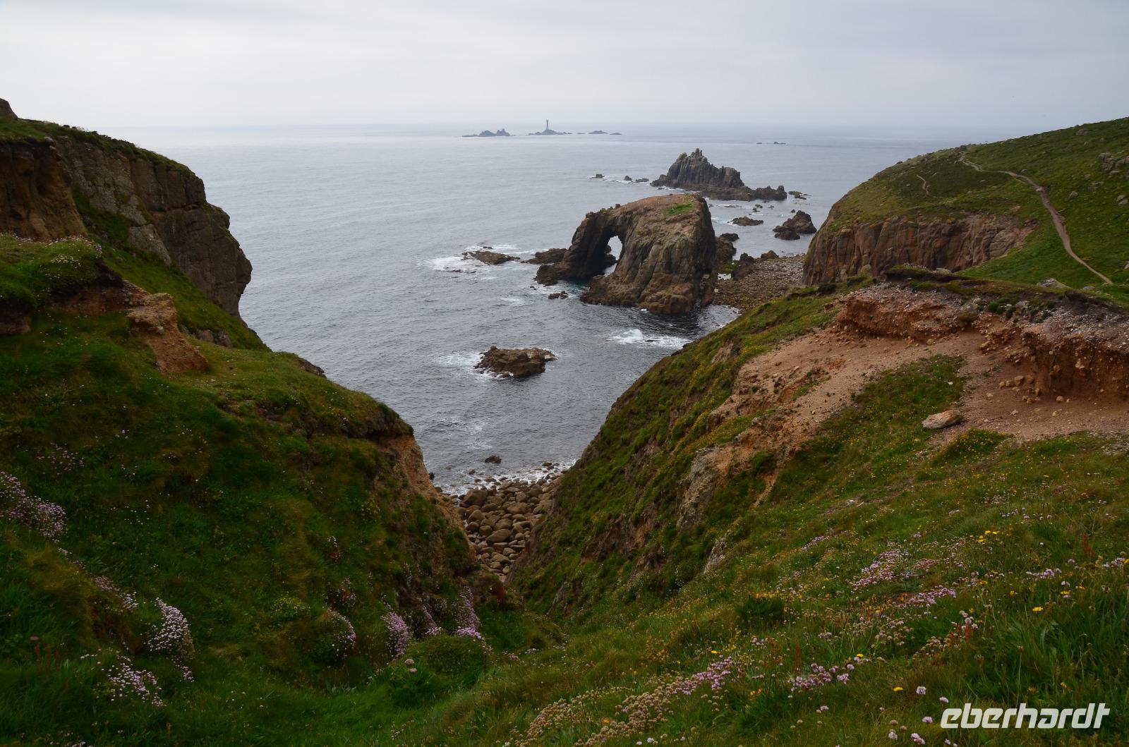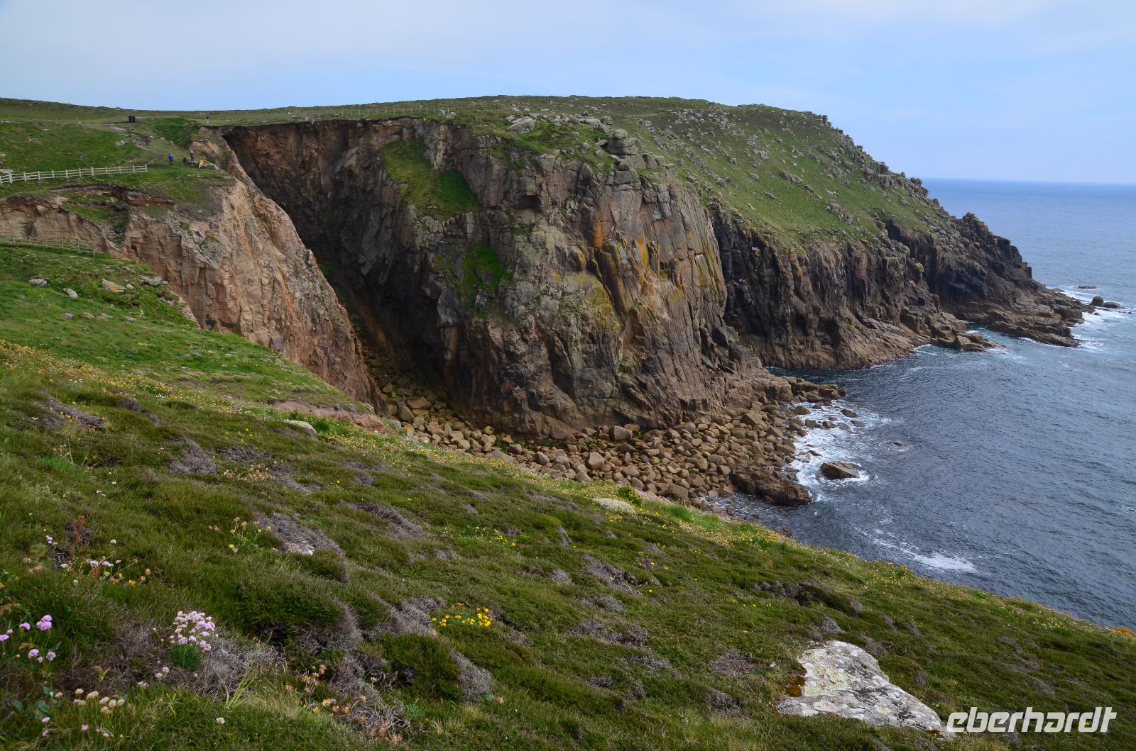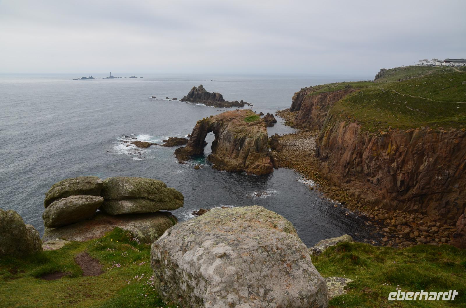 Im Anschluss erreichten wir das westliche Ende der Welt Cornwalls und Englands. Lands End erwartete uns mit wunderschönem Wetter. Wir spazieren zu Aussichtspunkten über den schroffen Klippen, machen zahlreiche Fotos und versuchen im Meer Wale oder Delphine zu entdecken.