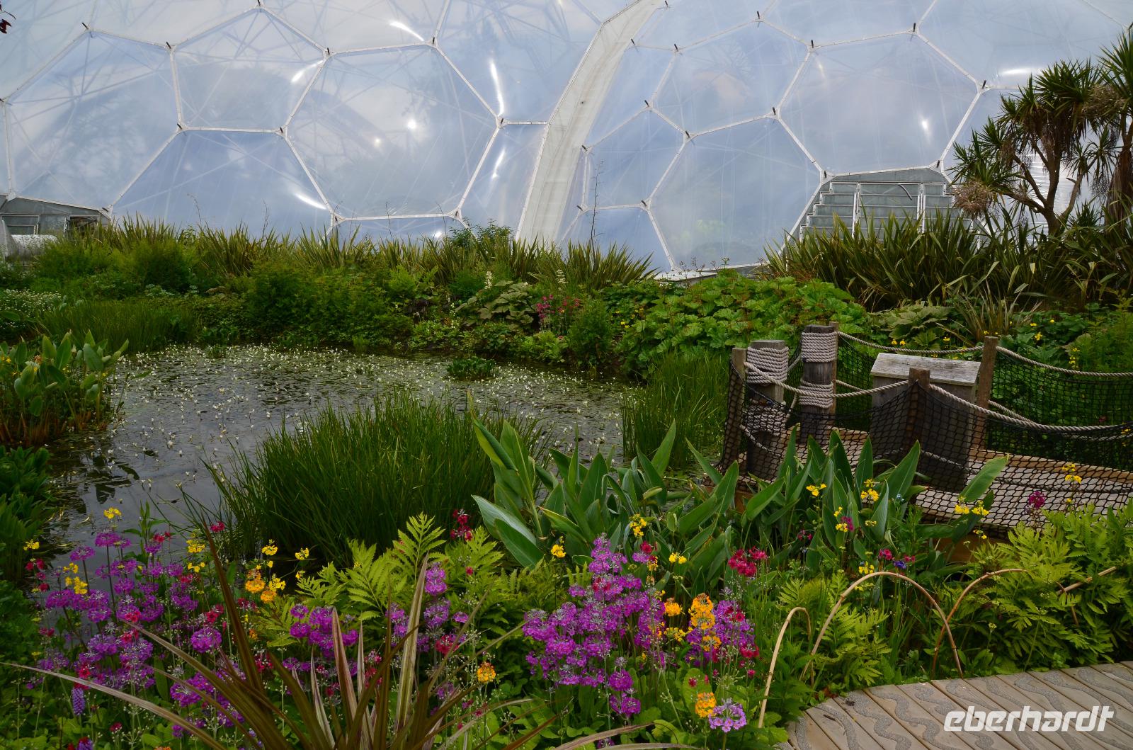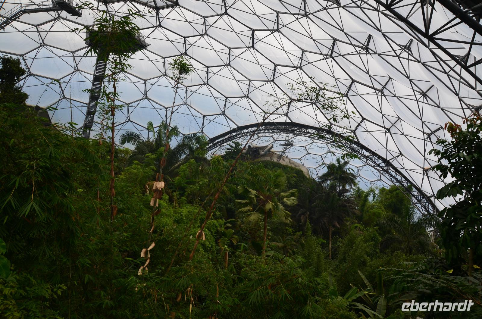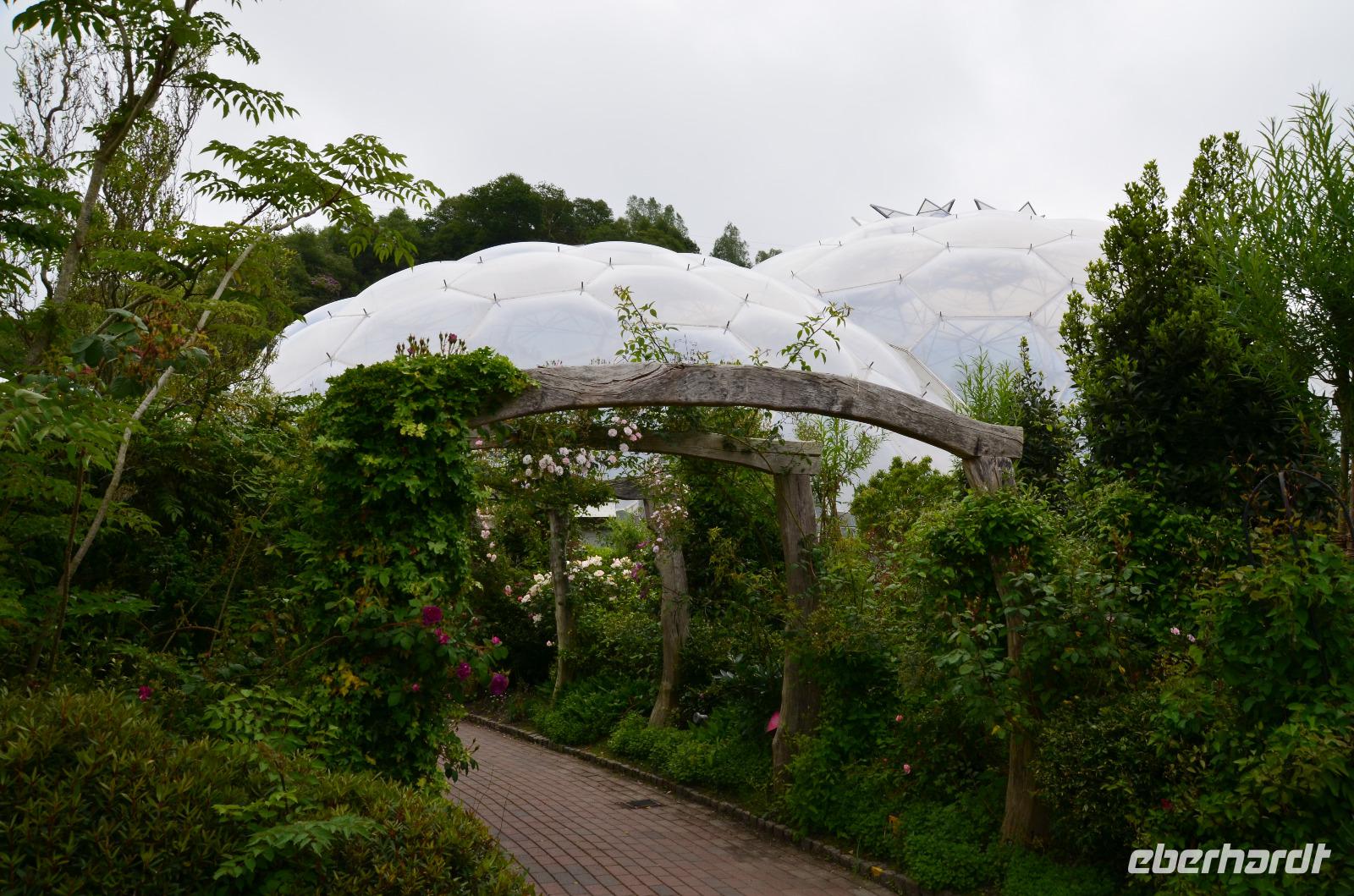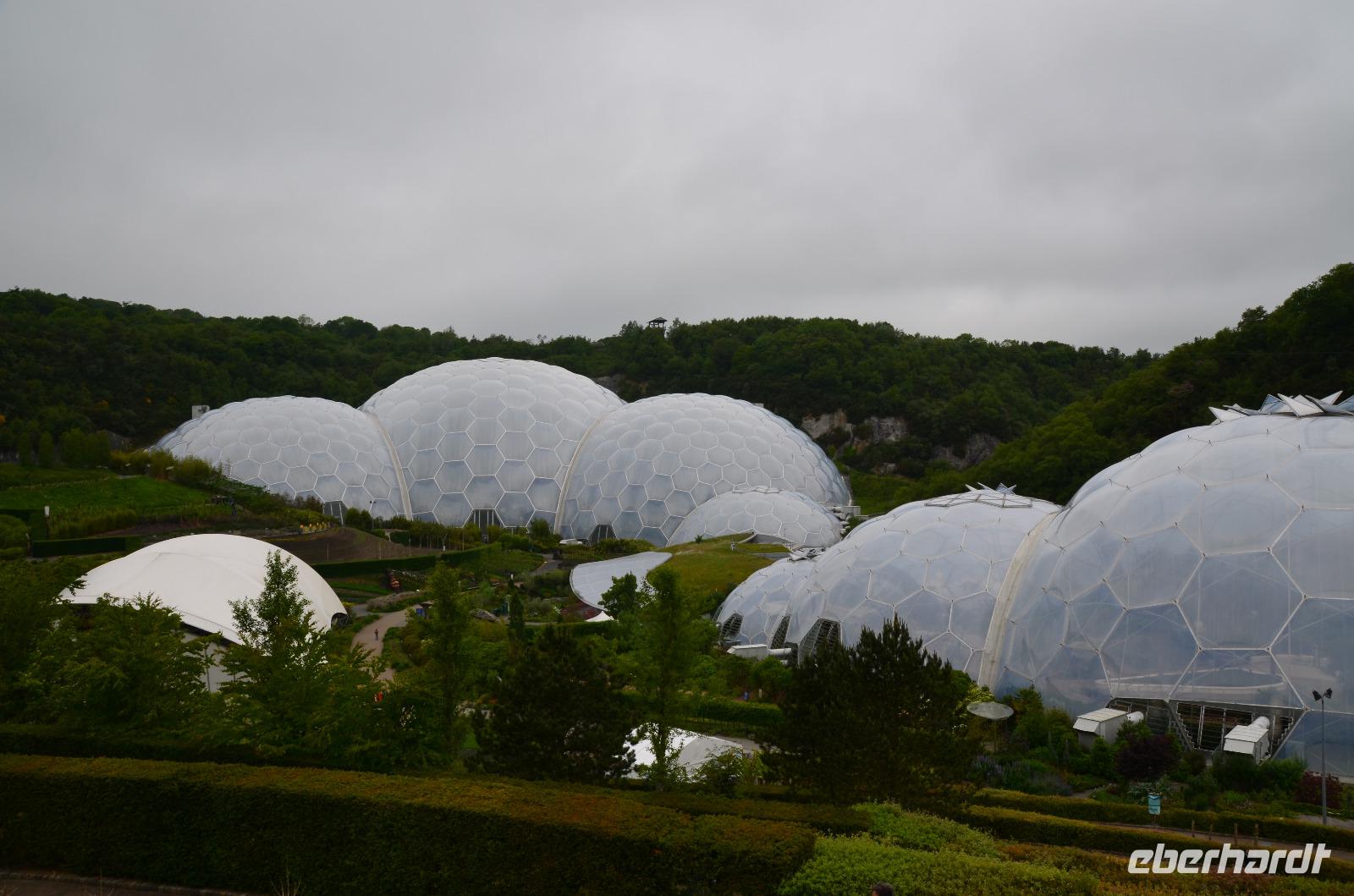 Nicht weit von unserem Hotel entfernt befindet sich Eden Projekt, ein völlig neues Garten- und Naturkonzept. Unter geodätischen Kugeln aus transparenten Folienkissen zwischen Metallgerüsten wachsen in einem künstlichen Dschungel die ausgefallensten Arten und erfreuen uns mit prachtvollen Blüten. Wir können zwischen den Pflanzen über Hängebrücken und vorbei an Wasserfällen wandeln, oder unser Herz-Kreislaufsystem bei einem Aufstieg aufs Aussichtsplateau unter dem Hallendach bei tropischen Temperaturen testen. Die andere Halle simuliert mediterranes Klima. Wir spazieren durch grüne, bunt blühende Oasen, die wir sonst nur aus Italien oder Griechenland kennen. Im Freigelände gibt es herrliche Gemüsegärten und Blumenbeete, alles untersetzt mit zahlreichen Informationen besonders zu Umweltschutz, Klimawandel und dem schützenden Umgang mit der Natur sowie den bedrohten Arten.
