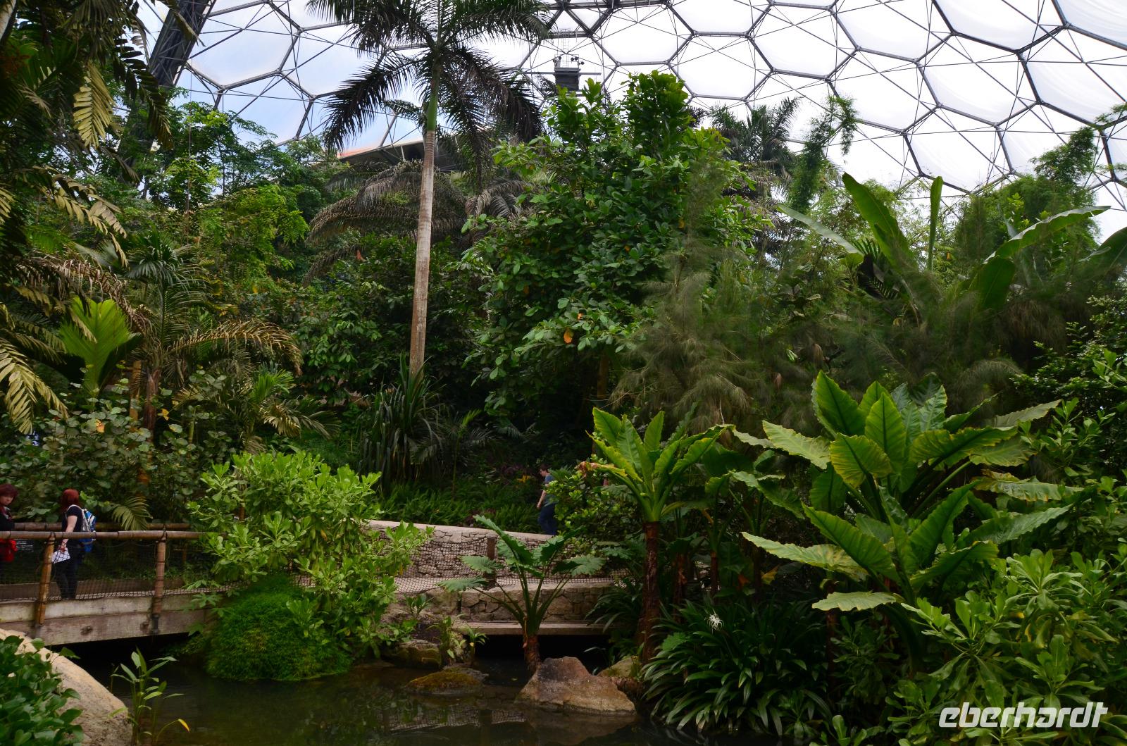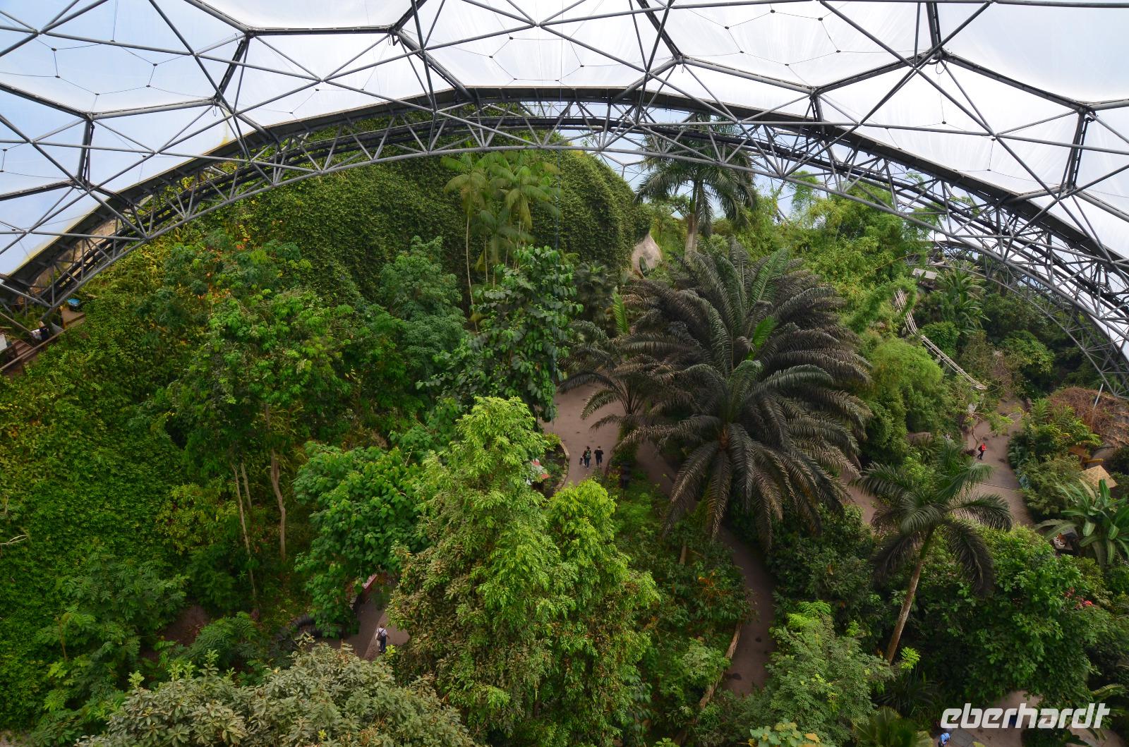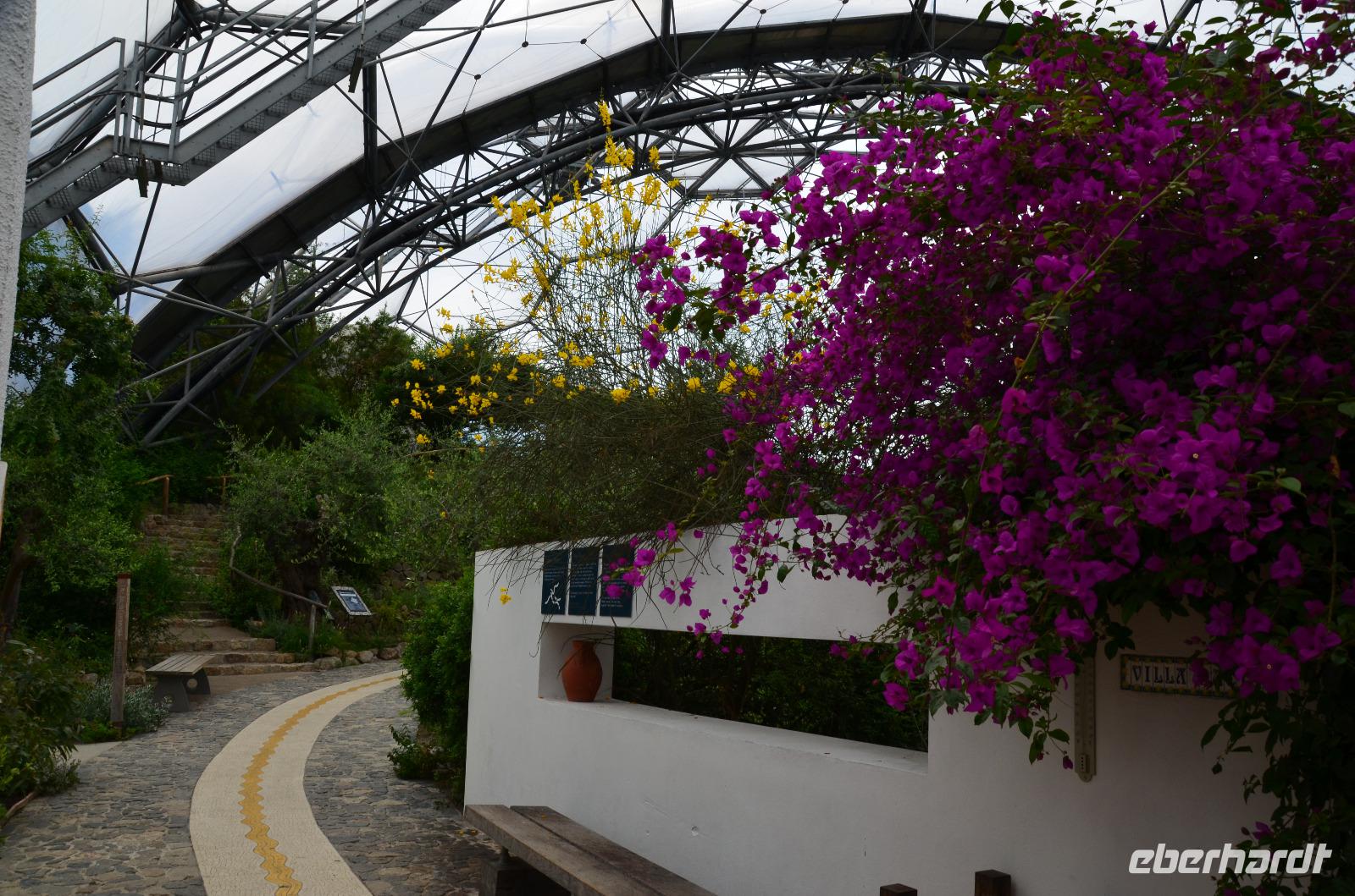 Nicht weit von unserem Hotel entfernt befindet sich Eden Projekt, ein völlig neues Garten- und Naturkonzept. Unter geodätischen Kugeln aus transparenten Folienkissen zwischen Metallgerüsten wachsen in einem künstlichen Dschungel die ausgefallensten Arten und erfreuen uns mit prachtvollen Blüten. Wir können zwischen den Pflanzen über Hängebrücken und vorbei an Wasserfällen wandeln, oder unser Herz-Kreislaufsystem bei einem Aufstieg aufs Aussichtsplateau unter dem Hallendach bei tropischen Temperaturen testen. Die andere Halle simuliert mediterranes Klima. Wir spazieren durch grüne, bunt blühende Oasen, die wir sonst nur aus Italien oder Griechenland kennen. Im Freigelände gibt es herrliche Gemüsegärten und Blumenbeete, alles untersetzt mit zahlreichen Informationen besonders zu Umweltschutz, Klimawandel und dem schützenden Umgang mit der Natur sowie den bedrohten Arten.