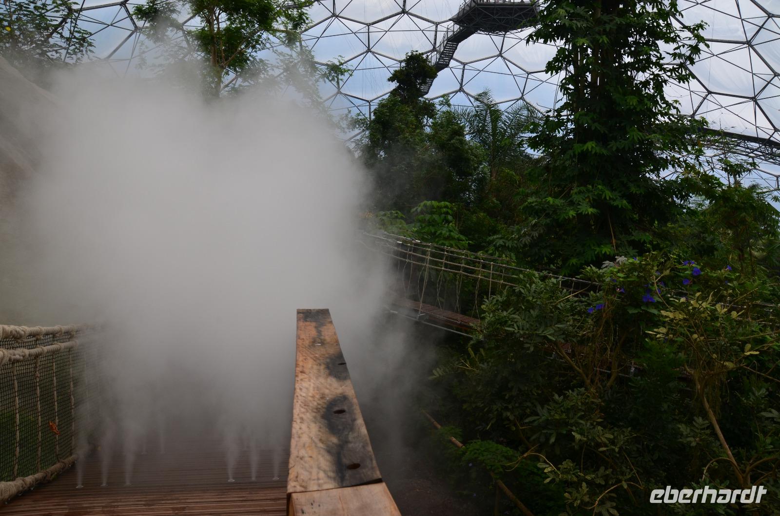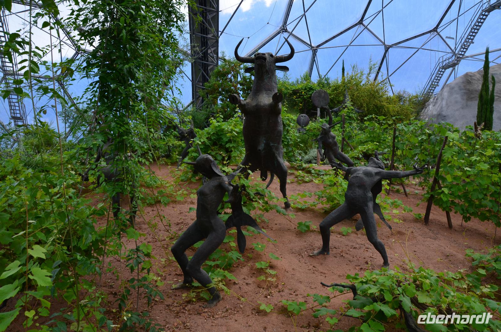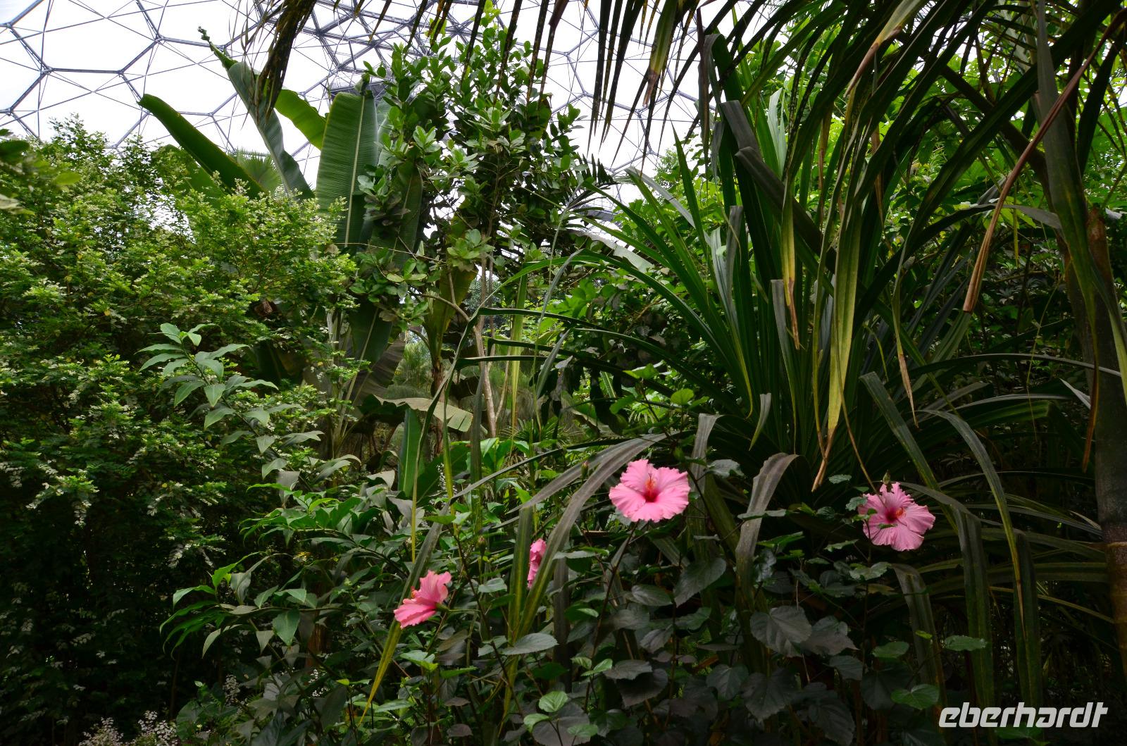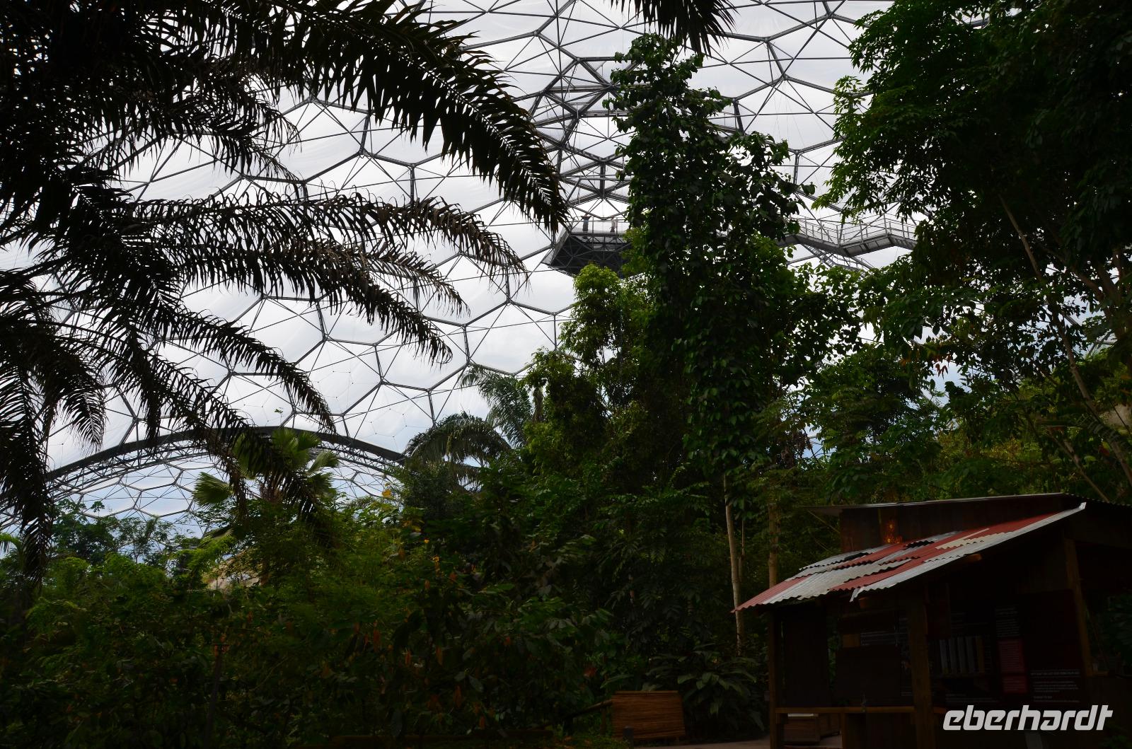 Nicht weit von unserem Hotel entfernt befindet sich Eden Projekt, ein völlig neues Garten- und Naturkonzept. Unter geodätischen Kugeln aus transparenten Folienkissen zwischen Metallgerüsten wachsen in einem künstlichen Dschungel die ausgefallensten Arten und erfreuen uns mit prachtvollen Blüten. Wir können zwischen den Pflanzen über Hängebrücken und vorbei an Wasserfällen wandeln, oder unser Herz-Kreislaufsystem bei einem Aufstieg aufs Aussichtsplateau unter dem Hallendach bei tropischen Temperaturen testen. Die andere Halle simuliert mediterranes Klima. Wir spazieren durch grüne, bunt blühende Oasen, die wir sonst nur aus Italien oder Griechenland kennen. Im Freigelände gibt es herrliche Gemüsegärten und Blumenbeete, alles untersetzt mit zahlreichen Informationen besonders zu Umweltschutz, Klimawandel und dem schützenden Umgang mit der Natur sowie den bedrohten Arten.