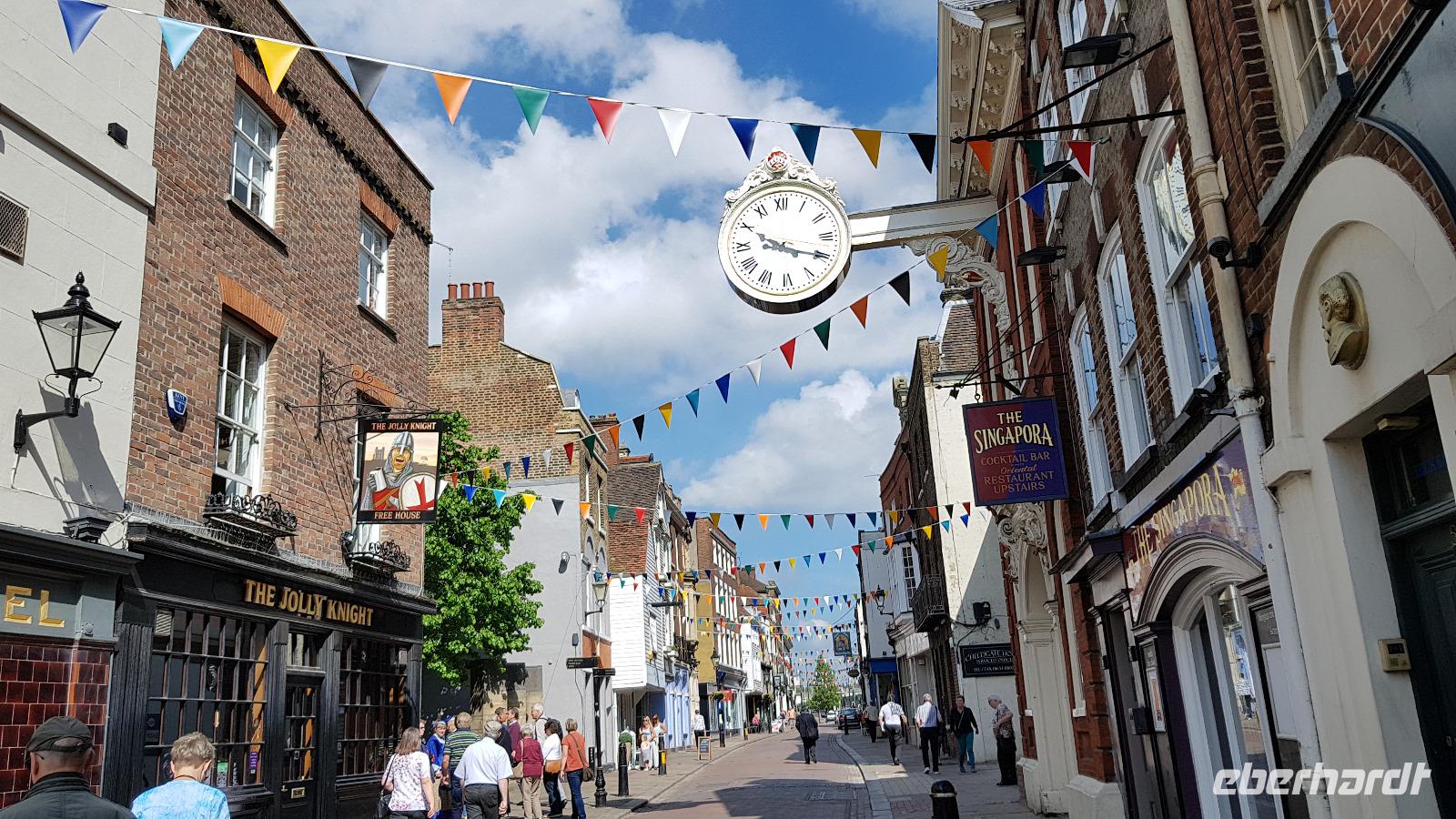 Wir starten heute zeitig, schon 8:00 Uhr geht es los. Unser erstes Ziel ist Windsor Castle. Einer der offiziellen Sitze der königlichen Familie und seit 1917 auch deren Namensgeber: Windsor. Der Name des deutschen Hauses von Sachsen-Coburg-Gotha mußte wegen der Auseinandersetzungen im 1. Weltkrieg geändert werden. Wiederum begegnen wir Wilhlem, dem Eroberer, wie in Rochester ließ er auch hier das Schloss bauen: Windsor Castle. Und auch Heinrich VIII. tritt wieder auf: unter ihm wurde die St. George Kapelle fertiggestellt und hier liegt er auch neben seiner dritten Frau, Jane Seymor, begraben. Wir kommen gerade rechtzeitig an: auf unserem Weg zum Castle können wir die Wachablösung sehen. Den Sicherheits-Check haben wir problemlos passiert und ausgerüstet mit Übersichtsplänen und Audio Guides konnte jeder individuell seine Lieblingsplätze erkunden. Nach dem Mittag verlassen wir das größte und älteste noch bewohnte Schloß der Welt und fahren zum Hever Castle. Mit einem kurzen Zwischenstopp für eine "Harmonie-Pause" und Verpflegung vom Bordservice erreichen wir am frühen Nachmittag Hever Castle. Auf diesem Landsitz der Familie Boleyn wuchs Anne mit ihren Geschwistern auf. Sie wurde die Ehefrau Heinrich VIII, aber nach 3 Jahren Ehe wurden sie und ihr Bruder wegen angeblichen Hochverrats hingerichtet. Nach dem Tod des Vaters fiel das Castle so an Heinrich VIII, der es schließlich seiner geschiedenen Frau Anna von Klewe übereignete. Ausgerüstet mit Übersichtsplänen und Tcket gehen wir auf gemeinsame Entdeckertour. Wir spazieren gemeinsam zum Castle, wo wir die Gemächer besichtigen können. Anfang des letzten Jahrhunderts hatte Wilhelm Waldorf Astor das Castle erworben, es restauriert und mit einem Tudor-Dorf erweitert. Jedes Cottage wurde individuell gestaltet und doch ergeben alle zusammen eine harmonische Einheit. Für die Neuanlage der Gärten verlegte er die Landstraße, korrigierte den Flußlauf des Eden- 800 Arbeiter waren 3 Jahre damit beschäftigt. Sie legten einen künstlichen See an und pflanzten mehr als 500.000 Blumen, Bäume und Sträucher. Wir genießen den Bummel durch diesen Landschaftsgarten und verlassen ihn erst am frühen Abend. Hier haben wir für die Männer unserer Gruppe eine kleine Überraschung, schließlich ist heute ihr Ehrentag: es gibt eine Runde Bier. Dann geht es zu unserem Hotel nach Dartford. Die engen Straßen zwingen uns noch einige Male zur Umkehr oder fahrerischen Höchstleistungen von Jan wenn Fahrzeuge entgegenkamen, so erreichen wir erst am Abend das Hotel und treffen uns nach dem Einchecken gleich zum Abendessen. Das Buffett hatte für jeden etwas dabei und so klang ein langer Tag ruhig aus.