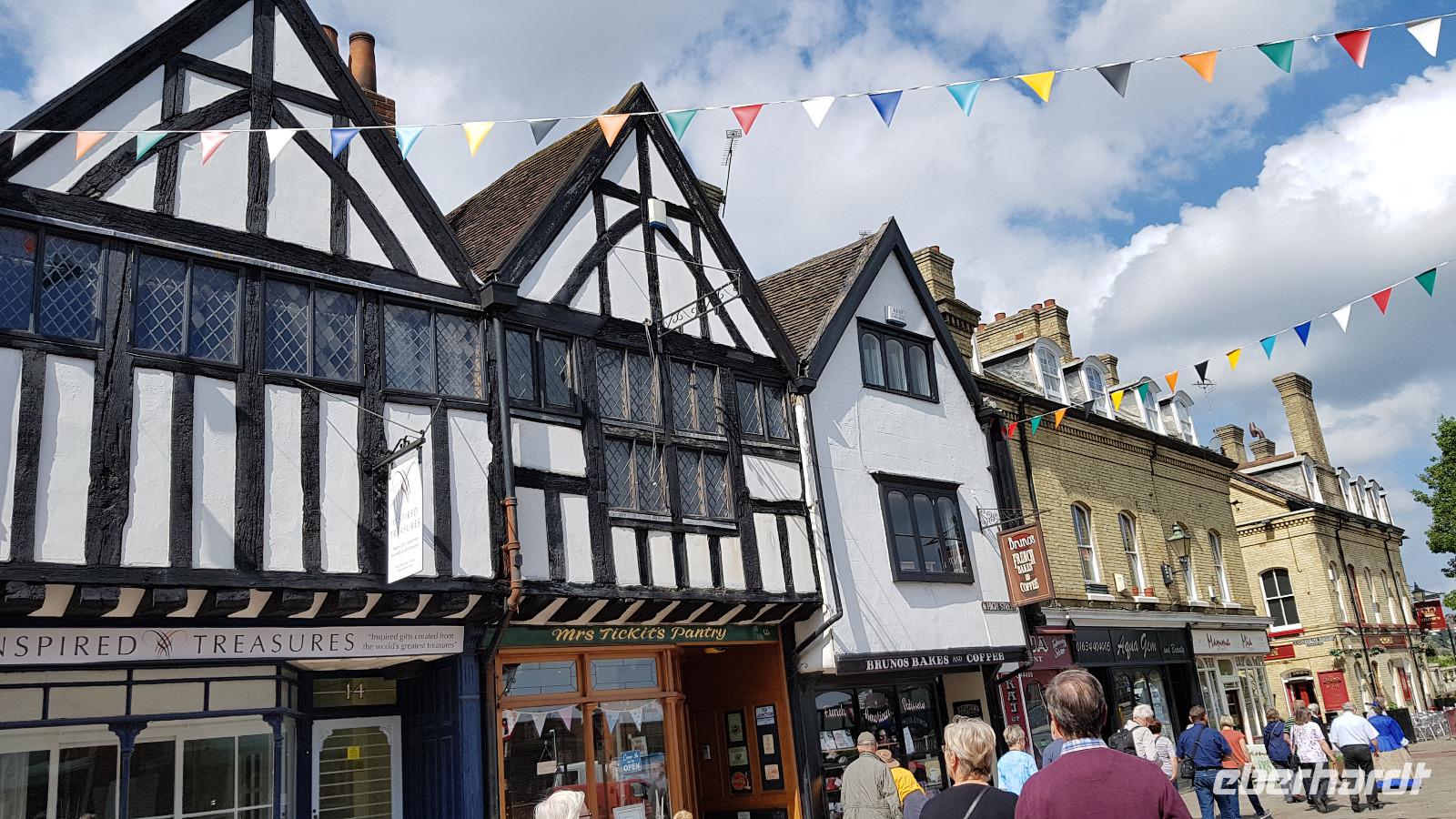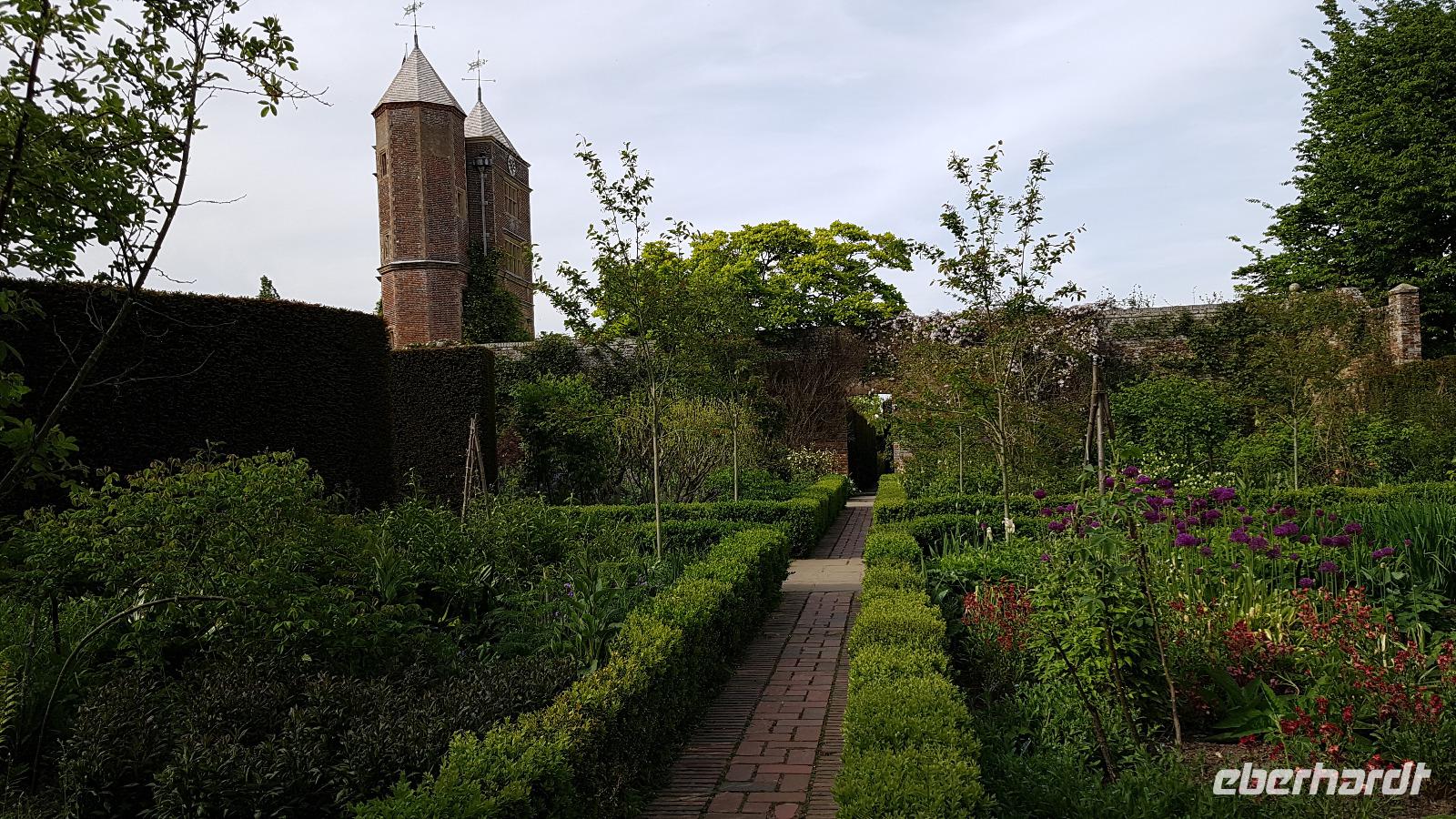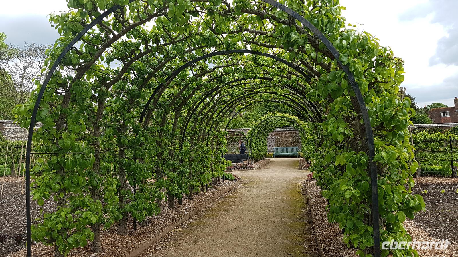 Heute planen wir 3 Gärten zu besuchen. Nach einem leckeren Frühstück starten wir gegen 9 Uhr zum Leeds Castle. Wir kommen ohne Stau durch und müssen noch ein wenig bis zum Öffnen der Tore warten. Dann können wir starten: Schon der erste Ausblick ist wunderschön: ein Kaskadenwasserfall empfängt uns, im Hintergrund das Castle. Da haben die Gartengestalter ganze Arbeit geleistet. Ebenso die vielen Wasservögel hier. Sie präsentieren stolz ihren Nachwuchs. Wir spazieren gemeinsam zum Castle. Es war eine Frau: Olive, Lady Baillie, die gemeinsam mit ihrem Mann die Restaurierung veranlasste, sie füllte das Haus mit Kunst und wertvollen Sammlungen. Dass sie ein Faible für Wasservögel hatte ist nicht zu übersehen. Dann können wir uns im Park umsehen, entdecken Aragon, einen Drachen auf einem gekürzten Baum und genießen die Weite und das Plätschern des Wassers. Die Wasserläufe wurden absichtlich so gestaltet, dass sie mal flüstern, mal laut über Steinbrocken tosen und dann wieder sanft vor sich hin zu murmeln. Dann geht unsere Reise weiter: Penshurst Place in der Grafschaft Kent erwartet uns. Wohl bekanntester Besitzer war die Familie von Sir Philip Sidney, am Hofe Elisabeth I. galt er als Inbegriff eines Höflings, Soldaten, Poeten und Gelehrten. Seine Familie besaß das Anwesen mehrere Jahrhunderte lang. Heute sind Teile des Hauses und des Gartens öffentlich zugänglich. Wir schlendern durch die Gärten, abgetrennt voneinander durch mannshohe Hecken, genießen die sich ergebenden Sichtachsen und können auf den vielen möglichen Sitzgelegenheiten ausruhen. Manch einer stärkt sich im Cafe denn wir haben noch einiges vor. Sissinghurst Castle und Gardens möchte entdeckt werden- und wir werden nicht enttäuscht. Viele Ortsnamen enden hier auf „hurst"- das steht für Wald und ist ein Beleg dafür, dass die Gegend früher dicht bewaldet war. Mit der späteren landwirtschaftlichen Nutzung kam auch der Anbau des Hopfens dazu, eine der typischen Hopfendarren können wir gleich am Eingang zu Sissinghurst Castle und Gardens anschauen. Dann geht es durch den Torbogen zum Doppelturm und viele lassen sich die Gelegenheit nicht entgehen, den Turm hinaufzusteigen und in 20 Metern Höhe den Blick über die Gärten und das weite Land schweifen zu lassen. Wieder war es maßgeblich eine Frau: Vita Sackville-West legte mit ihrem Ehemann Harold Nicholson die Gärten an und restaurierte das Anwesen. Wir bestaunen die 10 Gärten, zum Teil ummauert, teilweise in ganz bestimmten Farben gehalten. Er war für die klaren Linien zuständig, sie für die üppigen Farben und Formen. Ihr Kräutergarten soll mehr als 100 Sorten beherbergt haben und man sagt, dass sie alle mit geschlossenen Augen am Geruch erkennen konnte. Wir sind völlig begeistert und treten am späten Nachmittag unsere Fahrt zum Hotel an. Es geht an die Südküste nach Eastbourne.