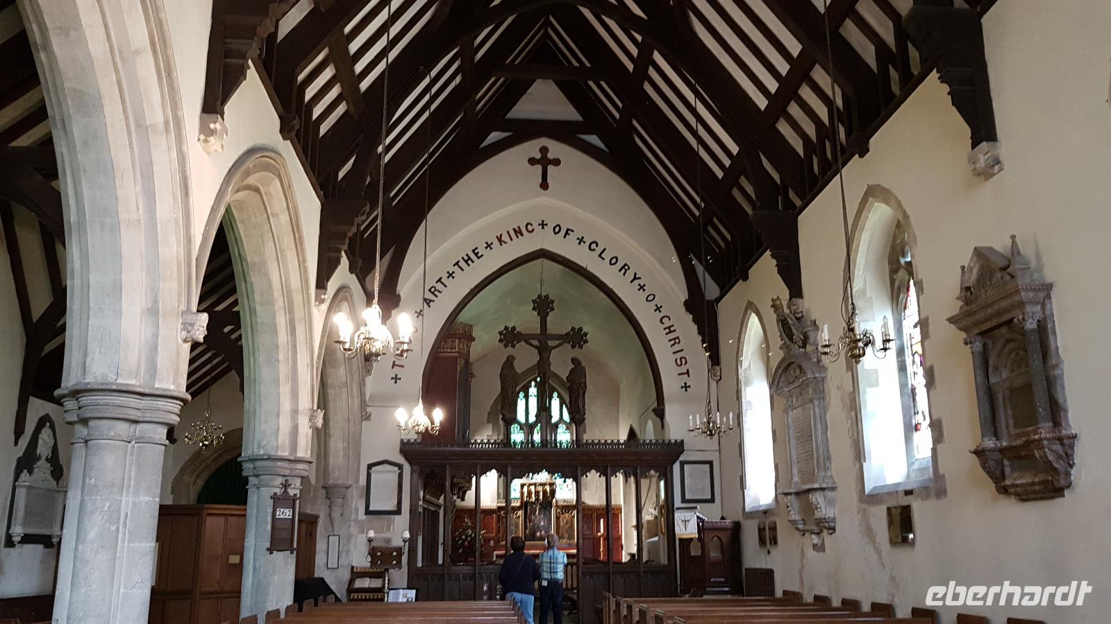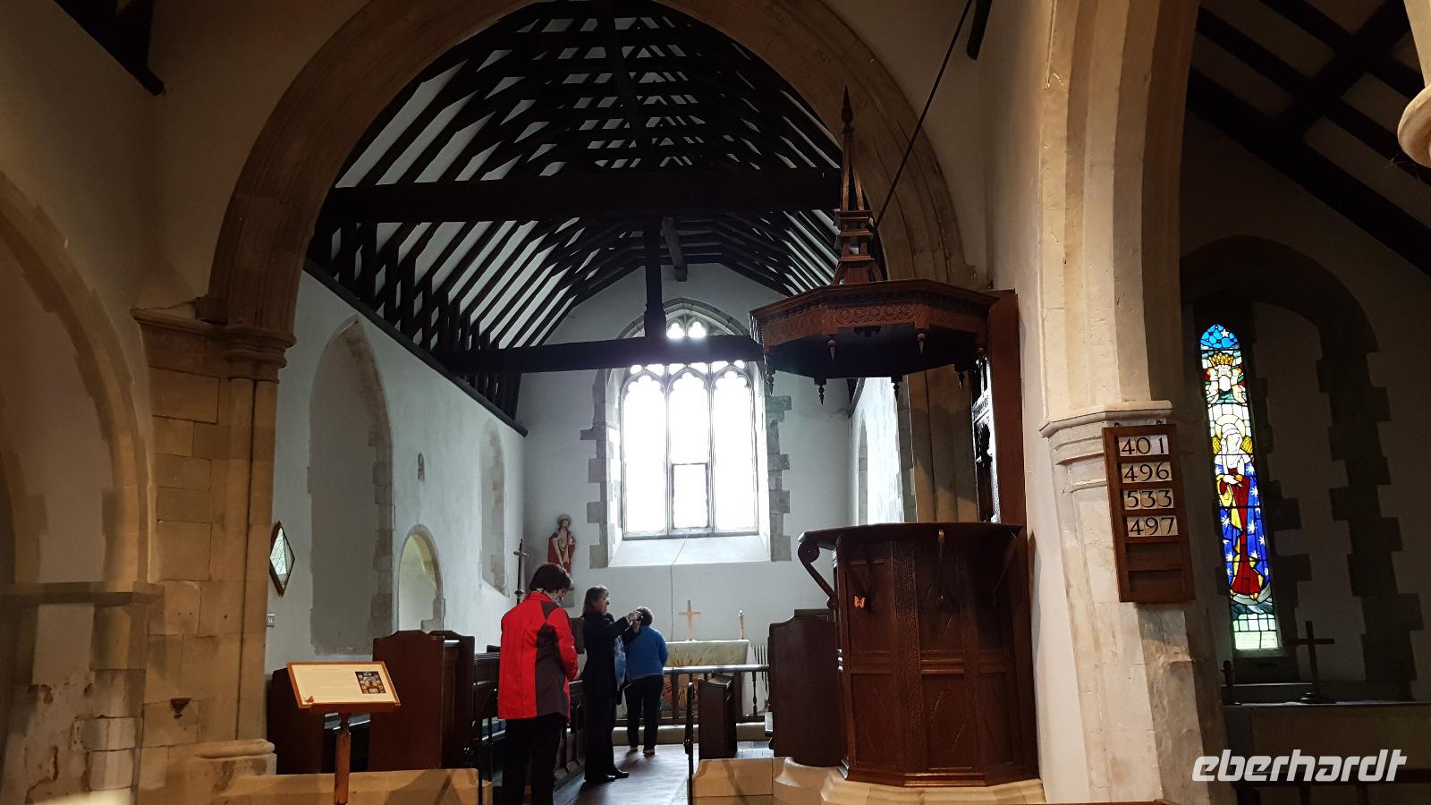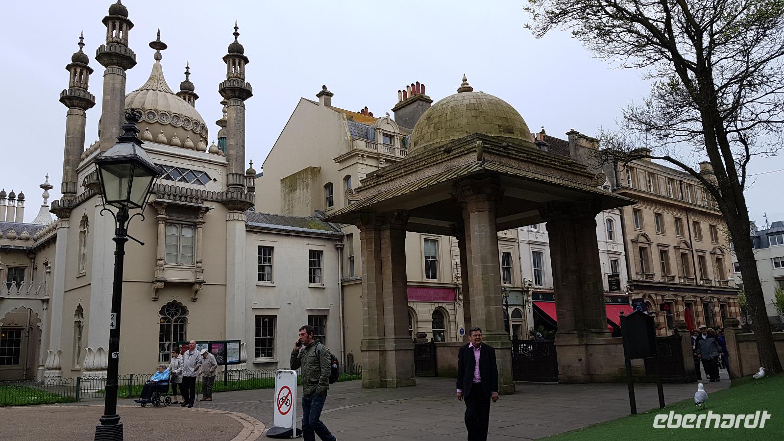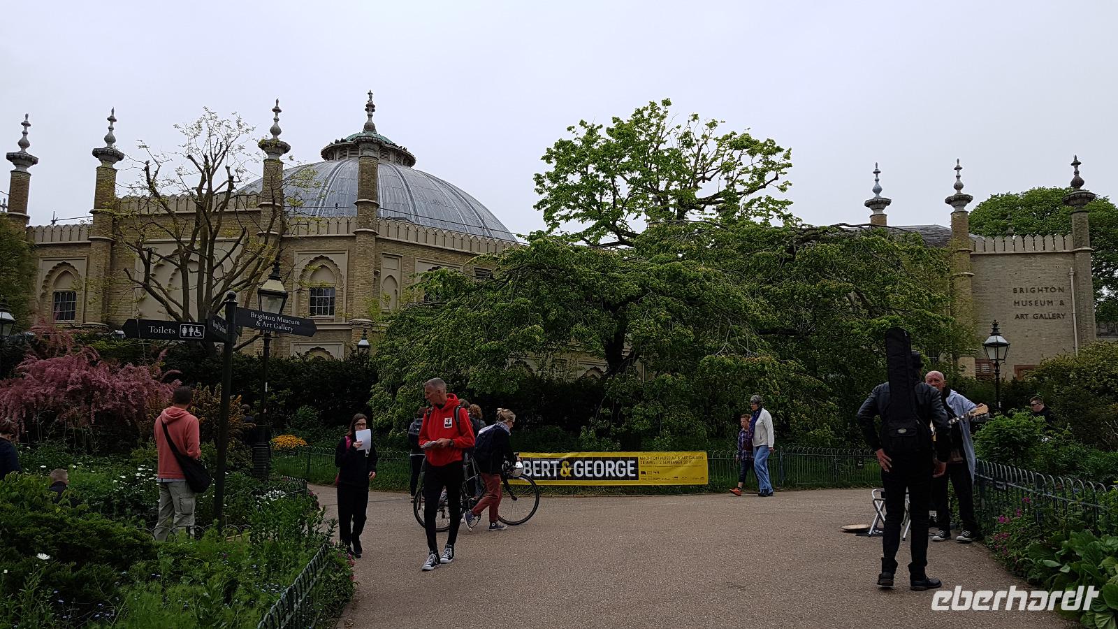 Heute läßt uns der Wettergott im Stich. Schon beim ersten Abstecher nach Wilmington fängt es an zu nieseln. Eigentlich wollten wir hier „nur" den „Long Man of Wilmington" anschauen, eine ca. 70 Meter hohe Figur, die in den Kreidehügel gearbeitet wurde. Gegenwärtig hat man die Umrisse ausgegossen, damit sie besser erhalten werden können. Wir entdecken aber auch die Kirche, in derem Garten sich eine 1000-jährige Eibe versteckt. Gut, dass einige Gäste schon einmal hier mit Eberhardt Travel wandern waren und diese Gegend gut kennen. Julie schließlich schloss uns auch die Kirche auf, so dass wir hineinschauen konnten. Aus der Zeit des 12. Jahrhunderts stammt sie und wurde aus dem gebaut, was lokal vorhanden war: dem Feuerstein. Schon ging es weiter und in der Ferne entdecken wir eine weitere Kreide-Figur: das White Horse, das weiße Pferd. Rasch erreichen wir Brighton, die „Badewanne der Londoner". Der Royal Pavillon ist unser Ziel. Wohl eines der exzentrischsten Bauwerke, dass es in England gibt. Der Prince of Wales, der spätere George IV. ließ es erbauen. 1822 wurde es fertiggestellt. Beeindruckend die Ausstattung, während sich die äußere „Hülle" an den Palästen der indischen Maharadschas orientiert dominiert im Inneren eindeutig ein chinesischer Stil. Goerge IV. wollte beeindrucken- das ist ihm auch bei uns gelungen- was für eine Pracht. Einige besuchen anschließend den Garten oder schlendern durch die Lanes, es ist noch Zeit, bis wir uns an der Landungsbrücke wiedertreffen. Wir fahren weiter zu den „Seven Sisters", den Sieben Schwestern. Diesen Namen tragen die Kreidefelsen, an Birling Gap steigen wir daher aus und die Treppe zum Kieselstrand hinunter. Leider hört es nicht auf zu Nieseln, das hält uns aber nicht davon ab, eine Wanderung zum Beachy Head zu unternehmen. Immer an der Abbruchkante entlang führt unser Pfad und die Blicke auf die Kreidefelsen sind umwerfend. Sie erreichen immerhin eine Höhe von 162 Metern und sind damit Großbritanniens höchste Kreidefelsen. Der Name Beachy Head hat übrigens nichts mit Beach= Strand zu tun, er kommt vielmehr vom französischen Beauchef (schönes Kap). Es hat auch aufgehört zu regnen und vorbei am Leuchtturm Belle Tout Lighthouse erreichen wir schließlich unser Ziel, wo Jan schon mit dem Bus auf uns wartet. Aber erst einmal gibt es für die Wanderer ein Eis. Am späten Nachmittag sind wir wieder im Hotel und jeder nutzt die freie Zeit wie es ihm beliebt bevor uns ein leckeres Abendessen erwartet.