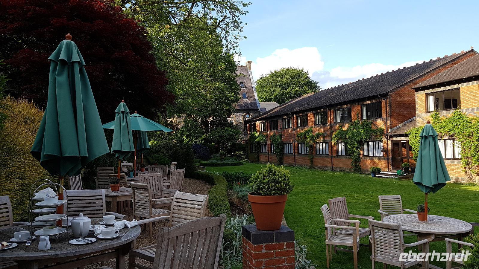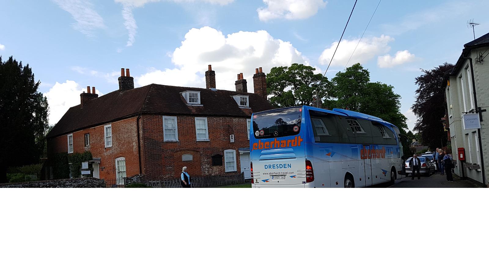 Heute heißt es wieder Koffer laden, wir verlassen East Sussex und fahren durch den South Downs Nationalpark zuerst nach Arundel. Ein Fotostopp am Castle ist ein Muss bevor wir einen Spaziergang durch die High-Street zur Kathedrale unternehmen. Es ist gerade Gottesdienst und so werfen wir nur einen kurzen Blick hinein. Erbaut wurde sie Ende des 19. Jahrhunderts im Stile der Gotik des 14. Jahrhunderts. Dann führt uns unsere Fahrt zu West Deans Gardens. Gespannt steigen wir aus, schließlich soll es hier unter anderem Gewächshäuser aus der viktorianischen Zeit geben. Darüber hinaus präsentiert er sich als einer der größten wieder aufgebauten Gärten, der öffentlich zugänglich sind. Wir sind begeistert: Ummauerte Gärten, an den Mauern Obstgehölze als Spaliere, Kräutergärten, wunderschöne Solitär-Bäume, die sich prächtig entfalten können, lauschige Plätzchen mit Bänken zum Verweilen und natürlich die Gewächshäuser. Durch einige können wir hindurchlaufen und genießen die Pflanzenpracht. Nach einer kleinen Stärkung geht es ann weiter nach Alton. Hier besuchen wir das Haus, in dem Jane Austen gelebt und gearbeitet hat. Wer wollte konnte sich einen kleinen Film über die Schriftstellerin ansehen, ihre Werke wie "Stolz und Vorurteil" und "Emma" gehören zur Weltliteratur und sind in viele Sprachen übersetzt worden. Viele folgen dann der Einladung zu einem kleinen Spaziergang und wir entdecken neben der Kirche auf dem kleinen Friedhof die Gräber von Janes Mutter und Schwester, sie selber ist in der Kathedrale in Winchester begraben. Dort hielt sie sich auf, weil sie hier Heilung oder Linderung ihrer Krankheit erhoffte, sie starb jedoch im Alter von 42 Jahren. Am späten Nachmittag schließlich brechen wir auf nach Winchester. Das liegt in der Grafschaft Hamptshire und ist berühmt für seine Kathedrale und den Rittersaal des Winchester Castle. Kein geringerer als König Artus selber soll hier seine berühmte Tafelrunde im Rittersaal einberufen haben. Leider ist es schon sehr spät als wir ankommen und so wagen nur wenige einen raschen Spaziergang ins nahe Stadtzentrum. Andere genießen die einladenden Außenanlagen des Hotels bei strahlendem Sonnenschein und lassen den Tag revue passieren bevor ein tolles Abendessen die Gruppe wieder vereint.