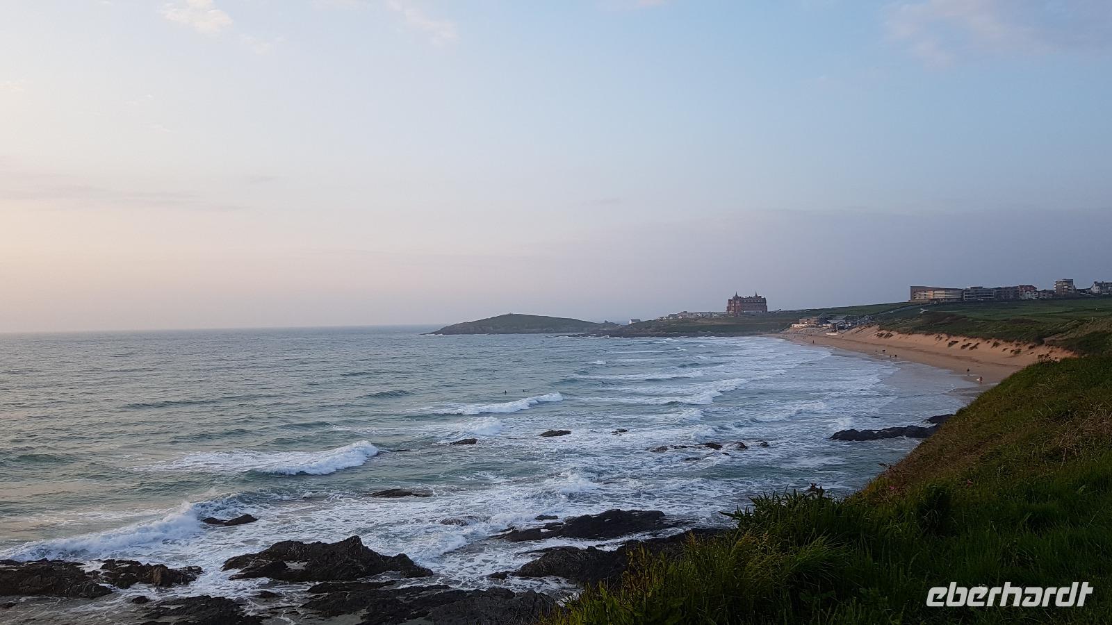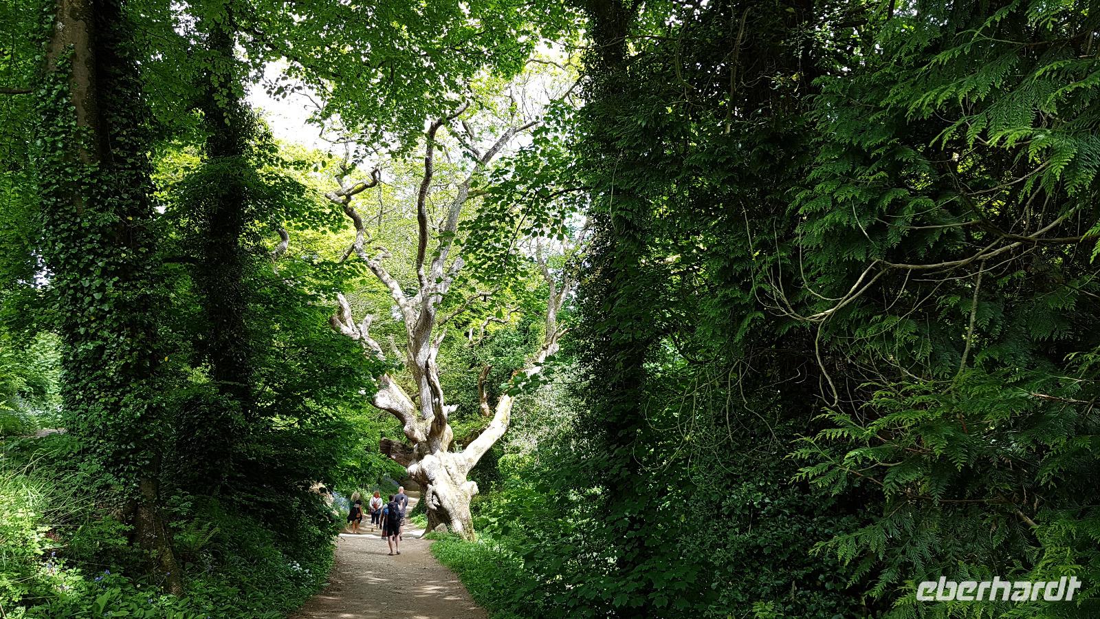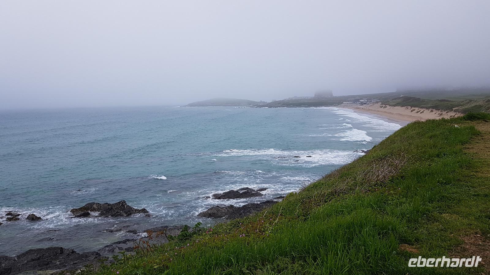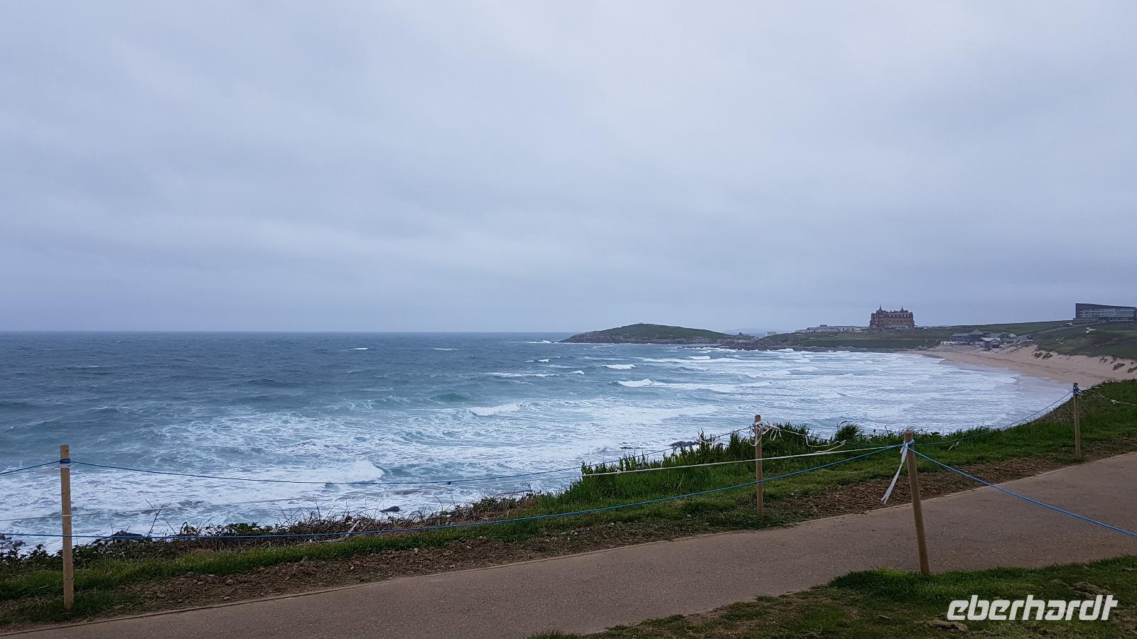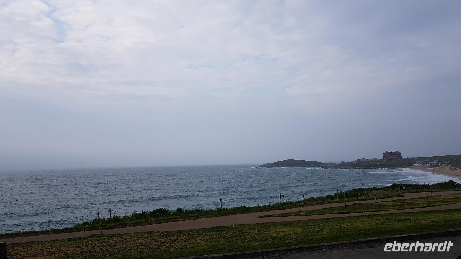 Heute morgen ist unser erstes Ziel "The Hoe". Bei Sonne satt genießen wir einen kleinen Spaziergang auf der Promenade bis uns der Bus unterhalb des Smeaton´s Towers wieder abholt. Dieser Leuchtturm stand seit 1759 auf dem Eddystone Reef, als man in den 1980er Jahren einen Neubau begann wirde er abgetragen und 22 Meter davon hier auf The Hoe wieder aufgebaut. Über die Tamar-Bridge, der Straßenbrücke, die 1961 als Hängebrücke fertiggestellt wurde, verlassen wir Plymouth und bestaunen die parallel verlaufende Royal Albert Bridge mit ihren schmiedeeisernen Fachwerkträgern. Dann genießen wir die Fahrt durch Cornwall, der Halbinsel in der keltischen See mit ihren mehr als 1000 Kilometern Küstenlinie. The lost Gardens of Heligan sind unser nächstes Ziel. Der Landsitz und die Gärten wurden lange Zeit vernachlässigt, die Natur hatte sich ihr Terrain zurückerobert. Ab 1991 startete dann John Willis mit Gartenbauspezialisten und vielen Helfen die Gestaltung der Gärten und versetzte das Anwesen wieder in den Zustand zu viktorianischen Zeiten. 1999 wurden die Mühen belohnt, der Garten wurde zum schönsten ganz Großbritanniens gewählt. Heute können wir den Ziergarten bestaunen, mit einem fast 200 Jahre alten Rhodedendron- 60 Meter Durchmesser sind Weltrekord. Der Nutzgarten ist fast ein Freilichtmuseum des Gartenbaus während im 300 Meter langen, tief eingeschnittenen Tal der Dschungel ruft. Wer sich traut läuft über die Hängebrücke oder erkundet das Lost Valley, mit Weiden und neu angelegten Teichen. Highlights sind natürlich die Erdskulpturen der Künstlerin Susan Hill, The Giants Head (der Kopf des Riesen) und The Mud Maid (wobei Mud für den Schlamm am Boden der Teiche steht). Voller neuer Eindrücke fahren wir weiter, eine Mittagspause steht an und die verbringen wir als typisches Eberhardt - Special in Mevagissey. Am Hafen läßt es sich vortrefflich bummeln und einige probieren hier Fisch und Chips. Gestärkt fahren wir weiter zum Trebah Garden. In den 1840er Jahren angelegt wurde er 1981 von Major Hibbert und seiner Frau Eva gekauft und zu einem zauberhaften Gartenreich umgestaltet. Übersetzt heißt das Anwesen "Das Haus an der Bucht", schließlich liegt es an der Mündung des Flusses Helford. Der Schluchtgarten mit seinen steilen Hängen bietet dank des Golfstromes und des milden Klimas auch tropischen Pflanzen eine Heimat, Gunneras wachsen hier, Bambus Yuccas, Agaven...Vom oberen Koi-Pool fließt ein kleiner Bach durch das ganze Tal bis zum Trebah Beach- plötzlich steht man am Strand. Einfach umwerfend- so der einhellige Tenor aller Gäste nach diesem Besuch. Das Besucherzentrum hatte extra für uns länger geöffnet, ein toller Service. So machten wir uns auf den Weg nach Newquay, unser Hotel liegt direkt am Fistral Beach, wegen seiner Wellen einem Eldorado für Surfer. Leider legte sich nun dichter Nebel übers Land und wir können nicht viel von der Bucht sehen- das sollte sich morgen dann ändern.