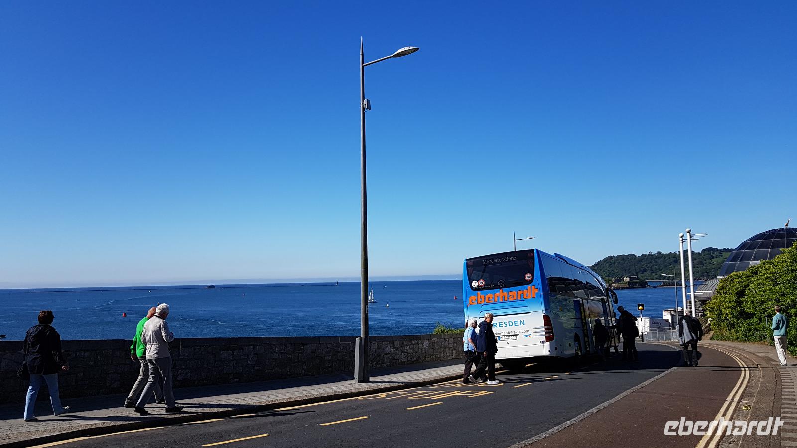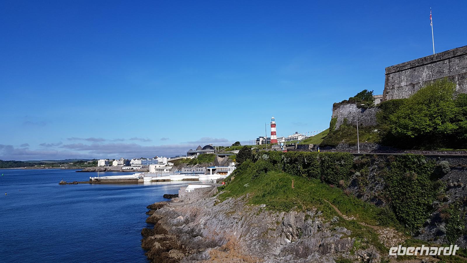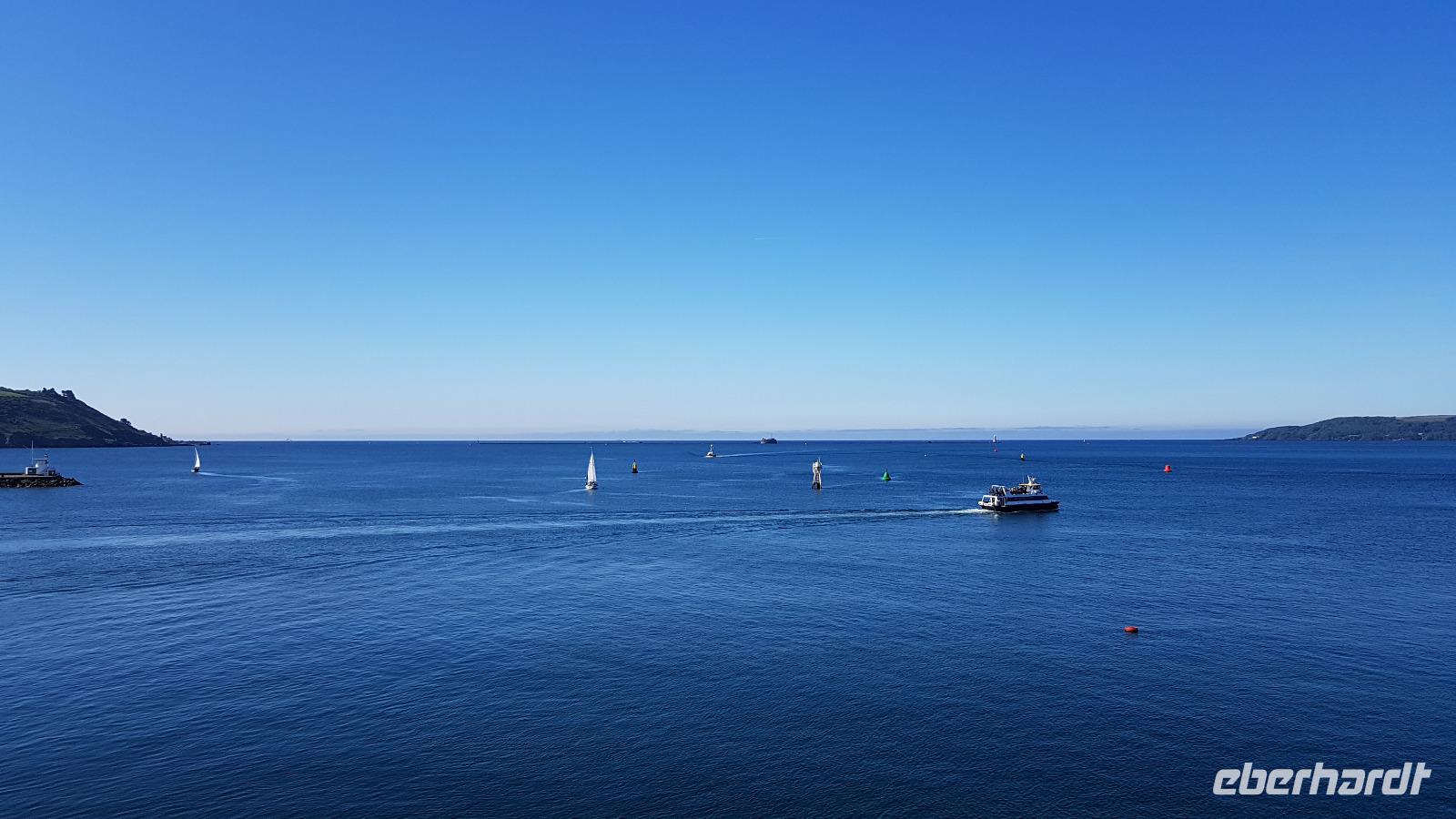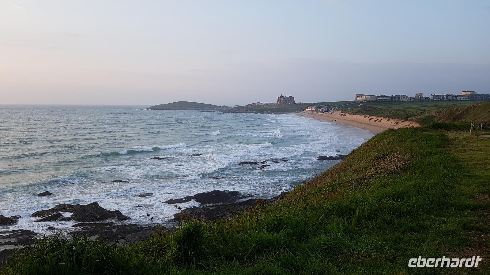 Heute morgen ist unser erstes Ziel "The Hoe". Bei Sonne satt genießen wir einen kleinen Spaziergang auf der Promenade bis uns der Bus unterhalb des Smeaton´s Towers wieder abholt. Dieser Leuchtturm stand seit 1759 auf dem Eddystone Reef, als man in den 1980er Jahren einen Neubau begann wirde er abgetragen und 22 Meter davon hier auf The Hoe wieder aufgebaut. Über die Tamar-Bridge, der Straßenbrücke, die 1961 als Hängebrücke fertiggestellt wurde, verlassen wir Plymouth und bestaunen die parallel verlaufende Royal Albert Bridge mit ihren schmiedeeisernen Fachwerkträgern. Dann genießen wir die Fahrt durch Cornwall, der Halbinsel in der keltischen See mit ihren mehr als 1000 Kilometern Küstenlinie. The lost Gardens of Heligan sind unser nächstes Ziel. Der Landsitz und die Gärten wurden lange Zeit vernachlässigt, die Natur hatte sich ihr Terrain zurückerobert. Ab 1991 startete dann John Willis mit Gartenbauspezialisten und vielen Helfen die Gestaltung der Gärten und versetzte das Anwesen wieder in den Zustand zu viktorianischen Zeiten. 1999 wurden die Mühen belohnt, der Garten wurde zum schönsten ganz Großbritanniens gewählt. Heute können wir den Ziergarten bestaunen, mit einem fast 200 Jahre alten Rhodedendron- 60 Meter Durchmesser sind Weltrekord. Der Nutzgarten ist fast ein Freilichtmuseum des Gartenbaus während im 300 Meter langen, tief eingeschnittenen Tal der Dschungel ruft. Wer sich traut läuft über die Hängebrücke oder erkundet das Lost Valley, mit Weiden und neu angelegten Teichen. Highlights sind natürlich die Erdskulpturen der Künstlerin Susan Hill, The Giants Head (der Kopf des Riesen) und The Mud Maid (wobei Mud für den Schlamm am Boden der Teiche steht). Voller neuer Eindrücke fahren wir weiter, eine Mittagspause steht an und die verbringen wir als typisches Eberhardt - Special in Mevagissey. Am Hafen läßt es sich vortrefflich bummeln und einige probieren hier Fisch und Chips. Gestärkt fahren wir weiter zum Trebah Garden. In den 1840er Jahren angelegt wurde er 1981 von Major Hibbert und seiner Frau Eva gekauft und zu einem zauberhaften Gartenreich umgestaltet. Übersetzt heißt das Anwesen "Das Haus an der Bucht", schließlich liegt es an der Mündung des Flusses Helford. Der Schluchtgarten mit seinen steilen Hängen bietet dank des Golfstromes und des milden Klimas auch tropischen Pflanzen eine Heimat, Gunneras wachsen hier, Bambus Yuccas, Agaven...Vom oberen Koi-Pool fließt ein kleiner Bach durch das ganze Tal bis zum Trebah Beach- plötzlich steht man am Strand. Einfach umwerfend- so der einhellige Tenor aller Gäste nach diesem Besuch. Das Besucherzentrum hatte extra für uns länger geöffnet, ein toller Service. So machten wir uns auf den Weg nach Newquay, unser Hotel liegt direkt am Fistral Beach, wegen seiner Wellen einem Eldorado für Surfer. Leider legte sich nun dichter Nebel übers Land und wir können nicht viel von der Bucht sehen- das sollte sich morgen dann ändern.