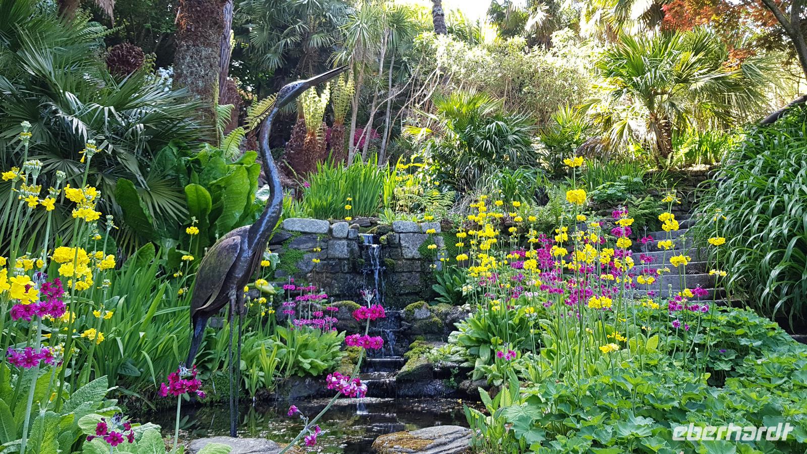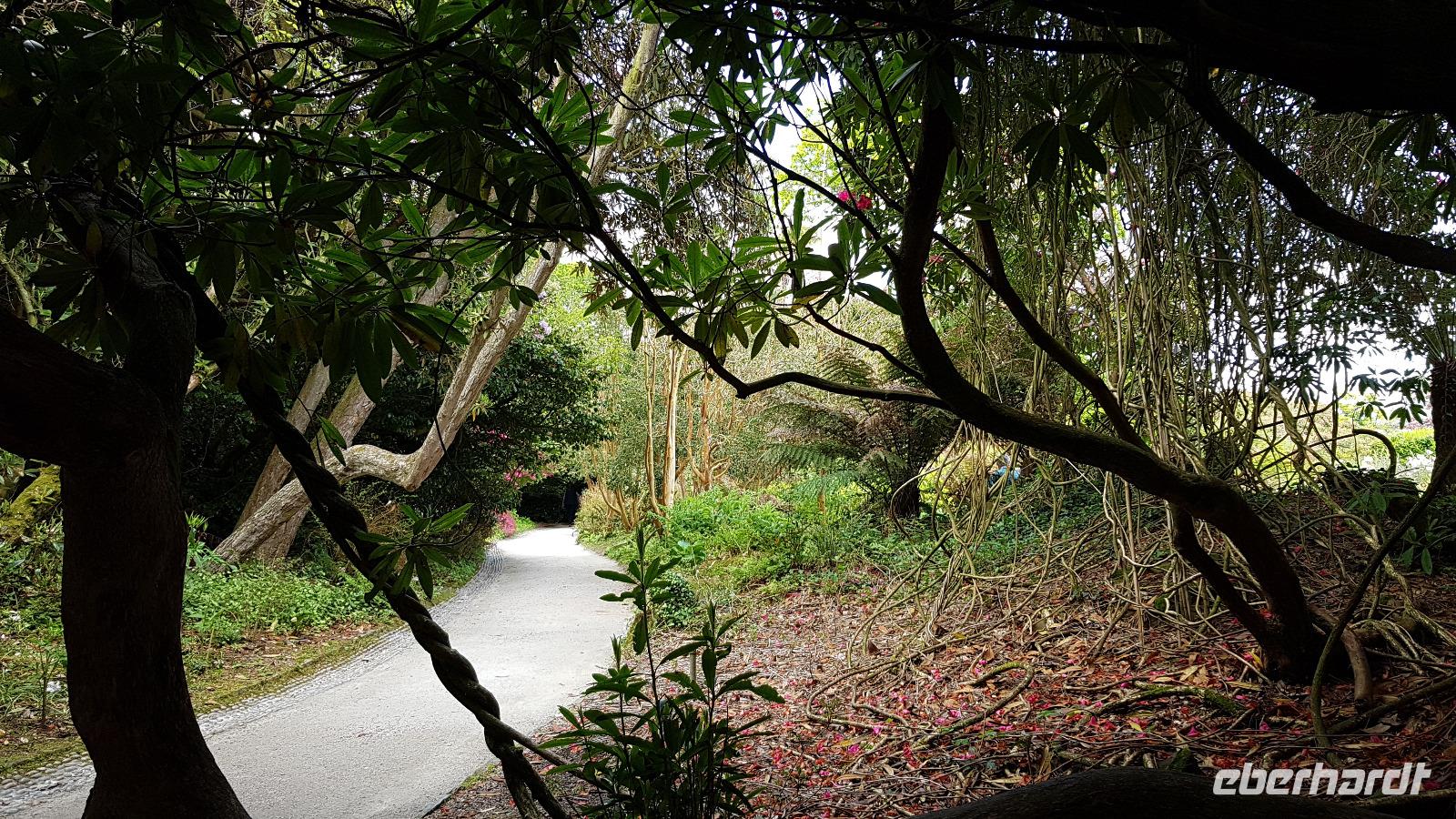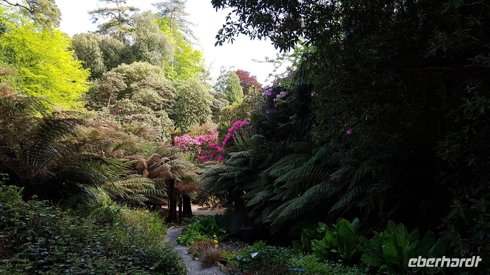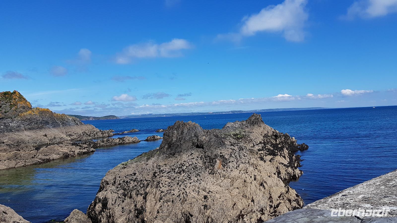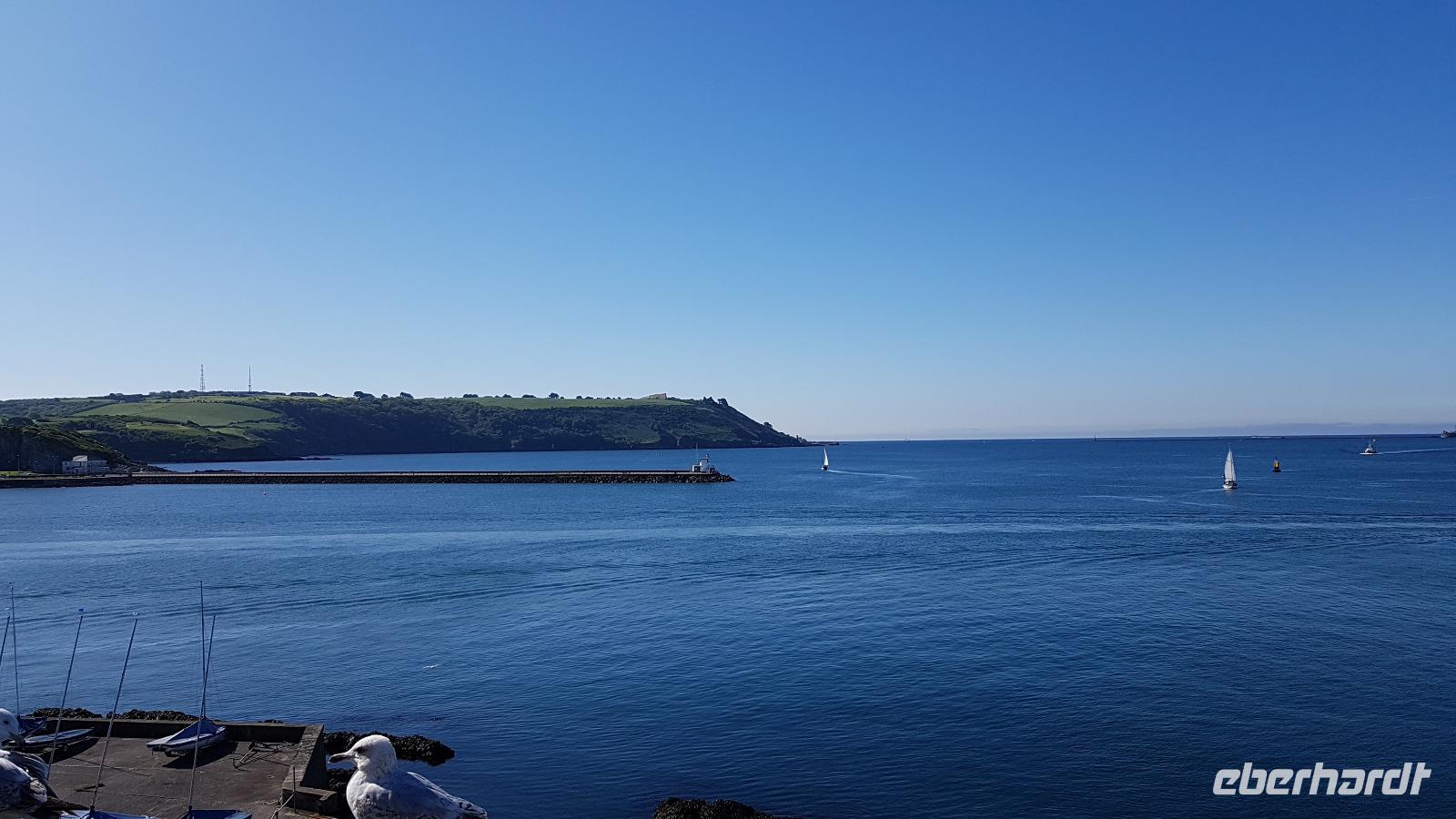 Heute morgen ist unser erstes Ziel "The Hoe". Bei Sonne satt genießen wir einen kleinen Spaziergang auf der Promenade bis uns der Bus unterhalb des Smeaton´s Towers wieder abholt. Dieser Leuchtturm stand seit 1759 auf dem Eddystone Reef, als man in den 1980er Jahren einen Neubau begann wirde er abgetragen und 22 Meter davon hier auf The Hoe wieder aufgebaut. Über die Tamar-Bridge, der Straßenbrücke, die 1961 als Hängebrücke fertiggestellt wurde, verlassen wir Plymouth und bestaunen die parallel verlaufende Royal Albert Bridge mit ihren schmiedeeisernen Fachwerkträgern. Dann genießen wir die Fahrt durch Cornwall, der Halbinsel in der keltischen See mit ihren mehr als 1000 Kilometern Küstenlinie. The lost Gardens of Heligan sind unser nächstes Ziel. Der Landsitz und die Gärten wurden lange Zeit vernachlässigt, die Natur hatte sich ihr Terrain zurückerobert. Ab 1991 startete dann John Willis mit Gartenbauspezialisten und vielen Helfen die Gestaltung der Gärten und versetzte das Anwesen wieder in den Zustand zu viktorianischen Zeiten. 1999 wurden die Mühen belohnt, der Garten wurde zum schönsten ganz Großbritanniens gewählt. Heute können wir den Ziergarten bestaunen, mit einem fast 200 Jahre alten Rhodedendron- 60 Meter Durchmesser sind Weltrekord. Der Nutzgarten ist fast ein Freilichtmuseum des Gartenbaus während im 300 Meter langen, tief eingeschnittenen Tal der Dschungel ruft. Wer sich traut läuft über die Hängebrücke oder erkundet das Lost Valley, mit Weiden und neu angelegten Teichen. Highlights sind natürlich die Erdskulpturen der Künstlerin Susan Hill, The Giants Head (der Kopf des Riesen) und The Mud Maid (wobei Mud für den Schlamm am Boden der Teiche steht). Voller neuer Eindrücke fahren wir weiter, eine Mittagspause steht an und die verbringen wir als typisches Eberhardt - Special in Mevagissey. Am Hafen läßt es sich vortrefflich bummeln und einige probieren hier Fisch und Chips. Gestärkt fahren wir weiter zum Trebah Garden. In den 1840er Jahren angelegt wurde er 1981 von Major Hibbert und seiner Frau Eva gekauft und zu einem zauberhaften Gartenreich umgestaltet. Übersetzt heißt das Anwesen "Das Haus an der Bucht", schließlich liegt es an der Mündung des Flusses Helford. Der Schluchtgarten mit seinen steilen Hängen bietet dank des Golfstromes und des milden Klimas auch tropischen Pflanzen eine Heimat, Gunneras wachsen hier, Bambus Yuccas, Agaven...Vom oberen Koi-Pool fließt ein kleiner Bach durch das ganze Tal bis zum Trebah Beach- plötzlich steht man am Strand. Einfach umwerfend- so der einhellige Tenor aller Gäste nach diesem Besuch. Das Besucherzentrum hatte extra für uns länger geöffnet, ein toller Service. So machten wir uns auf den Weg nach Newquay, unser Hotel liegt direkt am Fistral Beach, wegen seiner Wellen einem Eldorado für Surfer. Leider legte sich nun dichter Nebel übers Land und wir können nicht viel von der Bucht sehen- das sollte sich morgen dann ändern.
