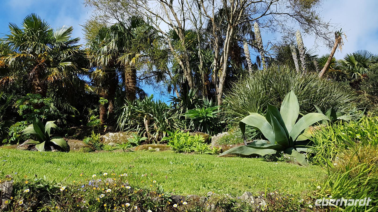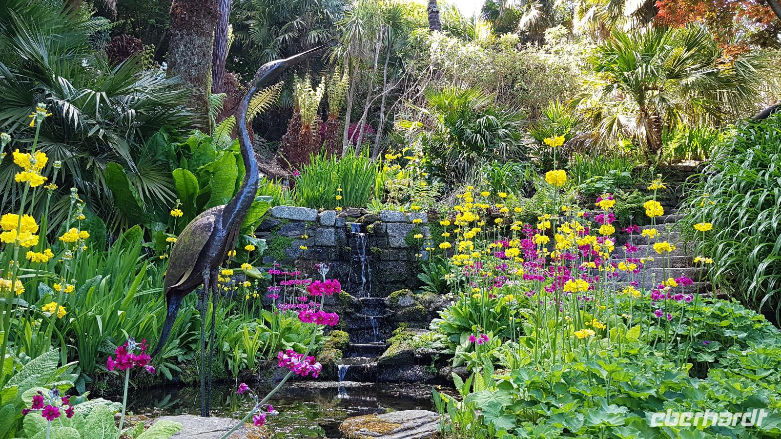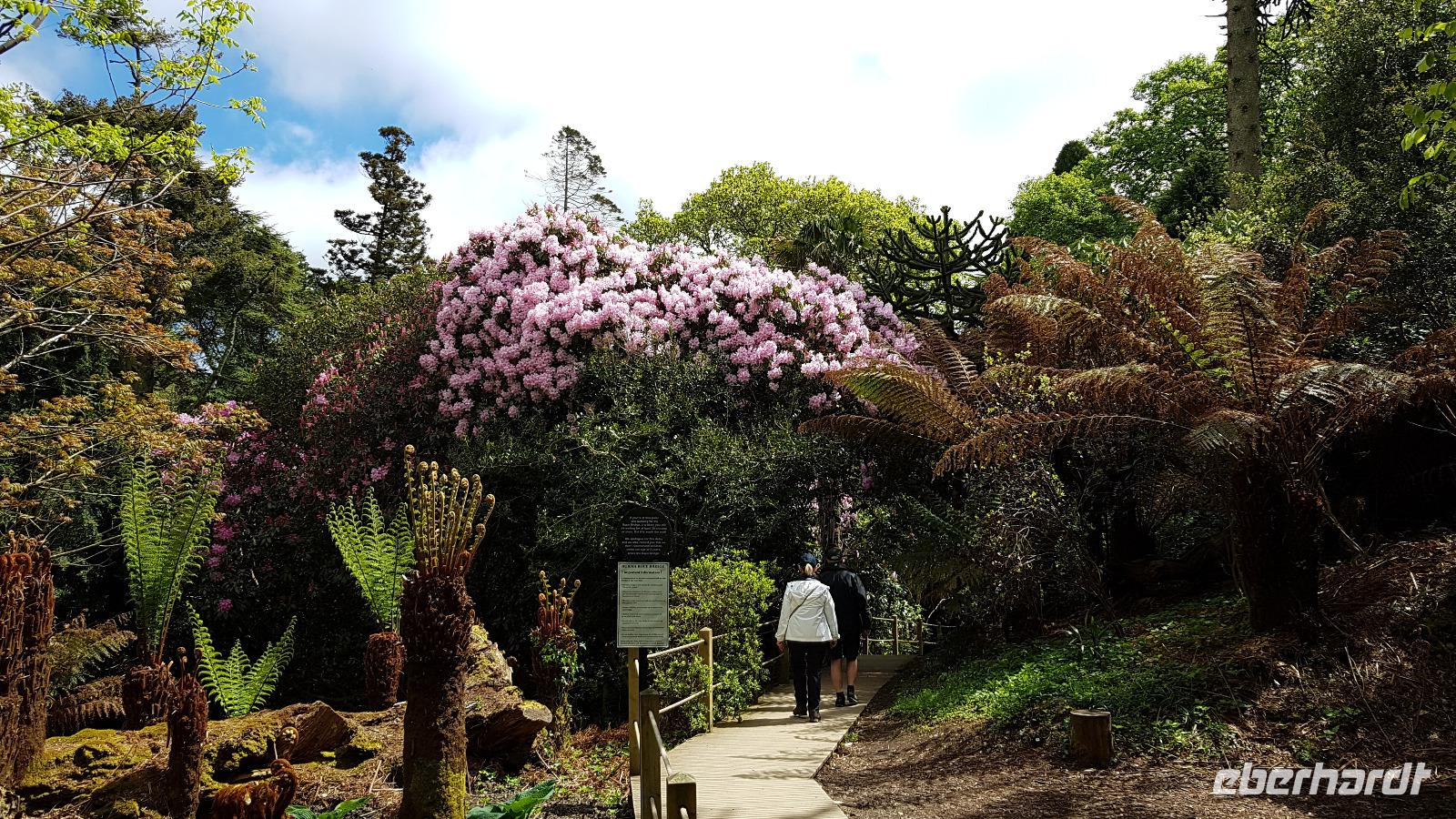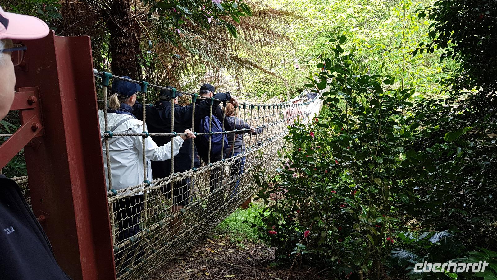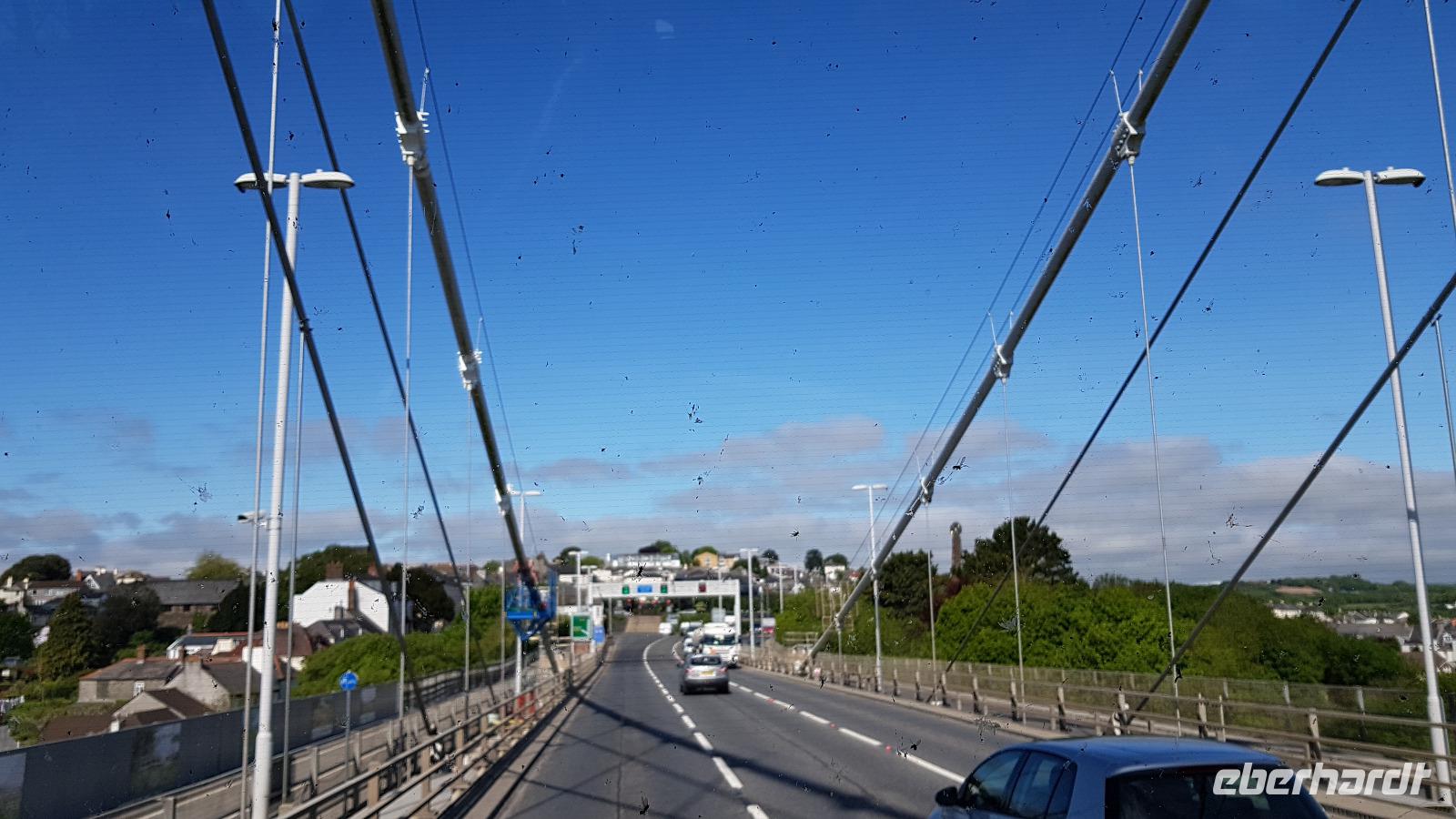 Heute morgen ist unser erstes Ziel "The Hoe". Bei Sonne satt genießen wir einen kleinen Spaziergang auf der Promenade bis uns der Bus unterhalb des Smeaton´s Towers wieder abholt. Dieser Leuchtturm stand seit 1759 auf dem Eddystone Reef, als man in den 1980er Jahren einen Neubau begann wirde er abgetragen und 22 Meter davon hier auf The Hoe wieder aufgebaut. Über die Tamar-Bridge, der Straßenbrücke, die 1961 als Hängebrücke fertiggestellt wurde, verlassen wir Plymouth und bestaunen die parallel verlaufende Royal Albert Bridge mit ihren schmiedeeisernen Fachwerkträgern. Dann genießen wir die Fahrt durch Cornwall, der Halbinsel in der keltischen See mit ihren mehr als 1000 Kilometern Küstenlinie. The lost Gardens of Heligan sind unser nächstes Ziel. Der Landsitz und die Gärten wurden lange Zeit vernachlässigt, die Natur hatte sich ihr Terrain zurückerobert. Ab 1991 startete dann John Willis mit Gartenbauspezialisten und vielen Helfen die Gestaltung der Gärten und versetzte das Anwesen wieder in den Zustand zu viktorianischen Zeiten. 1999 wurden die Mühen belohnt, der Garten wurde zum schönsten ganz Großbritanniens gewählt. Heute können wir den Ziergarten bestaunen, mit einem fast 200 Jahre alten Rhodedendron- 60 Meter Durchmesser sind Weltrekord. Der Nutzgarten ist fast ein Freilichtmuseum des Gartenbaus während im 300 Meter langen, tief eingeschnittenen Tal der Dschungel ruft. Wer sich traut läuft über die Hängebrücke oder erkundet das Lost Valley, mit Weiden und neu angelegten Teichen. Highlights sind natürlich die Erdskulpturen der Künstlerin Susan Hill, The Giants Head (der Kopf des Riesen) und The Mud Maid (wobei Mud für den Schlamm am Boden der Teiche steht). Voller neuer Eindrücke fahren wir weiter, eine Mittagspause steht an und die verbringen wir als typisches Eberhardt - Special in Mevagissey. Am Hafen läßt es sich vortrefflich bummeln und einige probieren hier Fisch und Chips. Gestärkt fahren wir weiter zum Trebah Garden. In den 1840er Jahren angelegt wurde er 1981 von Major Hibbert und seiner Frau Eva gekauft und zu einem zauberhaften Gartenreich umgestaltet. Übersetzt heißt das Anwesen "Das Haus an der Bucht", schließlich liegt es an der Mündung des Flusses Helford. Der Schluchtgarten mit seinen steilen Hängen bietet dank des Golfstromes und des milden Klimas auch tropischen Pflanzen eine Heimat, Gunneras wachsen hier, Bambus Yuccas, Agaven...Vom oberen Koi-Pool fließt ein kleiner Bach durch das ganze Tal bis zum Trebah Beach- plötzlich steht man am Strand. Einfach umwerfend- so der einhellige Tenor aller Gäste nach diesem Besuch. Das Besucherzentrum hatte extra für uns länger geöffnet, ein toller Service. So machten wir uns auf den Weg nach Newquay, unser Hotel liegt direkt am Fistral Beach, wegen seiner Wellen einem Eldorado für Surfer. Leider legte sich nun dichter Nebel übers Land und wir können nicht viel von der Bucht sehen- das sollte sich morgen dann ändern.