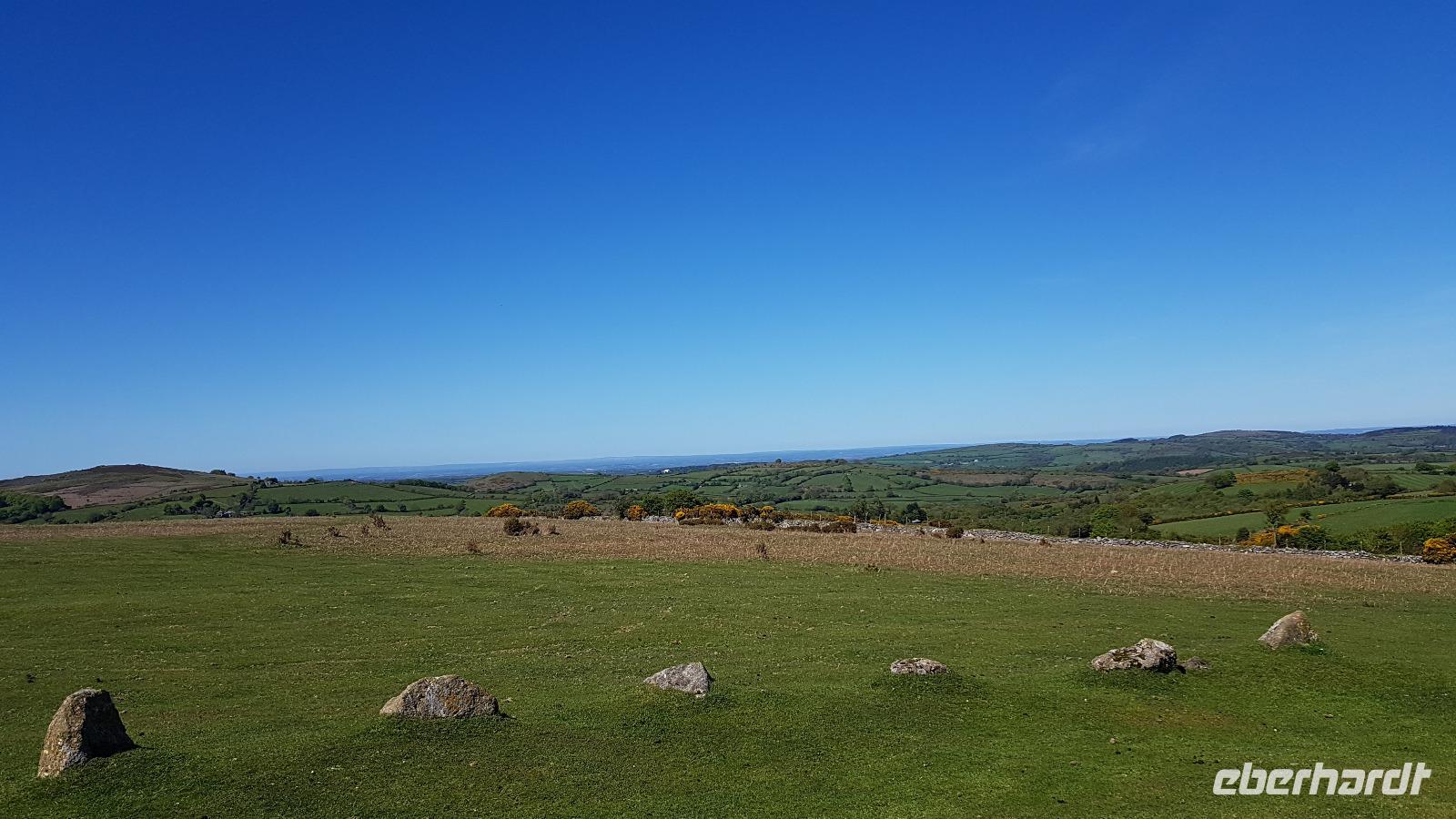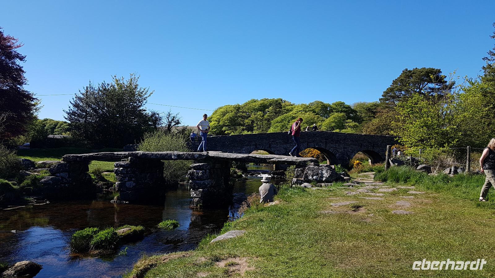 Die Sonne strahlt heute morgen, einige nutzen dies und genießen ihren Kaffee im Garten des Hotels. Dann heißt es schon wieder Koffer einladen und los geht es Richtung Dartmoor. Wir passieren Amesbury, Ausgrabungen haben hier u.a. Funde aus der Bronzezeit ans Licht gebracht und bewiesen, dass die Gegend bereits seit dem Ende der letzten Eiszeit besiedelt war. Und dann sehen wir auch Stonehenge, den berühmte Steinkreis. Ganz langsam fährt Jan daran vorbei, leider ist keinerlei Möglichkeit für einen Fotostopp. Nach einer kleinen Service-Pause nahe Martok erreichen wir gegen 12 Uhr dann unser erstes Ziel: Knightshayes Court. Inmitten eines herrlich angelegten Landschaftsparkes präsentiert sich hier ein viktorianisches Anwesen, das wir besichtigen können. Ausgerüstet wieder mit Übersichtsplänen und einem Gutschein für einen "Cream Tea" starten wir. Wer mag sieht sich am Eingang einen kurzen Film zu Haus und Garten an, andere starten mit einer Stärkung: den Cream Tea. Zu den Scones werden Clotted Cream und Konfitüre gereicht und natürlich Tee oder Kaffee. Clotted Cream ist ein dicker Rahm für den rohe Milch eingekocht wird, dann bilden sich an der Oberfläche kleine Klümpchen- die Clots. Sie ist eine Spezialität der Grafschaften Devon und Cornwall. Dann kann es losgehen, das riesige Anwesen möchte entdeckt werden, aber auch die wunderbaren Gärten und der Park. Mit jeder Menge Fotos und tollen Eindrücken treffen wir uns am Bus wieder. Unsere Reise gen Westen führt nun durch das berühmte Dartmoor. Was hat man nicht schon alles an Gruselgeschichten gehört- unser Wetter ist allerdings alles andere als gruselig- bei strahlendem Sonennschein braucht es eine gehörigen Portion Phantasie um sich das Moor im Nebel vorzustellen...Wir passieren Mortonhampstead und erreichen am Nachmittag den View-Point nahe Lettaford, einem der höchstgelegenen Punkte im Dartmoor mit einer tollen Rundum-Sicht. Auch hier Steinkreise und Steinreihen, Zeugnisse der tausendjährigen Geschichte. In Postbridge stoppen wir ein zweites Mal, die "Two Bridges", die zwei Brücken wollen entdeckt werden. Dabei ist die Clapper Bridge besonders imposant, sie wurde im 13. Jahrhundert aus Steinplatten erbaut und auf ihr wurde u.a. mittels Packpferden Zinn aus den Minen zu den Schmelzöfen transportiert. Der Bergbau hatte hier seit dem Mittelalter das Leben geprägt bis die letzten Bergwerke Ende des letzten Jahhunderts geschlossen wurden. Das nahegelegene Princetown ist bekannt für sein Gefängnis, Ausbrecher beflügelten immer wieder die Phantasie von Schriftstellern wie Agatha Christie und Sir Arthur Conan Doyle. Auf unserer Fahrt sehen wir auch die bekannten Dartmoor-Ponys und Schafe weichen unserem Bus immer wieder in letzter Minute aus. Am Abend erreichen wir schließlich unser Hotel in Plymouth. In gemütlicher Atmosphäre können wir zu Abend essen und der Tag klingt langsam aus.