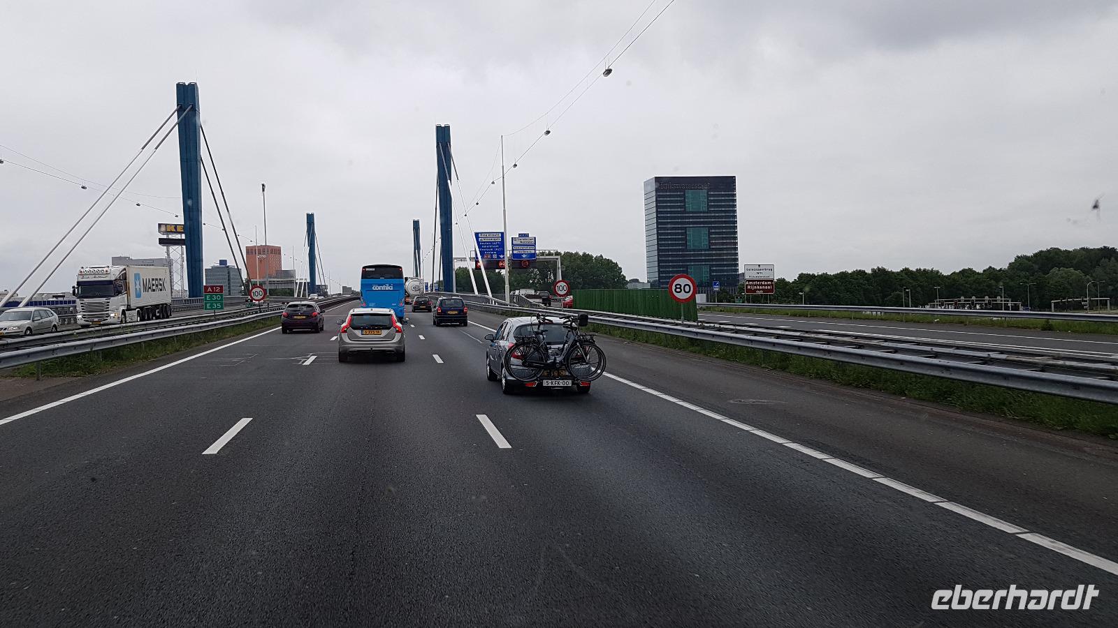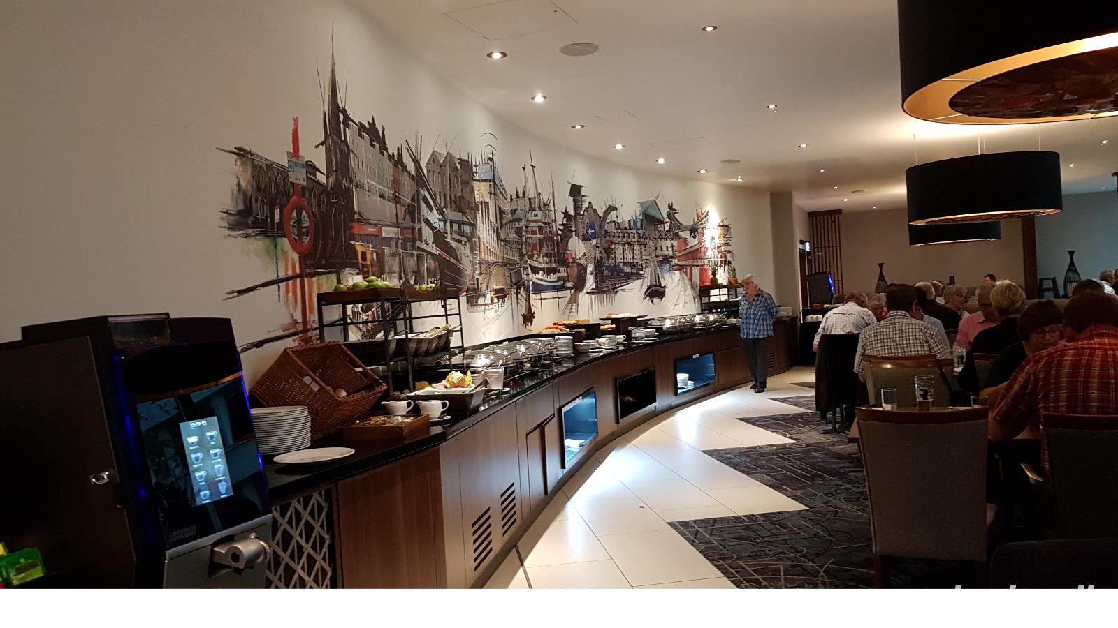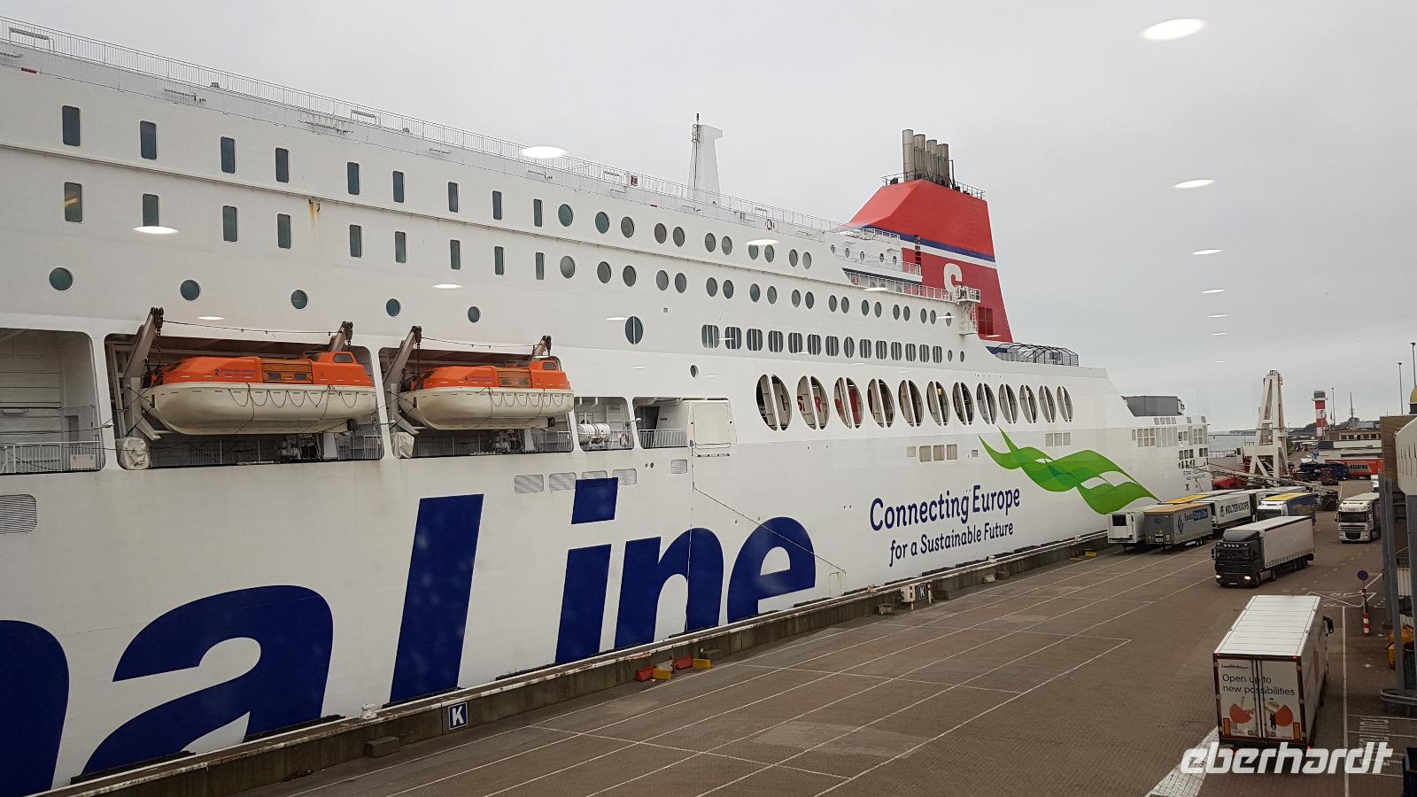 Bereits 6:00 Uhr treffen sich die ersten Gäste in Dresden. Unser Eberhardt-Bus steht bereit und es kann losgehen. In Nossen, Chenitz, Gera, Weimar und Erfurt steigen weitere Gäste zu und zu unserer Pause in Eisenach ist die Bus-Gruppe komplett. Bequem passieren wir die Deutsche Fachwerk-Straße, die Märchenstrasse und mit dem großen Meißner auch das Reich von Frau Holle. Mit der Metropolregion Rhein- Ruhr haben wir die nächste Etappe erreicht. Wir rasten noch einmal kurz vor der deutsch-niederländischen Grenze. Pünktlich 18:30 Uhr erreichen wir Hoek von Holland, unsere Fähre steht bereit und wir können ohne Wartezeiten einchecken. An Bord stellen wir unsere Uhren um, ab hier gilt bereits die englische Zeit- eine Stunde zurück. Jeder bezieht seine Kabine und schon treffen wir uns wieder zum Abendessen. Im "Metropolitan" erwartet uns ein leckeres 3-Gänge-Menü mit saftigem Steak und einer umwerfenden Panna Cotta mit Früchten als Dessert. So verwöhnt fordert das zeitige Aufstehen heute bei einigen Gästen ersten Tribut und die Abfahrt des Schiffes wird glatt "verschlafen".