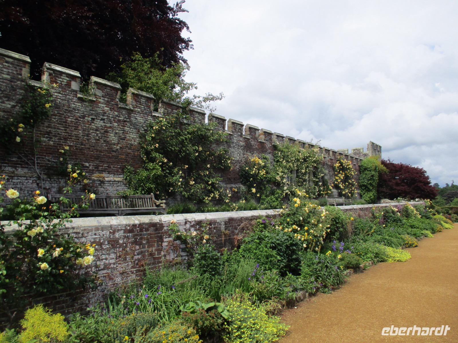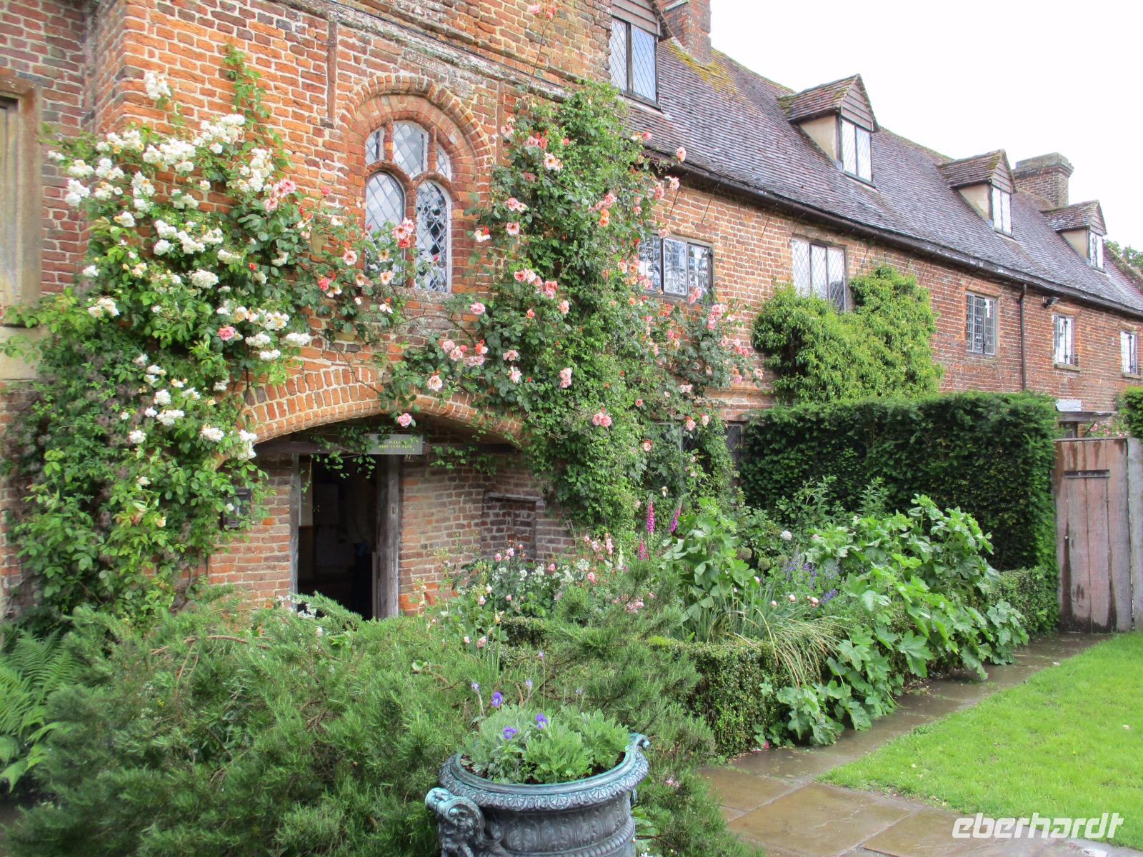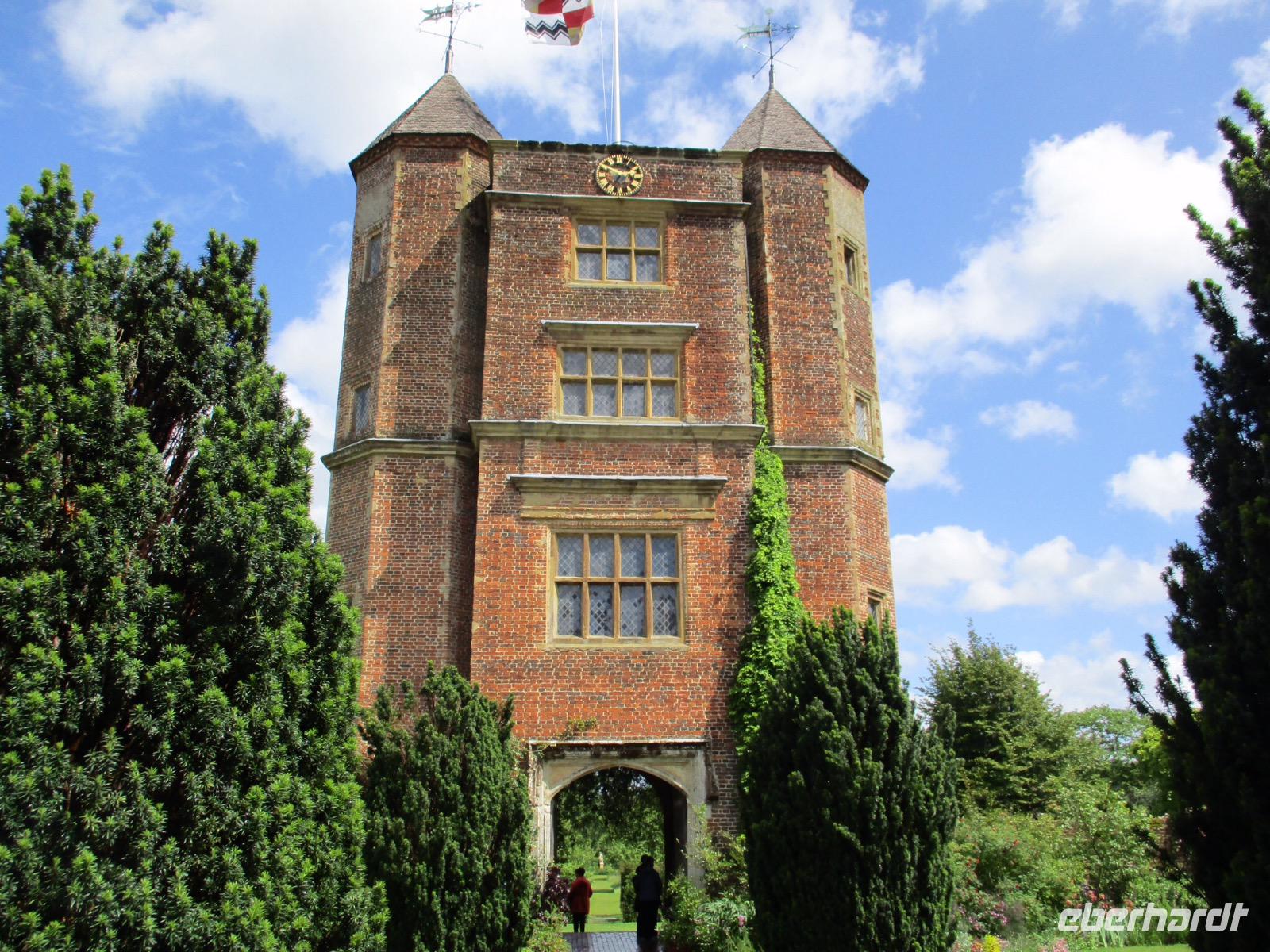 Ein hoher Doppelturm in Ziegelbauweise erhebt sich über verschiedenen Themengärten, die vor vielen Jahren von der Autorin Vita Sackville-West und ihrem Ehemann angelegt worden waren. Bei weiterhin wechselhaftem Wetter und viel Wind genossen wir den Nachmittag zwischen duftenden Rosen und bunt blühenden Beeten.