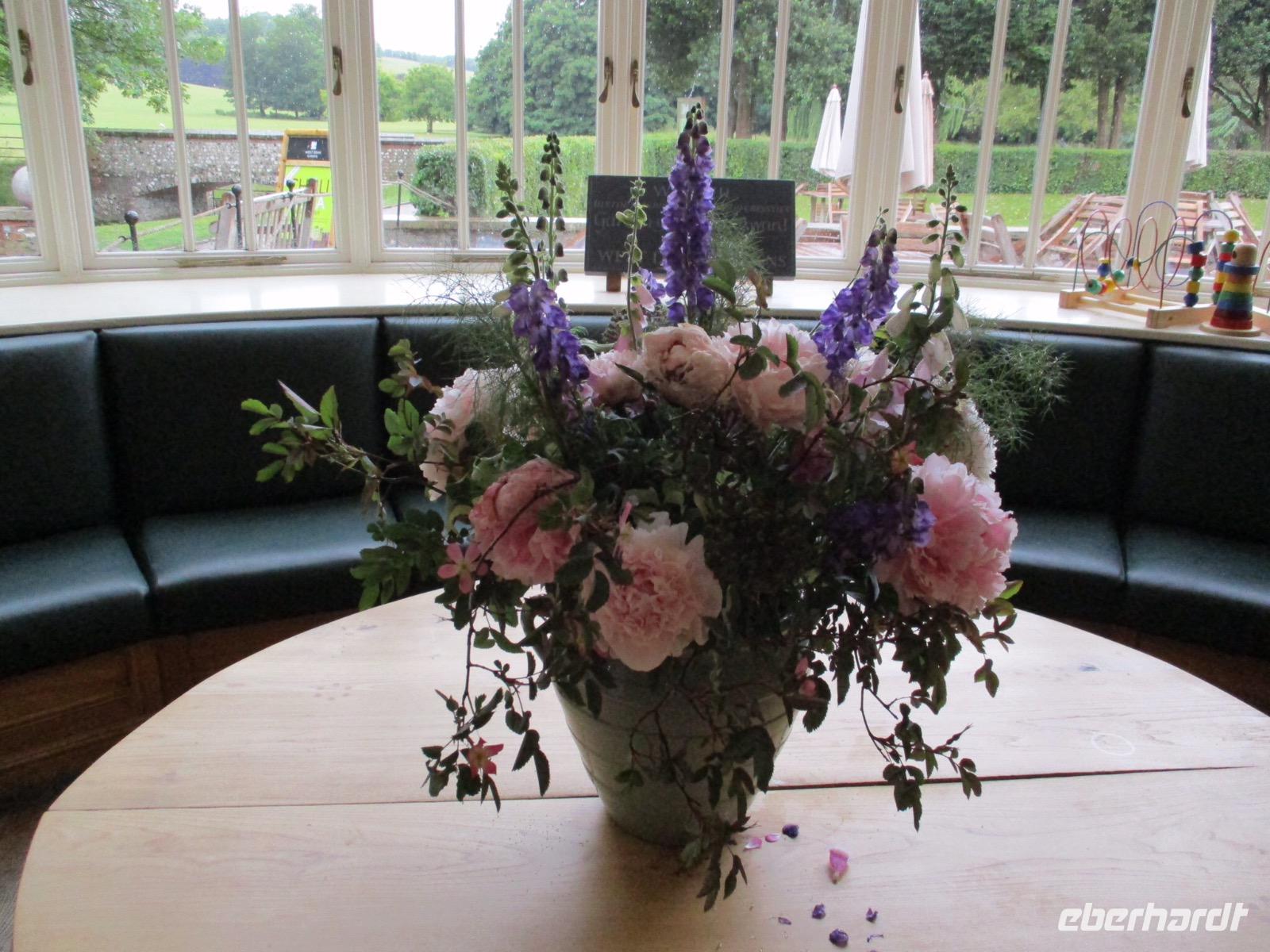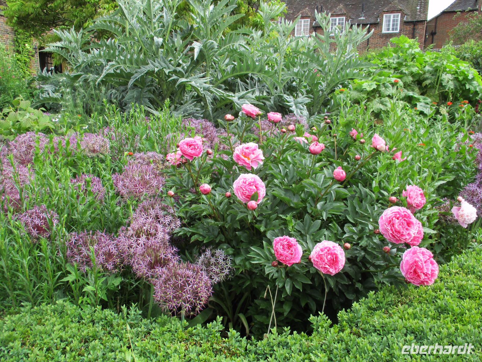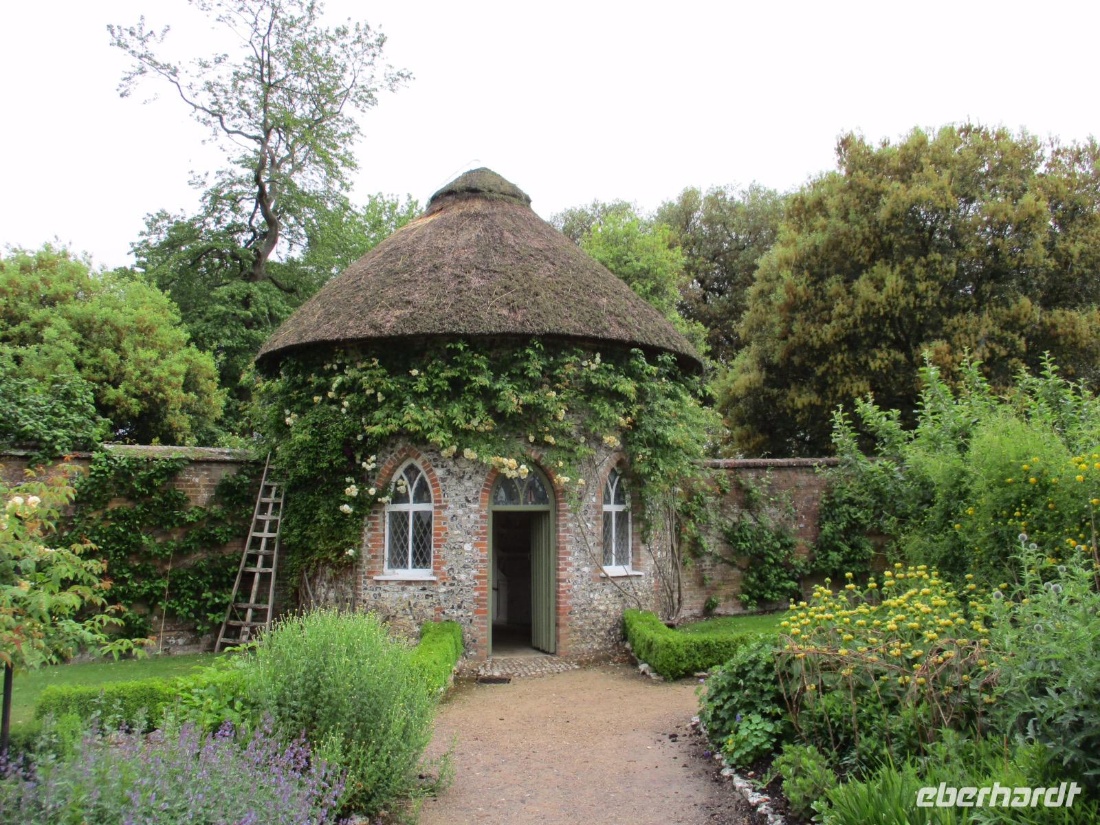 Ein hoher Doppelturm in Ziegelbauweise erhebt sich über verschiedenen Themengärten, die vor vielen Jahren von der Autorin Vita Sackville-West und ihrem Ehemann angelegt worden waren. Bei weiterhin wechselhaftem Wetter und viel Wind genossen wir den Nachmittag zwischen duftenden Rosen und bunt blühenden Beeten.