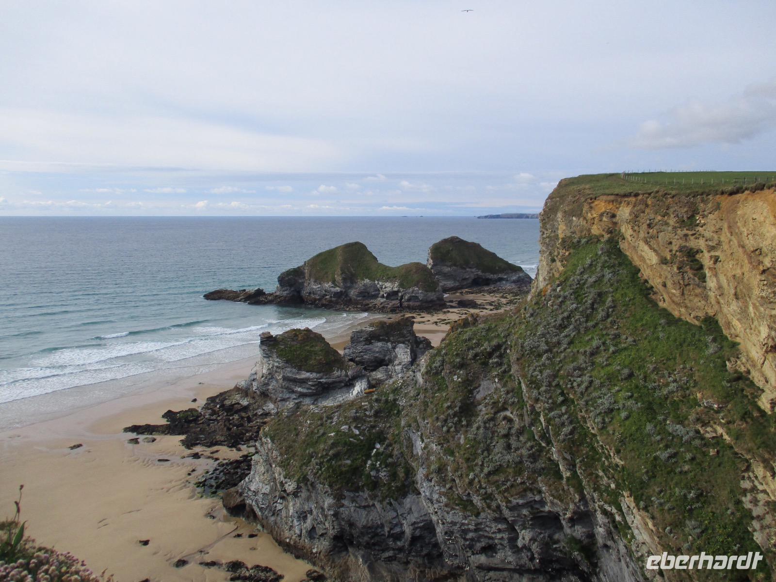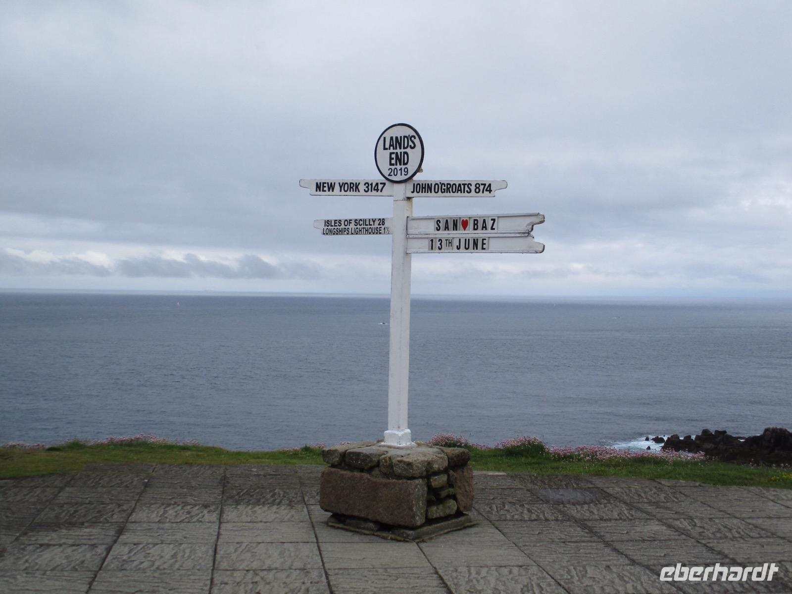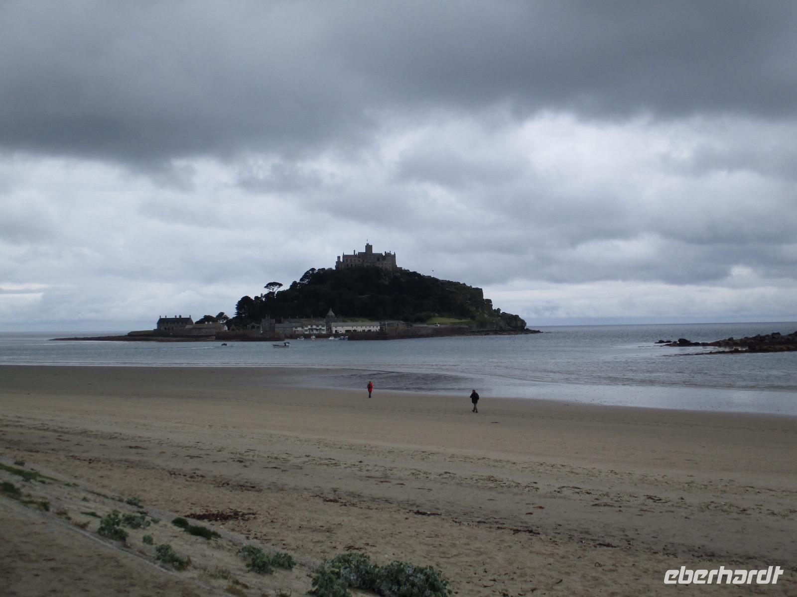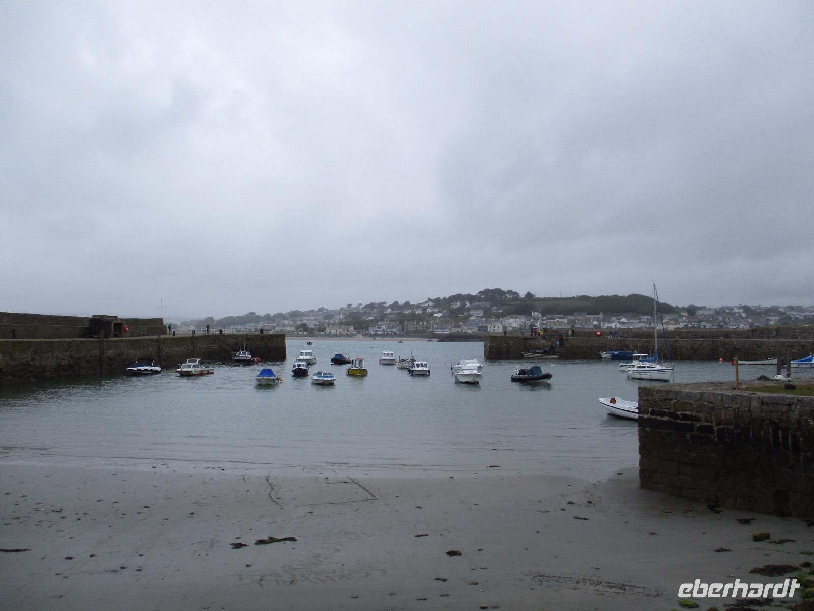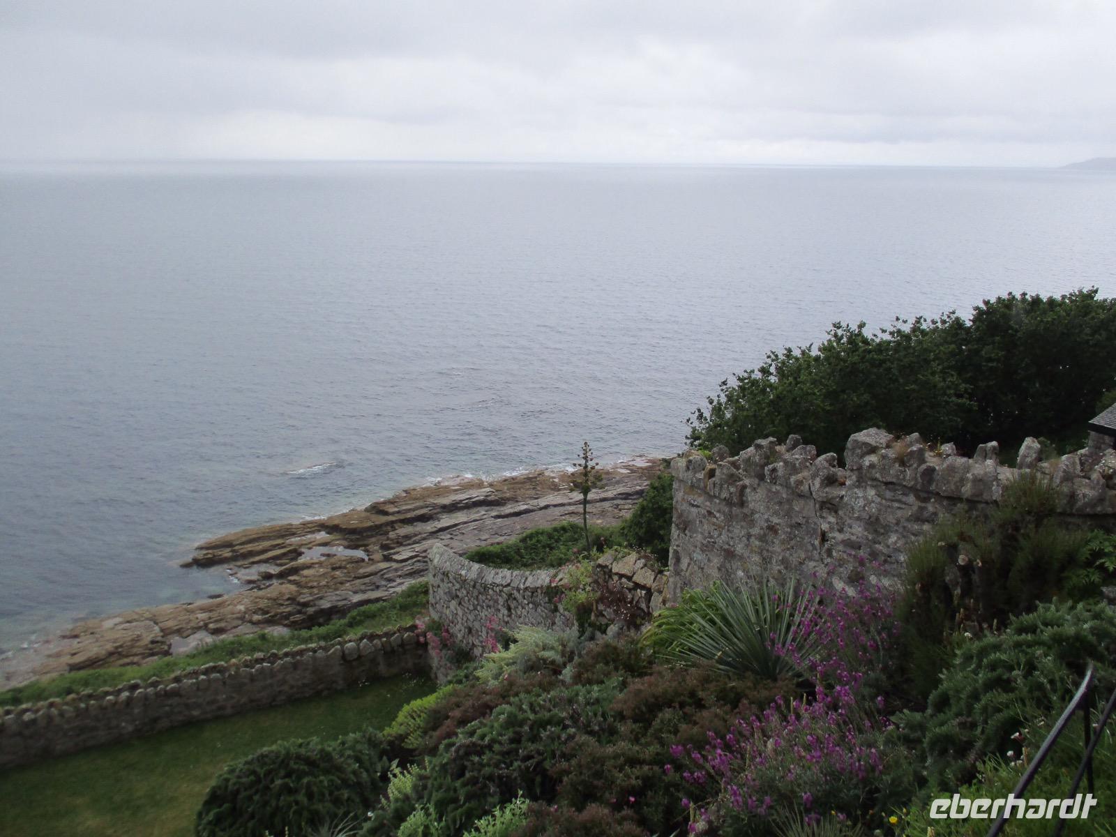 Gleich am Morgen machten wir uns auf und fuhren in Richtung Südwesten. Zunächst erreichten wir das Ende der Welt Cornwalls und Englands. Wir spazierten einen Weg hinunter zum letzten Aussichtspunkt vor den Klippen, machten zahlreiche Fotos und sahen auch den Wegweiser, auf dem die Entfernung bis New York, 3147 Meilen, angezeigt wird. Einige erstanden Postkarten und ließen sich den begehrten Lands-End-Poststempel darauf drucken. In Marazion, unserem nächsten Halt, kann man hinüber blicken zum St. Michael's Mount, einer Gezeiteninsel. Weil Flut war, konnten wir nicht auf dem Causeway zu Fuß spazieren, um das Castle auf dem Hügel oder die herrlichen Felsengärten zu besichtigen, sondern fuhren mit einem der Boote hinüber und auch später wieder zurück zum Festland. Danach begaben wir uns in die Nähe von Falmouth und besuchten Trebah Garden, einen Schluchtengarten mit unzähligen verschiedenfarbigen Blüten, mit Gunneras (Mammutblatt), Baumfarnen, farbenfrohen Etagenprimeln und einem idyllischen Bächlein. Wir genossen diesen aussergewöhnlichen Garten, zu dem sogar ein Stück Strand gehört. Den Abend verbrachten wir wieder in unserem Sands Hotel in Newquay über dem Meer.