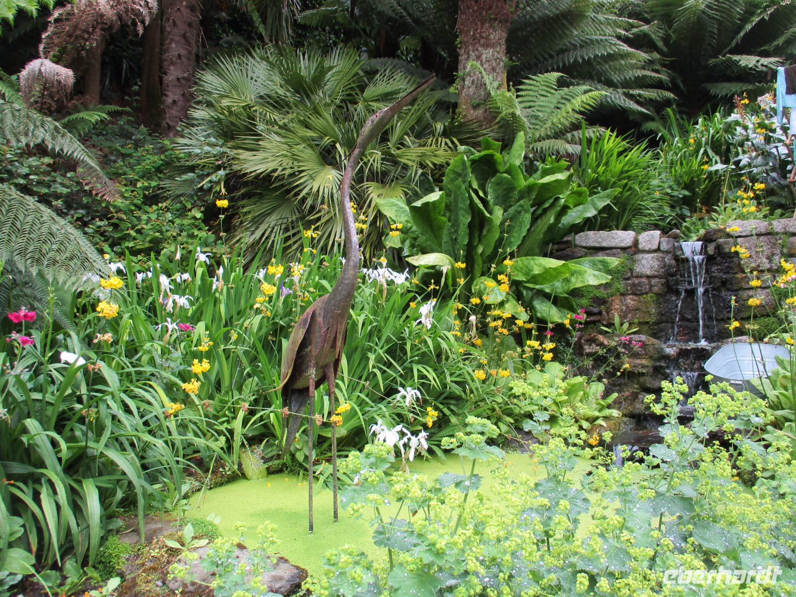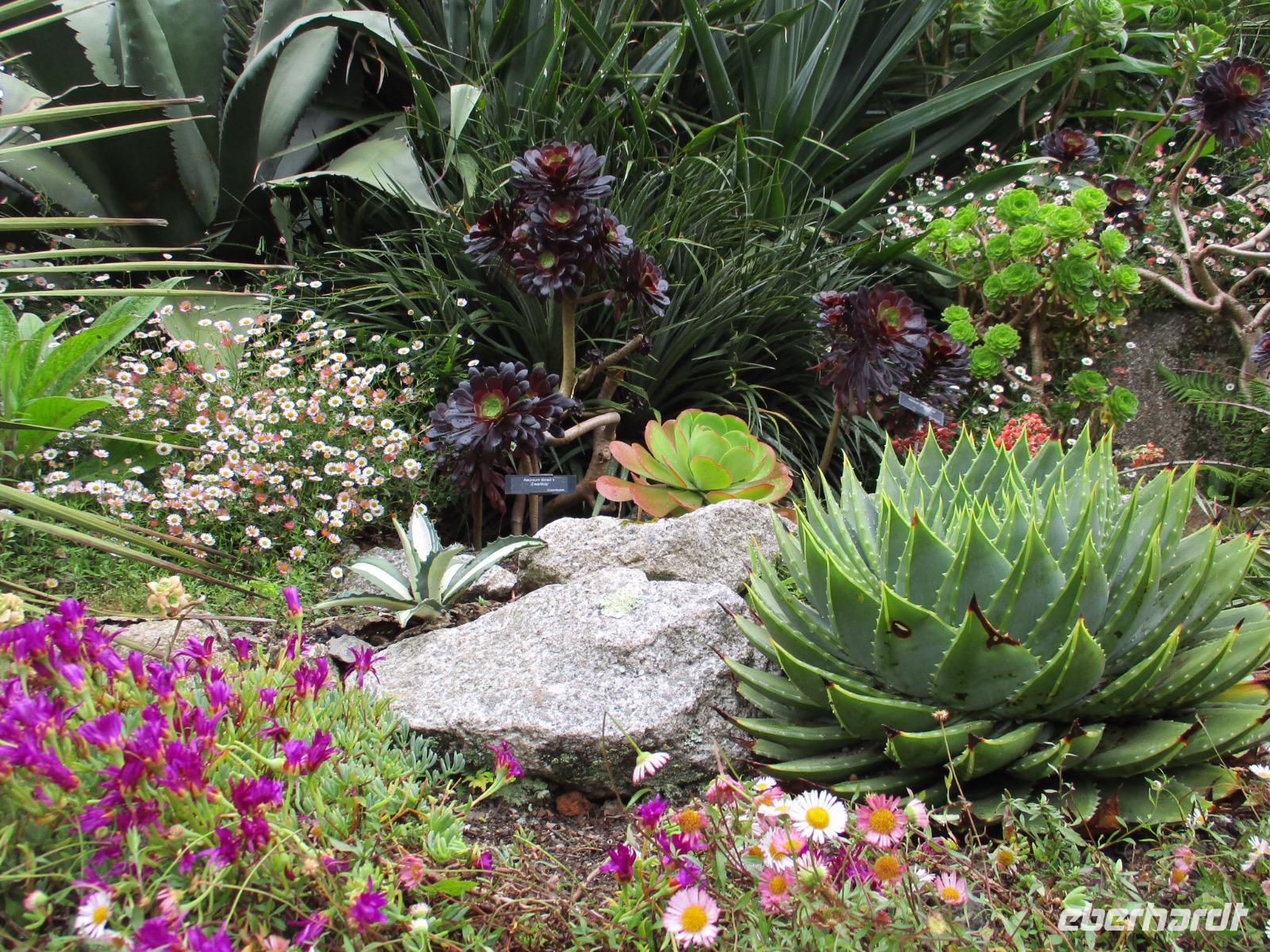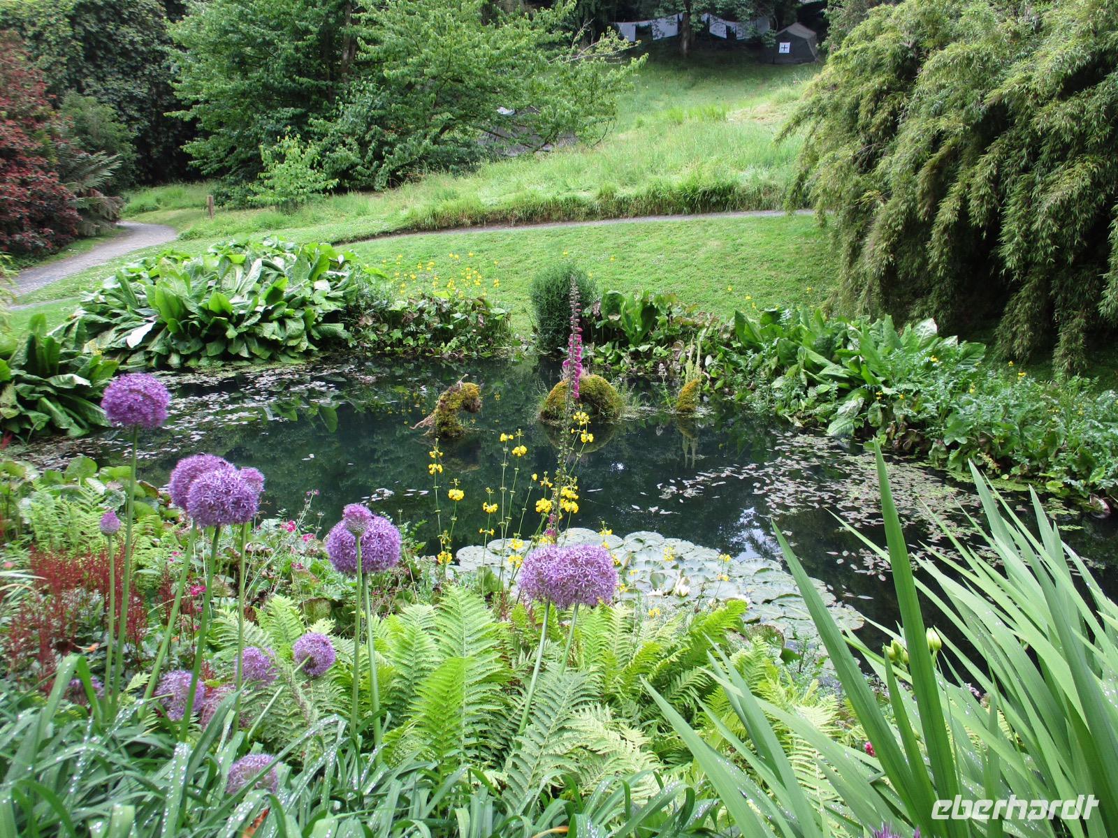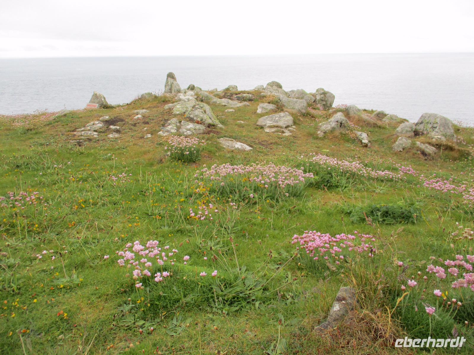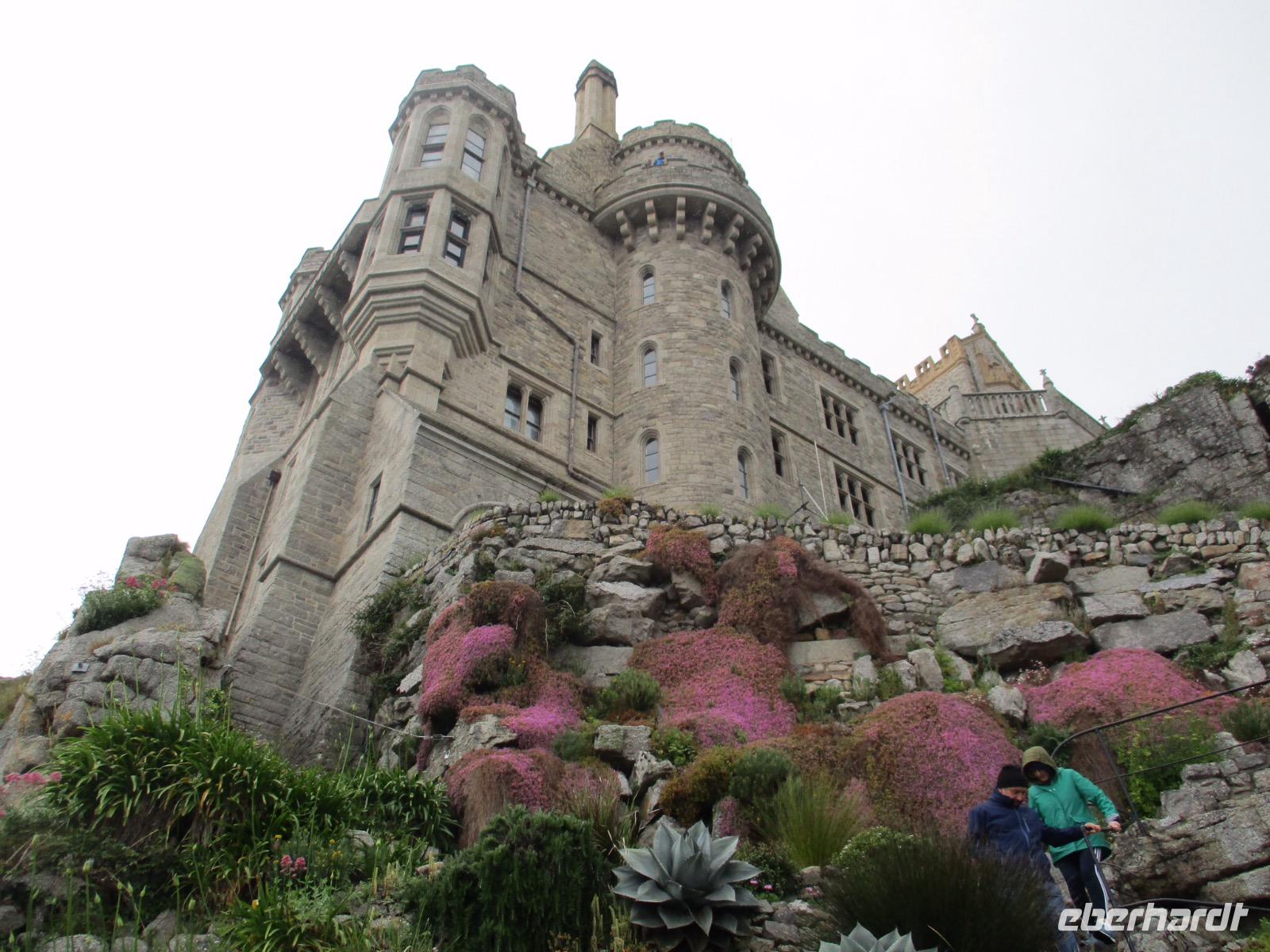 Gleich am Morgen machten wir uns auf und fuhren in Richtung Südwesten. Zunächst erreichten wir das Ende der Welt Cornwalls und Englands. Wir spazierten einen Weg hinunter zum letzten Aussichtspunkt vor den Klippen, machten zahlreiche Fotos und sahen auch den Wegweiser, auf dem die Entfernung bis New York, 3147 Meilen, angezeigt wird. Einige erstanden Postkarten und ließen sich den begehrten Lands-End-Poststempel darauf drucken. In Marazion, unserem nächsten Halt, kann man hinüber blicken zum St. Michael's Mount, einer Gezeiteninsel. Weil Flut war, konnten wir nicht auf dem Causeway zu Fuß spazieren, um das Castle auf dem Hügel oder die herrlichen Felsengärten zu besichtigen, sondern fuhren mit einem der Boote hinüber und auch später wieder zurück zum Festland. Danach begaben wir uns in die Nähe von Falmouth und besuchten Trebah Garden, einen Schluchtengarten mit unzähligen verschiedenfarbigen Blüten, mit Gunneras (Mammutblatt), Baumfarnen, farbenfrohen Etagenprimeln und einem idyllischen Bächlein. Wir genossen diesen aussergewöhnlichen Garten, zu dem sogar ein Stück Strand gehört. Den Abend verbrachten wir wieder in unserem Sands Hotel in Newquay über dem Meer.