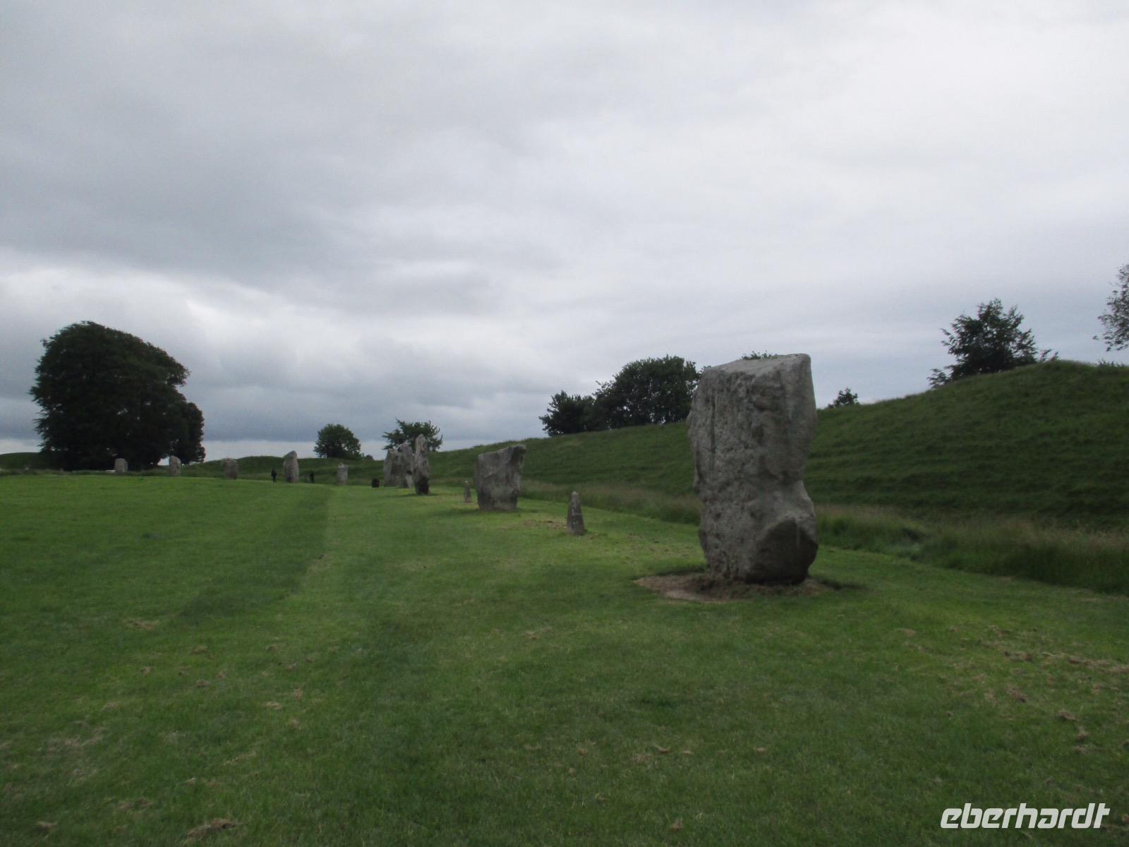 An diesem Morgen verließen wir Bristol, um nach Avebury zu fahren. Unterwegs bestaunten wir in Cherhill eines der „White Horses", die in dieser Gegend an zahlreichen Hängen vor vielen Jahren eingeritzt worden sind. Dann erreichten wir Avebury. Das ist ein kleines englisches Dorf, wie es viele gibt. Eine kleine Kirche ragt zwischen romantischen Cottages und Farmhäusern hervor. Und dennoch gibt es in Avebury etwas ganz Besonderes: Steinkreise und Galerien aus Menhiren und Megaliten. Wir wanderten über die Wiesen und besichtigten diese Monumente einer längst vergangenen Kultur. Vermutlich errichtete man die Steinkreise und Galerien vor ca. 4500 Jahren. Ein kleines Museum im Dorf informiert über die Geschichte der Steine.