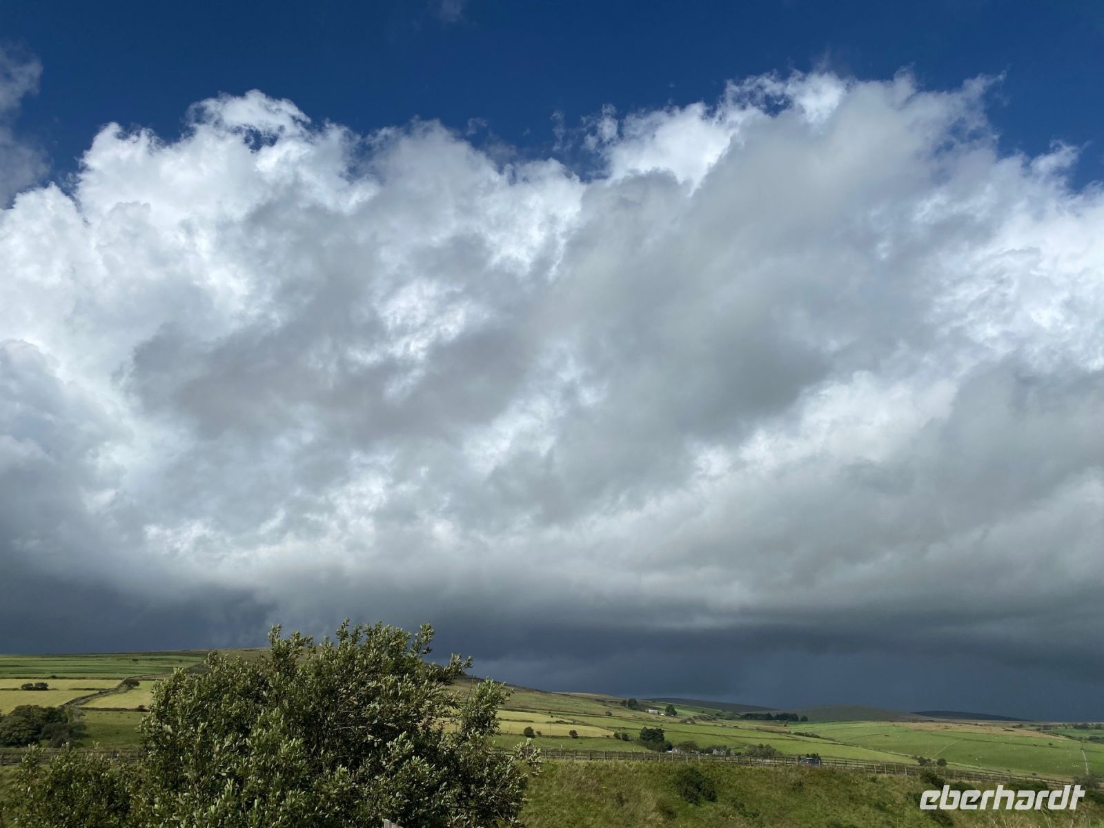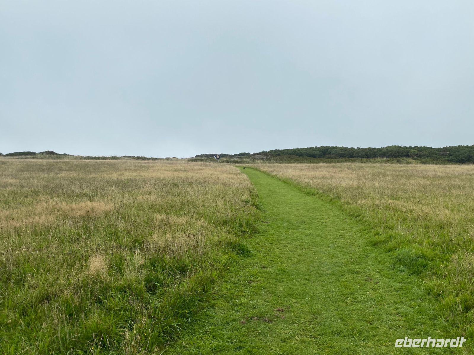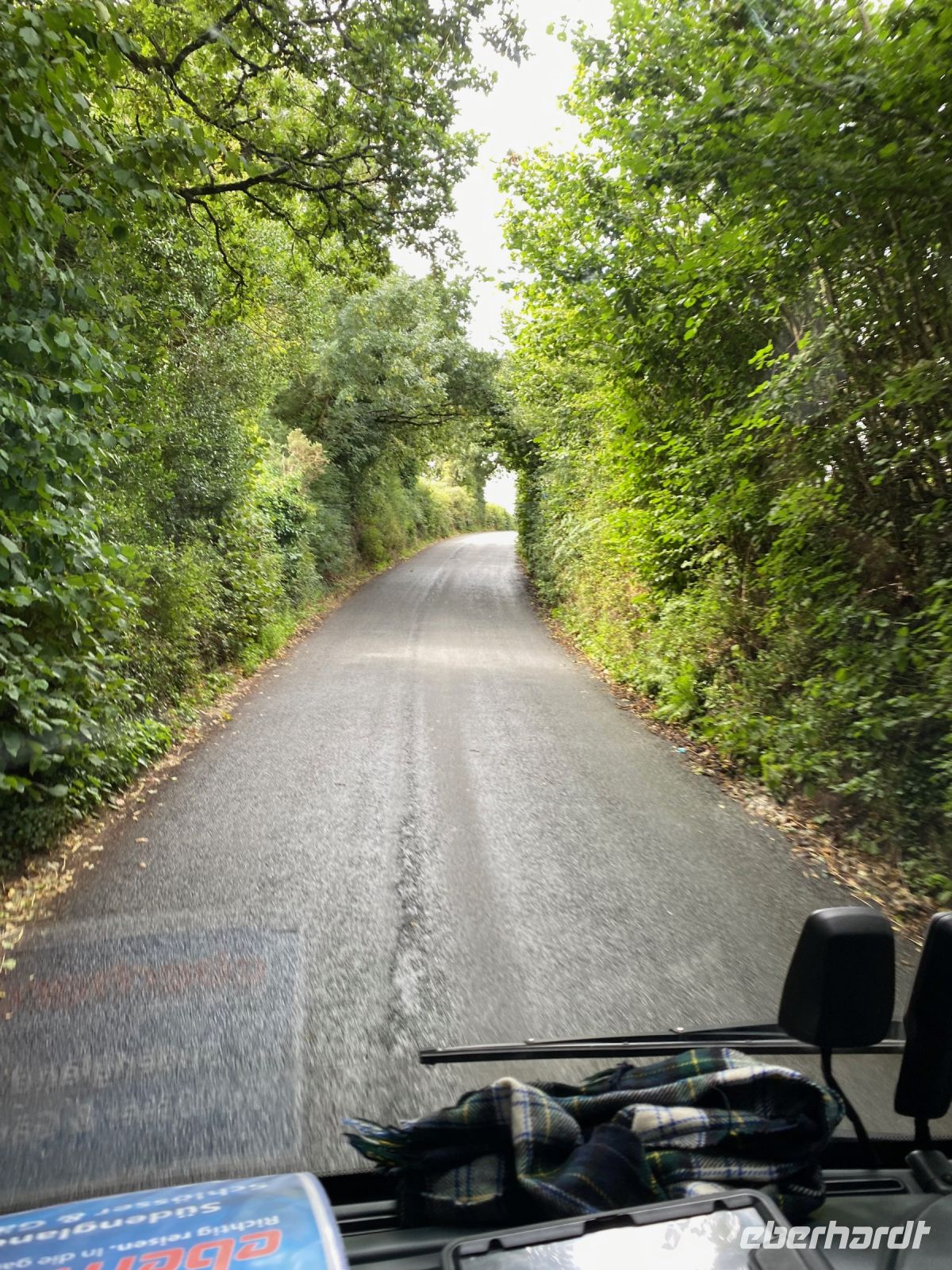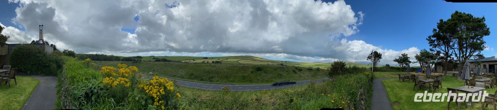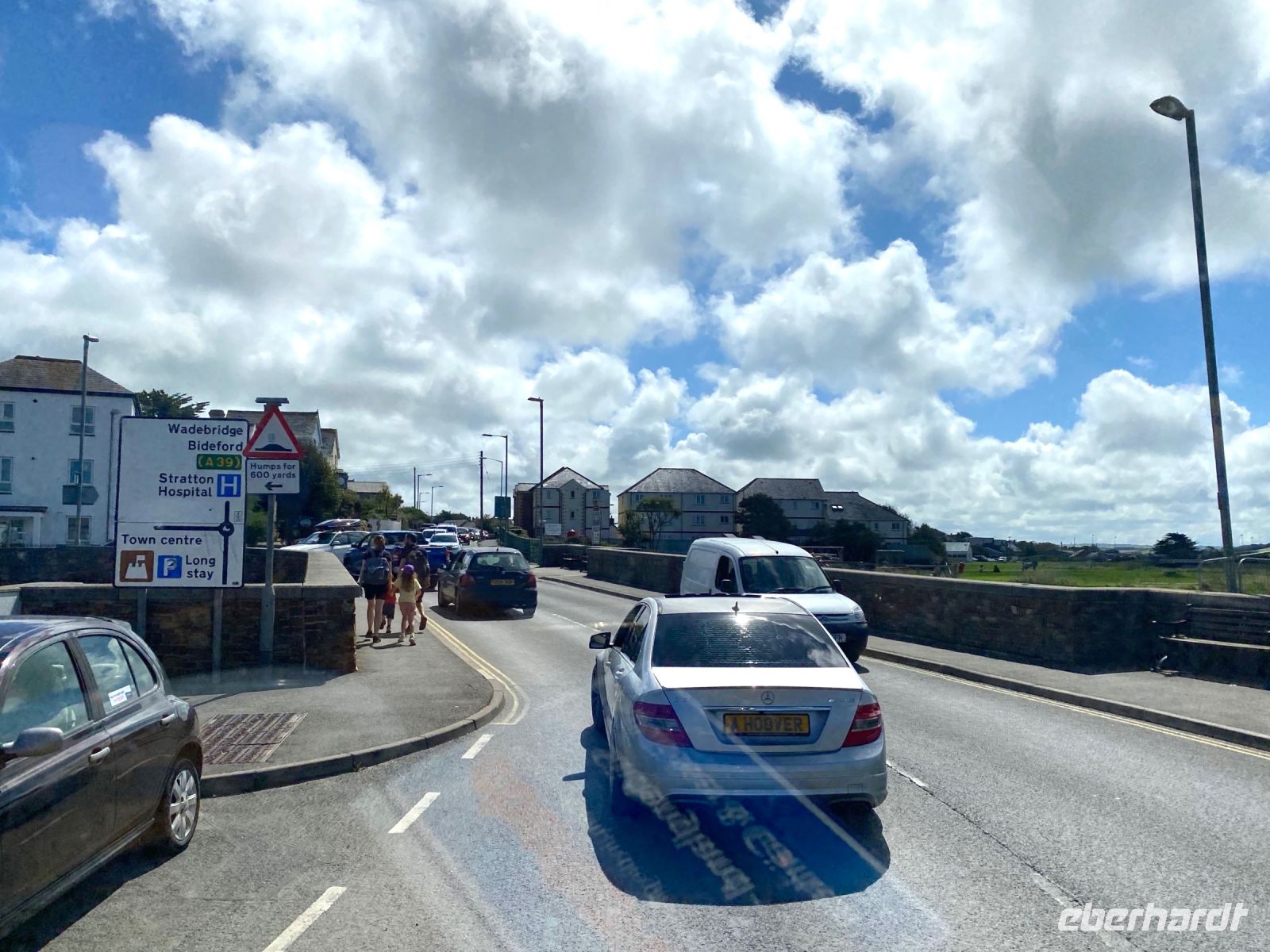 Auf der Rückfahrt begegnen wir an der engsten Straßenstelle einem gewaltigen Traktor mit Anhänger, vollbeladen mit Grasballen. Was nun? Im Prinzip ist es wohl so, dass die Fahrer immer besser werden, je größer ihr Fahrzeug ist. In Minutenschnelle rangiert der Traktorist sein Gefährt weit über hundert Meter zurück, bergauf um Kurven und dann rechtwinklig in eine Feldeinfahrt hinein, very impressive! Ein kurzer Gedanke an den Kleinwagen von Boscastle, der keine 15 Meter rückwärts geradeaus schaffte, verfliegt rasch wieder. Bald schon sind wir wieder auf einer großen Straße, die in England A-road genannt wird.