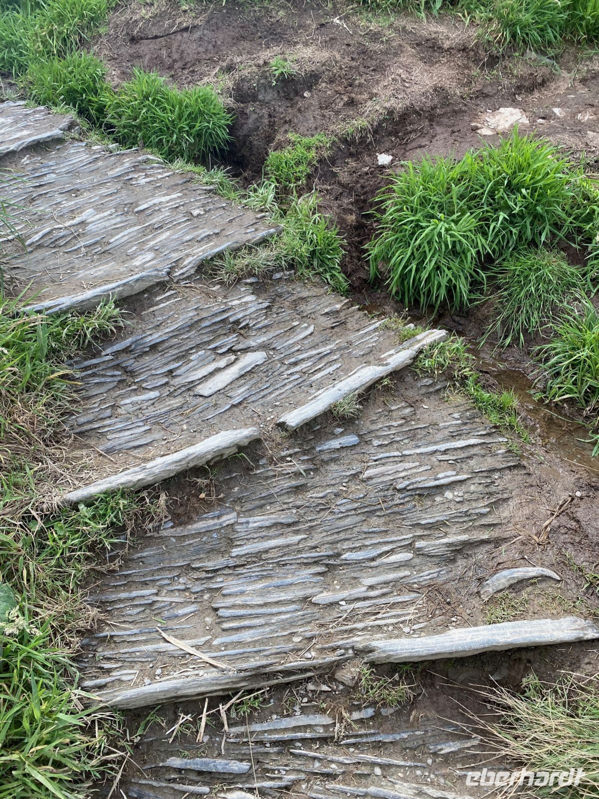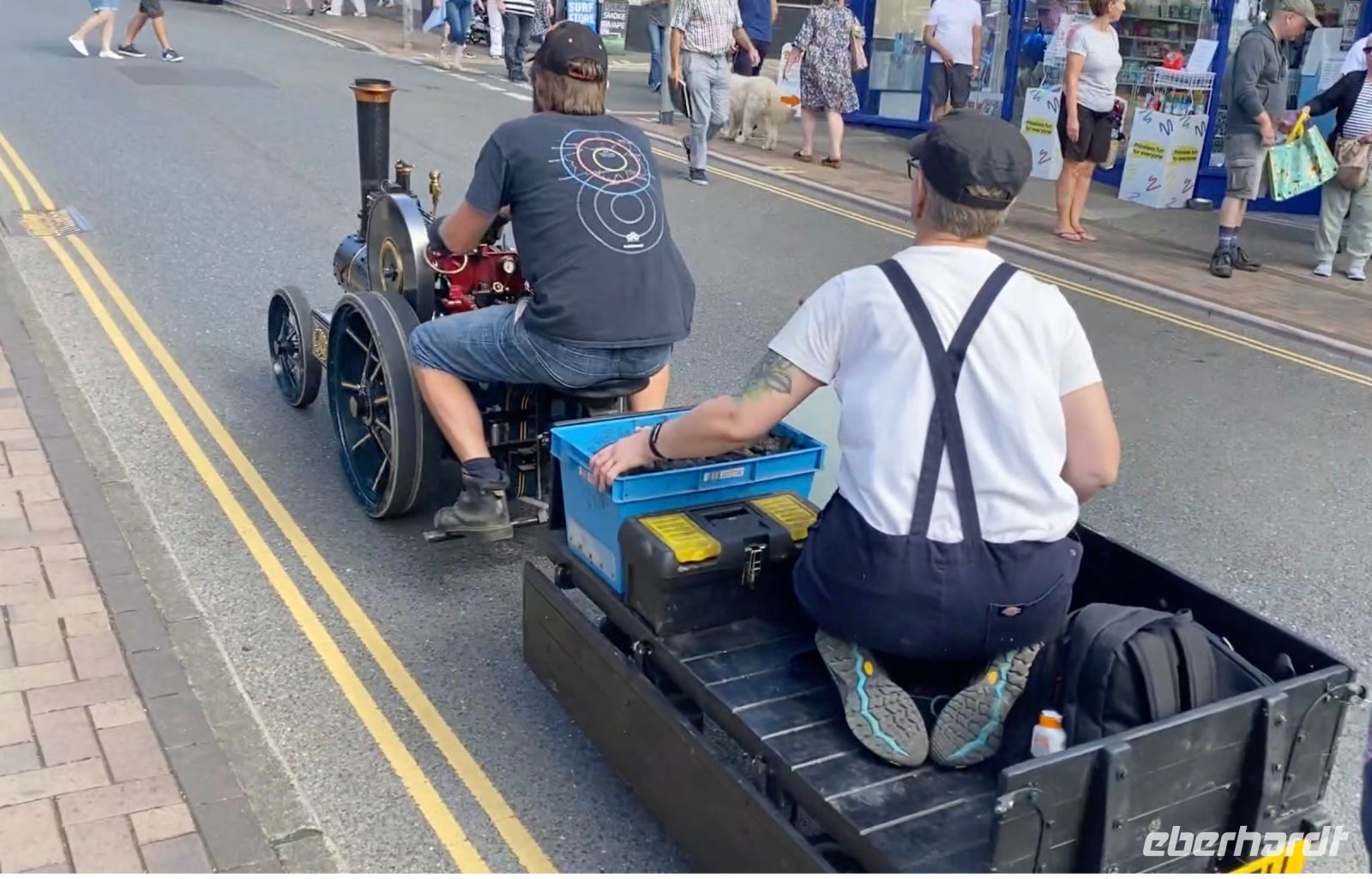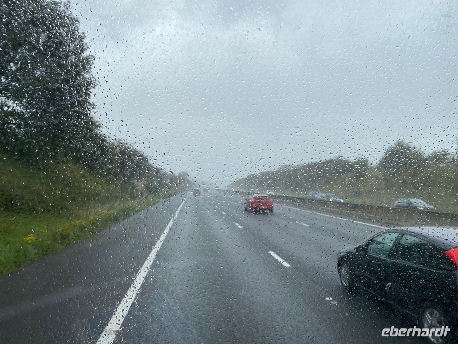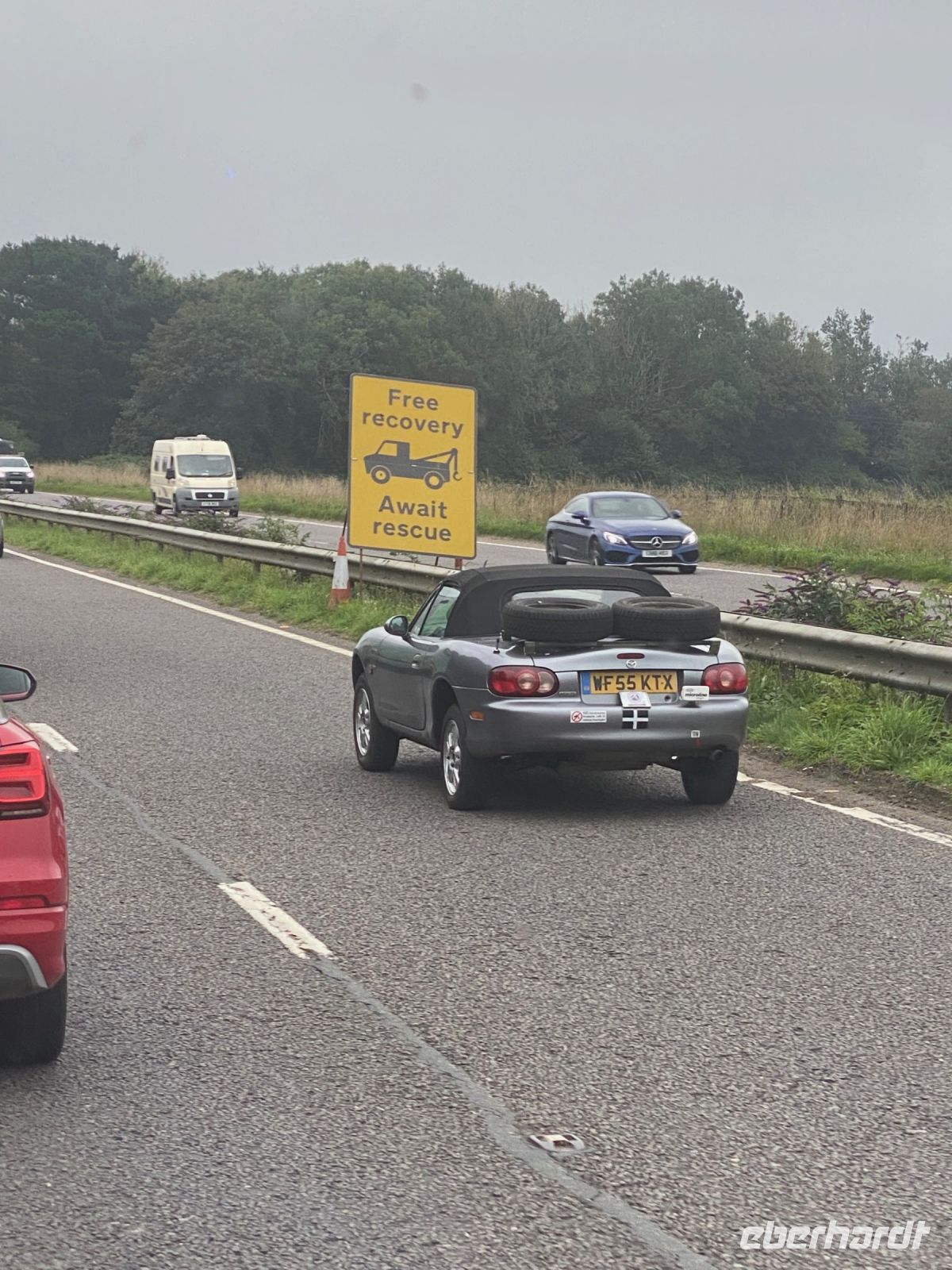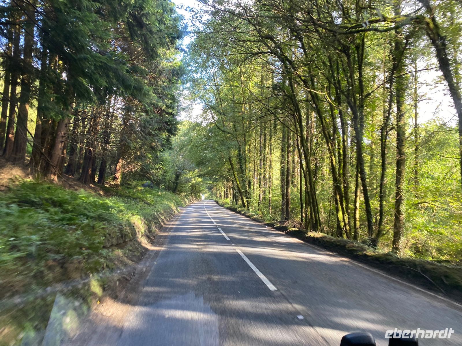 Auf der Rückfahrt begegnen wir an der engsten Straßenstelle einem gewaltigen Traktor mit Anhänger, vollbeladen mit Grasballen. Was nun? Im Prinzip ist es wohl so, dass die Fahrer immer besser werden, je größer ihr Fahrzeug ist. In Minutenschnelle rangiert der Traktorist sein Gefährt weit über hundert Meter zurück, bergauf um Kurven und dann rechtwinklig in eine Feldeinfahrt hinein, very impressive! Ein kurzer Gedanke an den Kleinwagen von Boscastle, der keine 15 Meter rückwärts geradeaus schaffte, verfliegt rasch wieder. Bald schon sind wir wieder auf einer großen Straße, die in England A-road genannt wird.