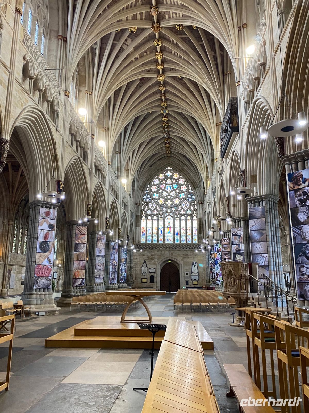 Heute morgen beginnt der Tag mit etwas freier Zeit und einer ausführlichen Führung durch die Exeter Cathedral durch den Verfasser dieses Berichtes. Diese Kirche ist voll interessanter Geschichte und Geschichten und auch architektonisch und historisch herausragend.