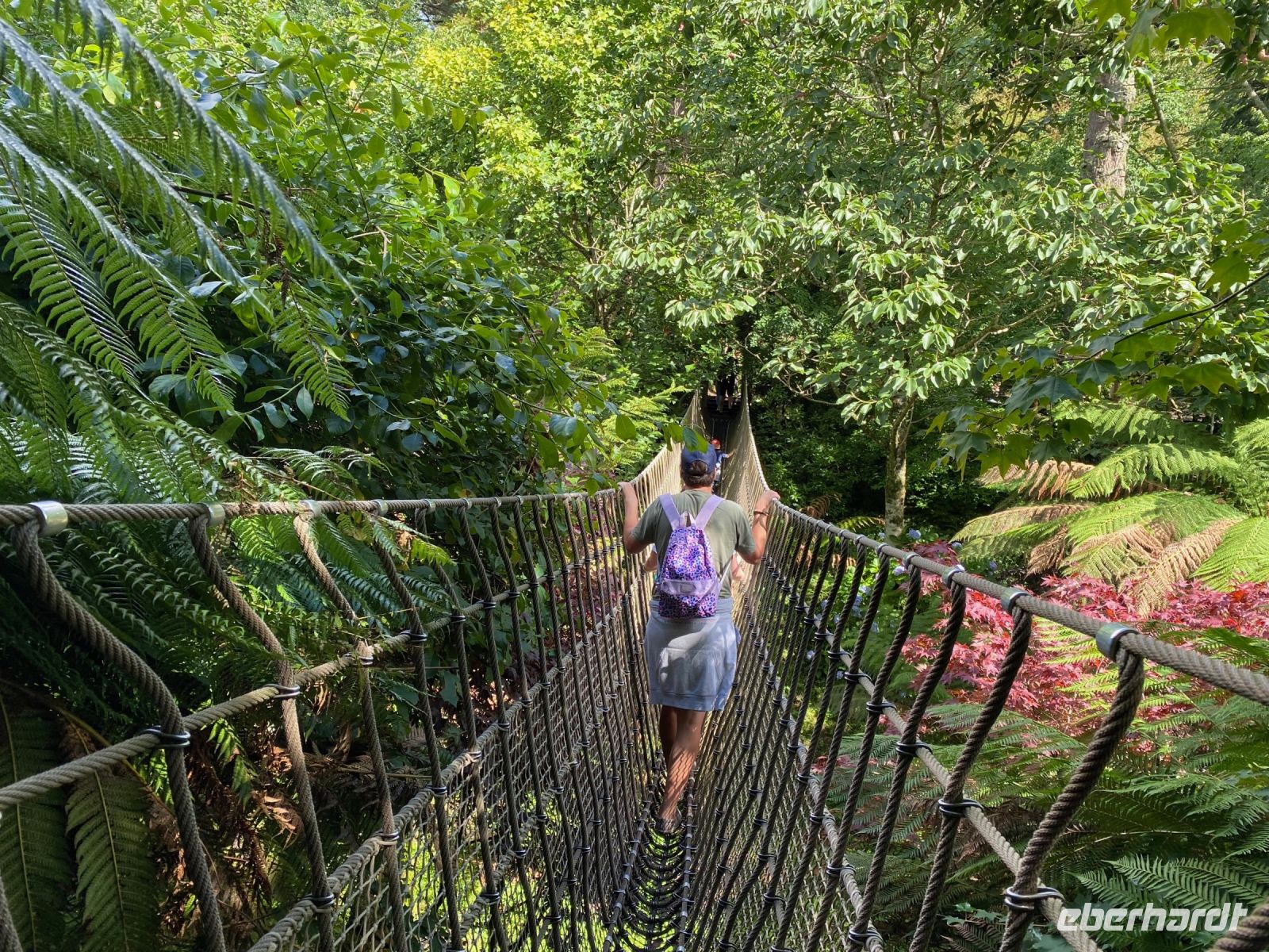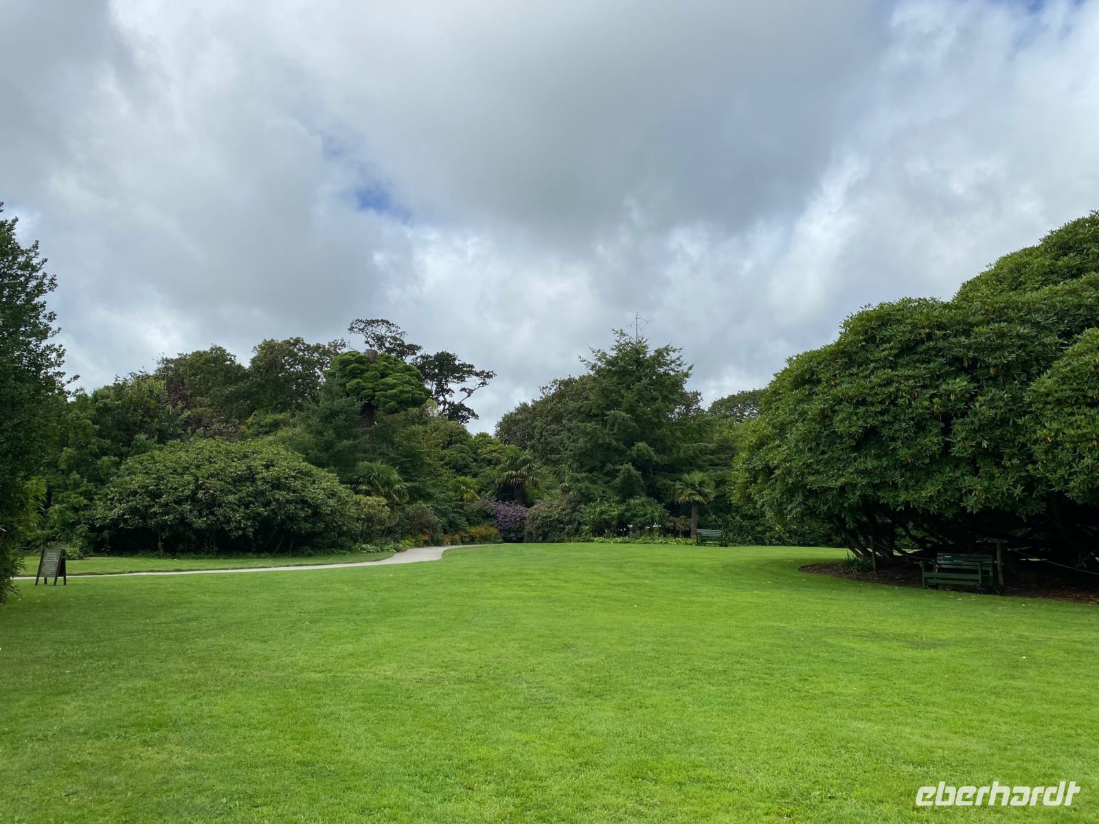 Wir sind wieder in unserem Schönwetterplan, der Himmel ist herrlich blau und wir erreichen gleich morgens zur Öffnung die Lost Gardens of Heligan. Wir sind unter den ersten, die heute diese eindrucksvolle Parkanlage besichtigen dürfen. Einst war sie fast verloren, daher der Name. Nach Jahrzehnten des Verfalls wurde der Landschaftspark um ein altes Herrenhaus wiederentdeckt und wiederhergestellt. Die Beteiligten sollten nach diesem großen Erfolg wenig später auch das Eden Project, von dem wir noch hören werden, mitbegründen.