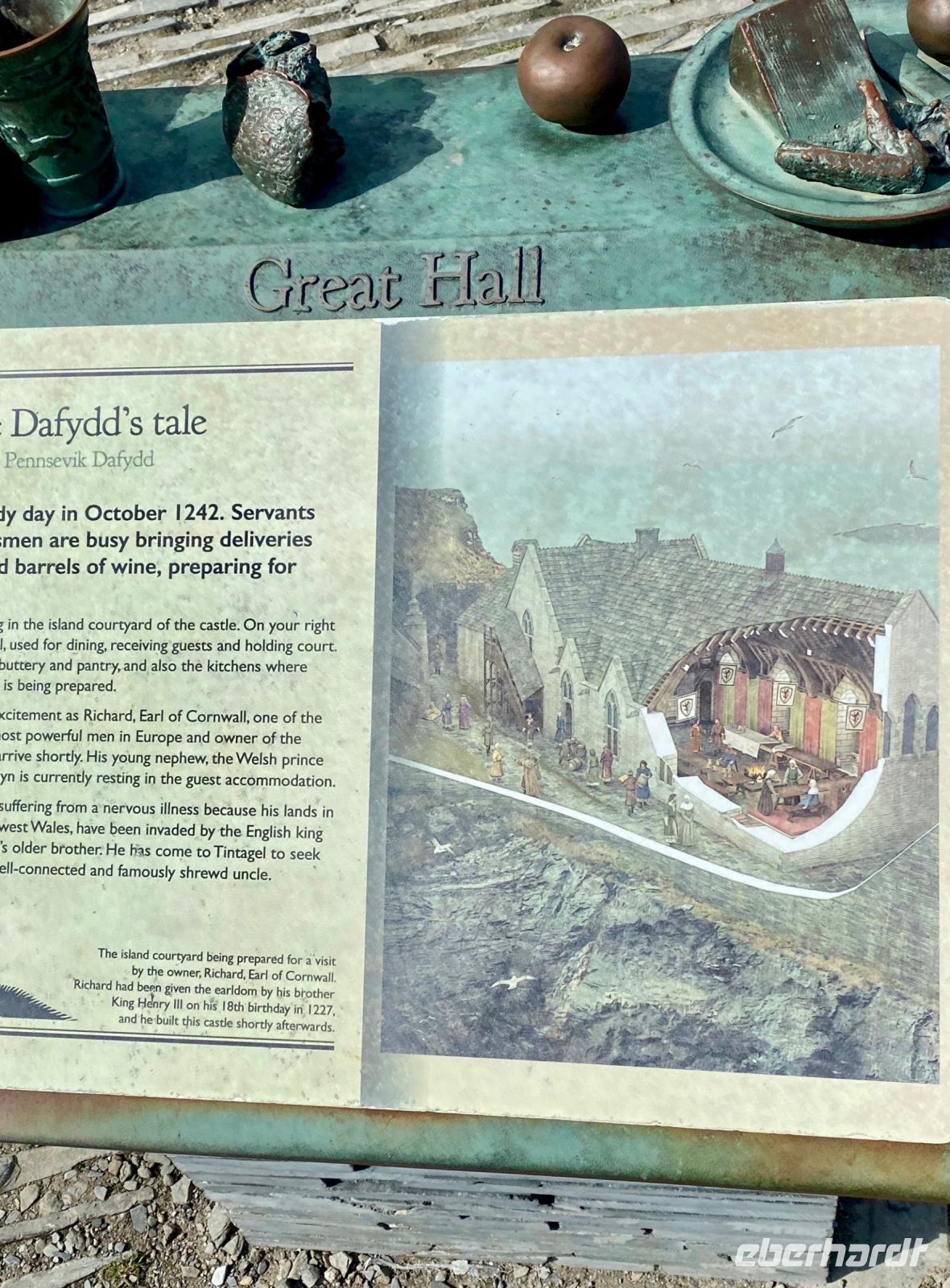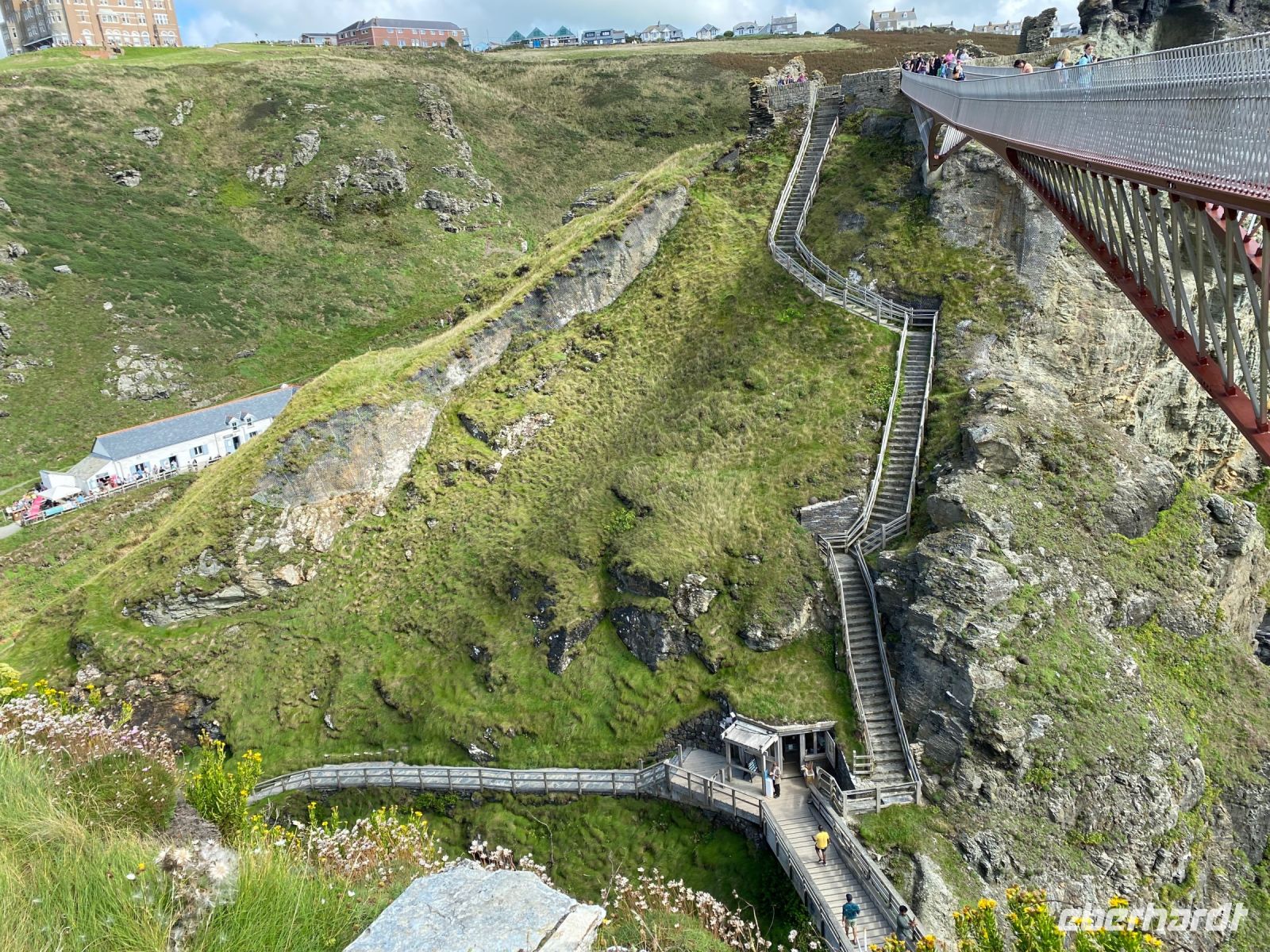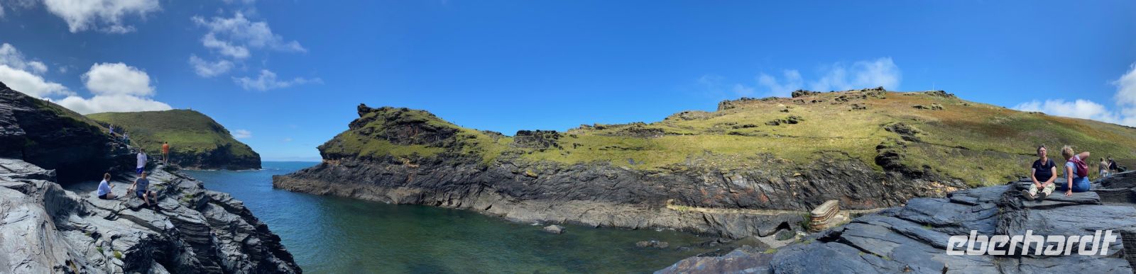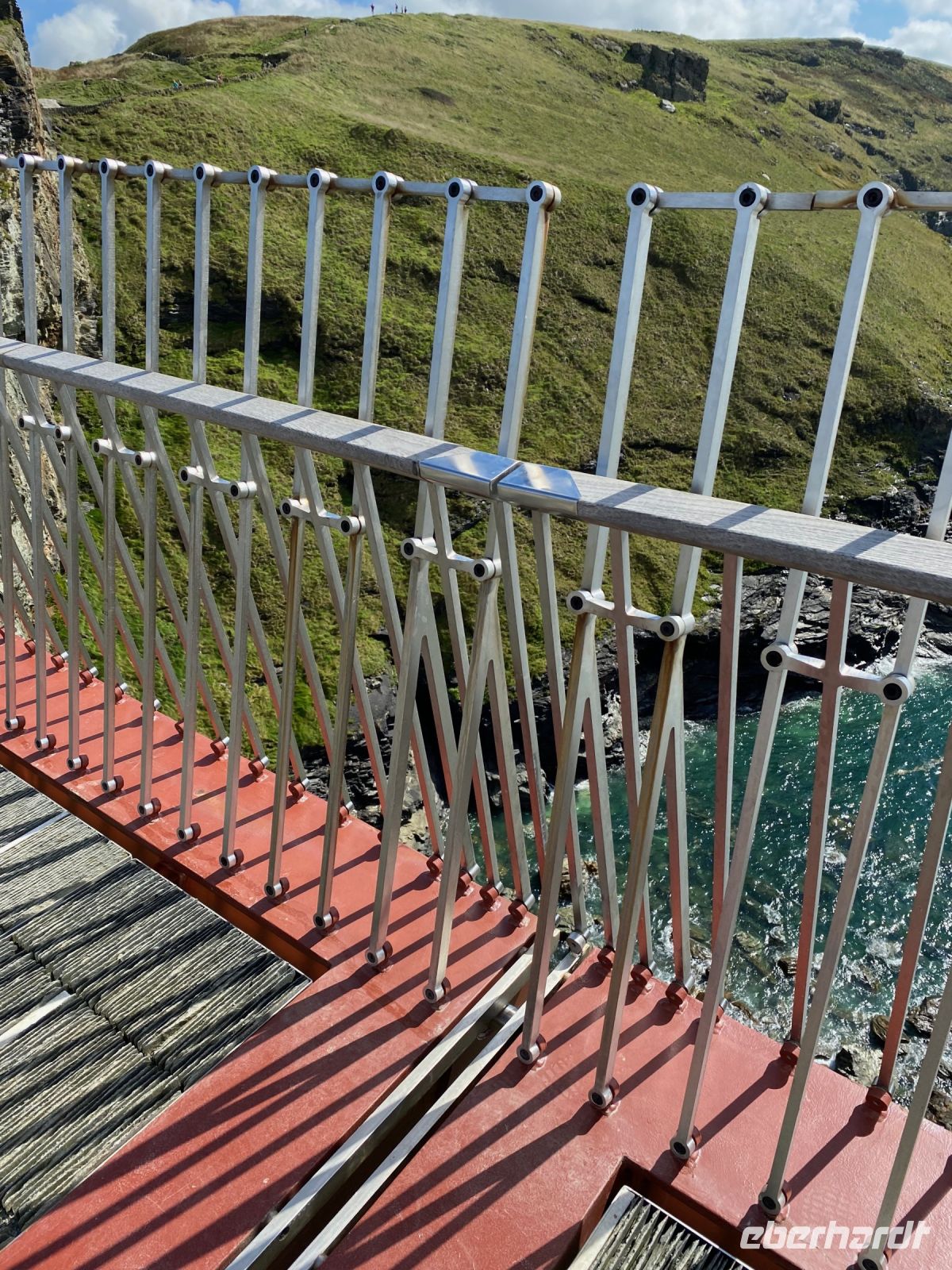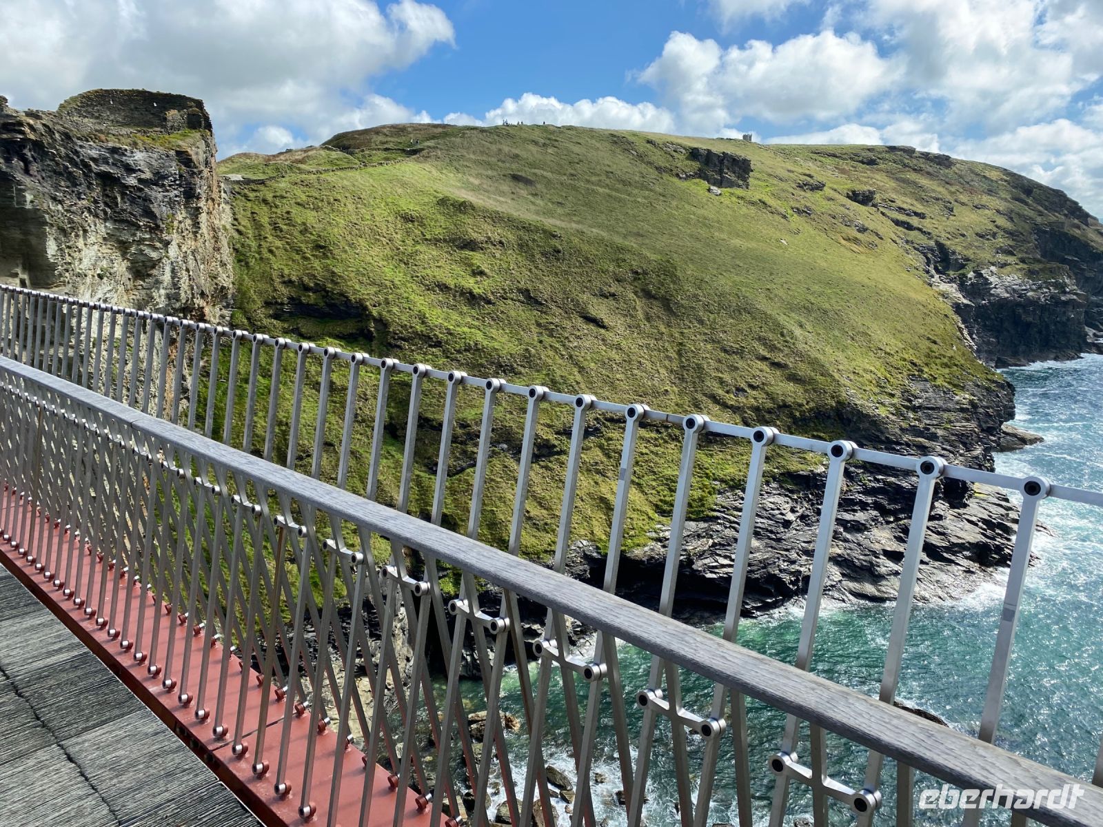 Der Legende nach wurde hier einst König Artus geboren, der Zauberer Merlin soll dabei einiges im Schilde geführt haben. Auch das Schwert Excalibur ist hier präsent, sogar hundertfach: Eine spektakuläre neue Brück mit einem Geländer aus stilisierten Schwertern führt uns über eine tiefe Schlucht auf eine kleine exponierte Halbinsel. Die Aussicht von hier auf die Keltische See ist herrlich, das Wetter ist wie immer auf unserer Seite.