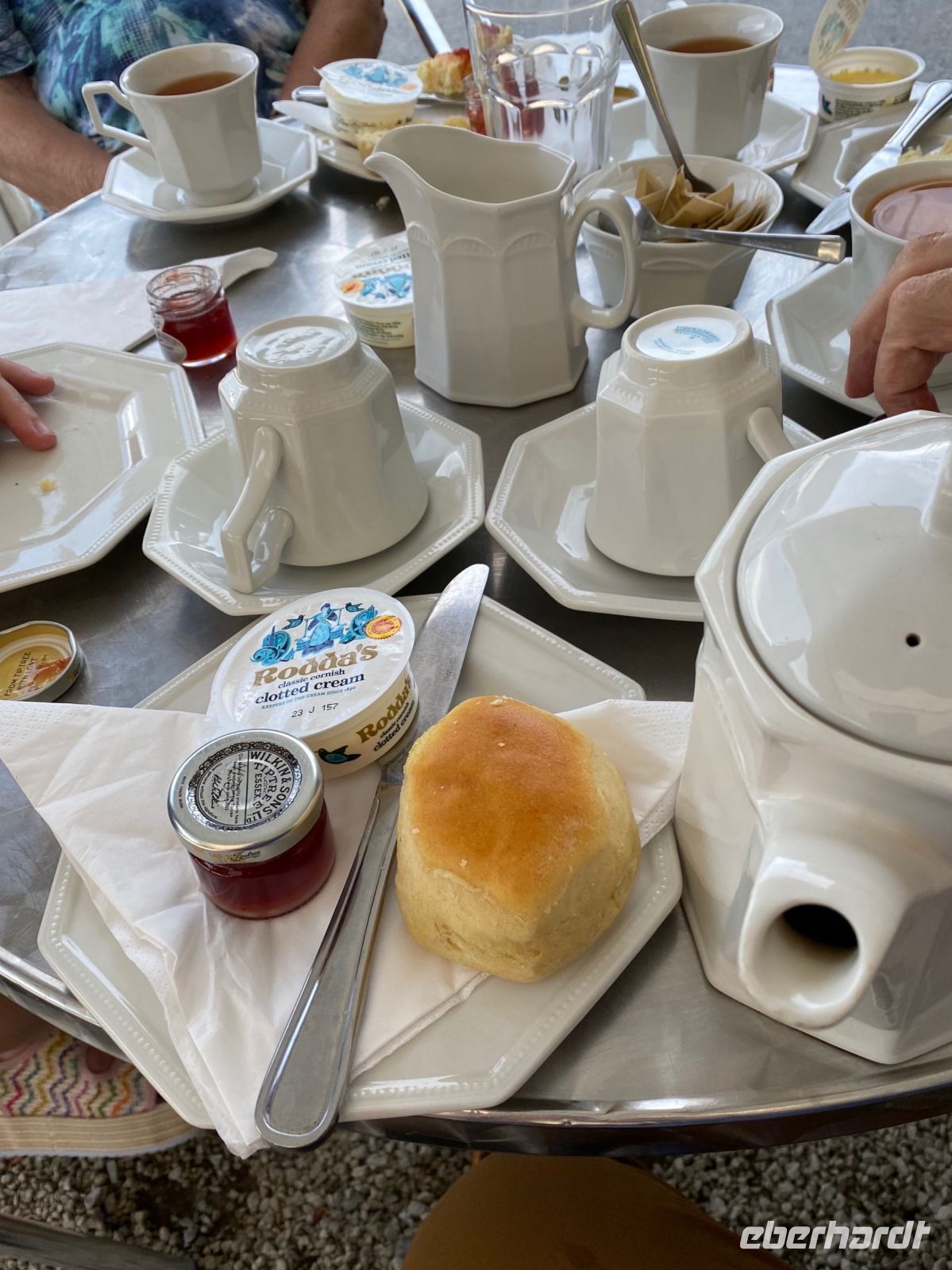 Die Schönheit der Gartenanlagen und des Ortes begeistert und nach einem typischen englischen Cream Tea auf der Terrasse bleiben wir hier gerne noch etwas länger!