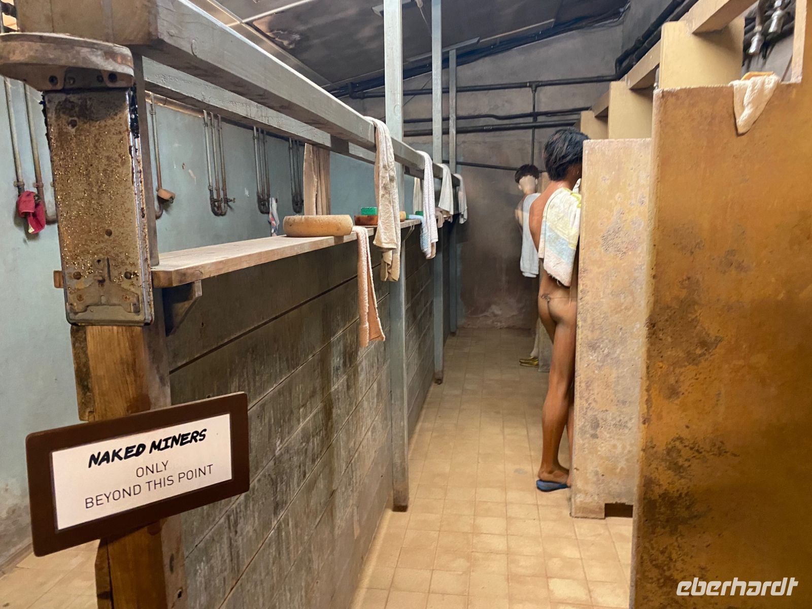 Inzwischen tobt auch hier der Sturm, der Regen peitscht fast waagrecht durch die Luft, zum Glück müssen wir nur kurz von Gebäude zu Gebäude gehen. Grant, ein ehemaliger Minenarbeiter, hat hier ein Jahrzehnt gearbeitet, er führt uns herum und berichtet eindrucksvoll von früher. Kaum vorstellbar, wie hart das Leben der Bergleute hier einst war. Wir können uns nicht beklagen, auch wenn wir hier nun das einzige Mal auf unserer Reise etwas nass werden, denn auf uns wartet ein warmer Bus, der uns bequem zu einem weiteren sehr guten Abendessen in unserem neuen Zuhause in Truro fährt.
